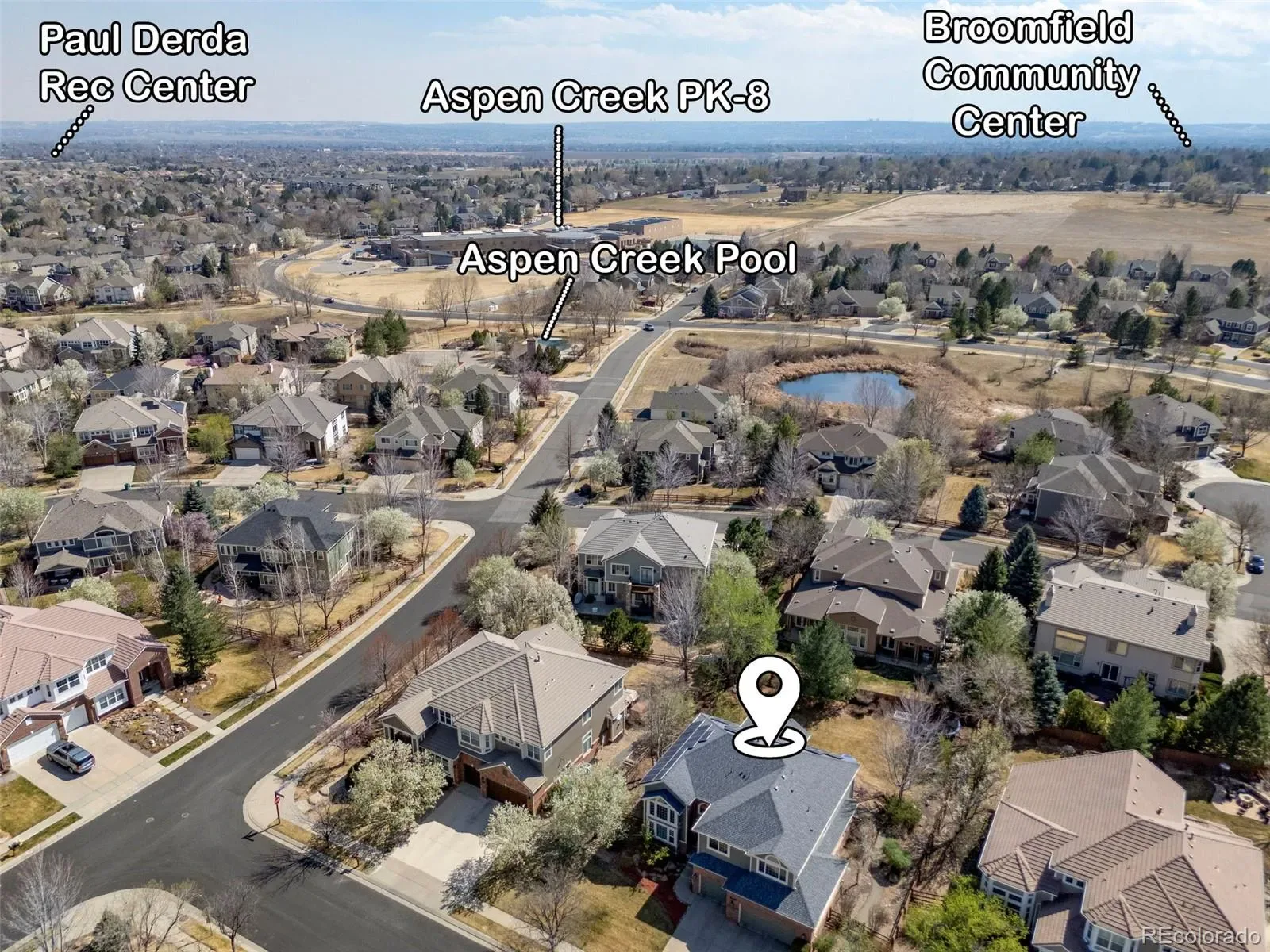 Welcome home to this stunning 6 bedroom, 5 bath home in the highly sought after neighborhood of Aspen Creek. This well-maintained home boasts a new roof (2024), vaulted ceilings, rich hardwood floors, plush carpeting and fresh paint throughout. The main floor flows seamlessly with a functional floor plan designed for comfortable living and effortless entertaining. Off the family room, you’ll find a versatile flex space ideal for a playroom, craft room or home office. The finished basement adds two additional bedrooms, a full-bath, a spacious media room, a play room and an exercise room. This space is perfect for guests or multi-generational living. Step outside to an expansive backyard. The mature trees makes this space the perfect outdoor escape for weekend gatherings with friends and family. Situated on a quiet cul-de-sac, this centrally located and pet-free home is within walking distance to Aspen Creek PK-8, a top-rated BVSD school and the community pool. Located in the heart of Broomfield, you will have easy access to major commuter routes, placing you just 20 minutes from both Boulder and Denver. This is a rare opportunity to own a move-in-ready home that blends luxury, location, and lifestyle. Be sure to schedule your showing today and make this home yours!