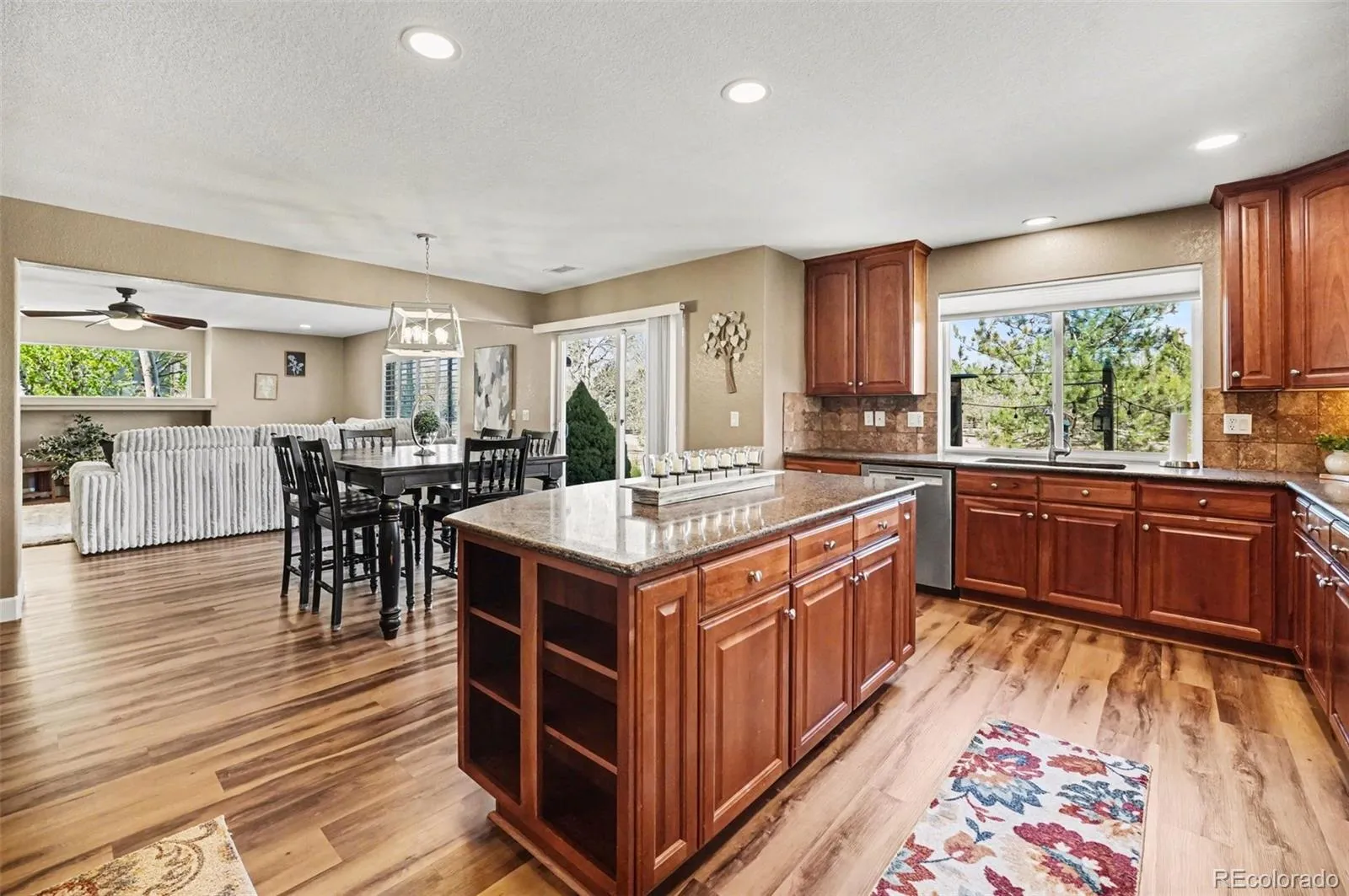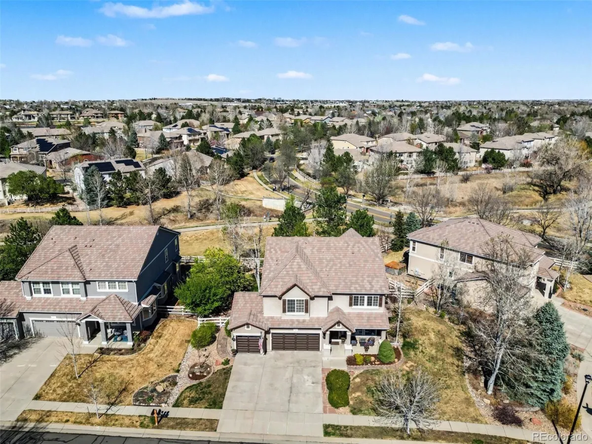 Stunning home ideally situated on a picturesque lot backing to park-like open space with scenic trails, just steps from top-rated Adams 12 five-star schools. Welcome to serene luxury in this beautifully maintained, 1-owner home. You’re greeted by an open-concept floor plan filled with natural light, enhanced by expansive, well-placed windows and a striking gas fireplace that anchors the main living space that offers exceptional versatility for everyday living & entertaining, featuring a formal dining room, family room, & inviting living room. At the heart of the home is the expansive gourmet kitchen, complete with abundant cabinetry, granite tops, island, gas cooktop, Bosch dishwasher, new LED recessed lighting, and a spacious walk-in pantry. Enjoy seamless indoor-outdoor living with direct access to the beautifully landscaped backyard, featuring a custom patio and grilling deck, perfect for gatherings, all set against peaceful open space views. Upstairs, a versatile loft with a wet bar offers the perfect setting for your ideal flex space. The luxurious primary suite is a true retreat, featuring a fireplace, new flooring, a spa-like 5-piece bath with custom tile, and 2 large walk-in closets. 3 additional generously sized bedrooms complete the upper level, including one with a private ensuite bath, plus an additional full bathroom. The tastefully finished basement expands your living space with a rec room, conforming bedroom, & bathroom. Additional highlights include new flooring, lighting, fixtures, & hardware. There is a split-zone HVAC system with two furnaces and A/C units. The attached 3-car garage offers newer insulated doors/openers & a service door. Step outside to your own private backyard oasis, complete with a tranquil waterfall, perfect for relaxing or entertaining. Ideally located near parks, trails, shopping, dining, and an 18-hole championship golf course, this exceptional home offers the perfect blend of comfort, convenience, and luxury living.
