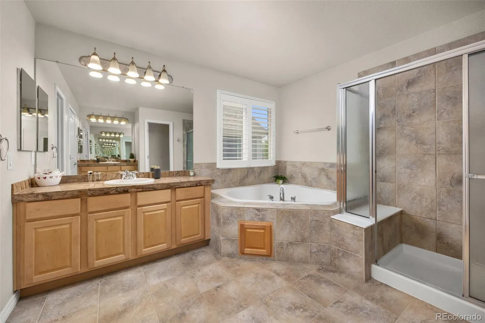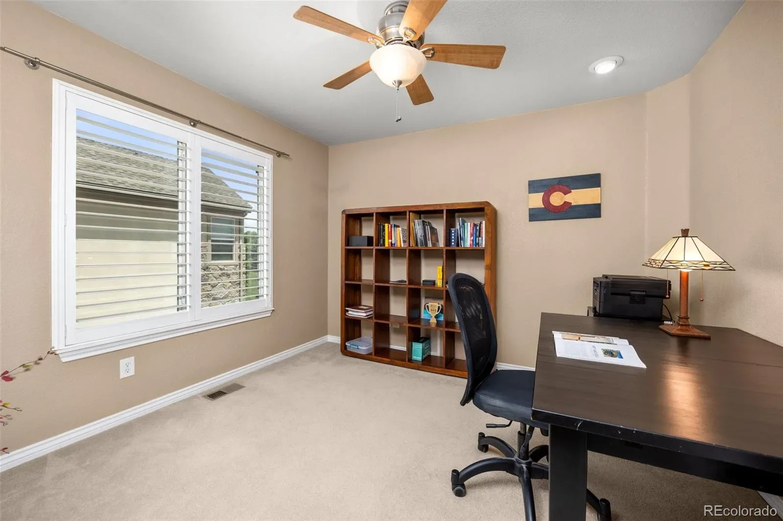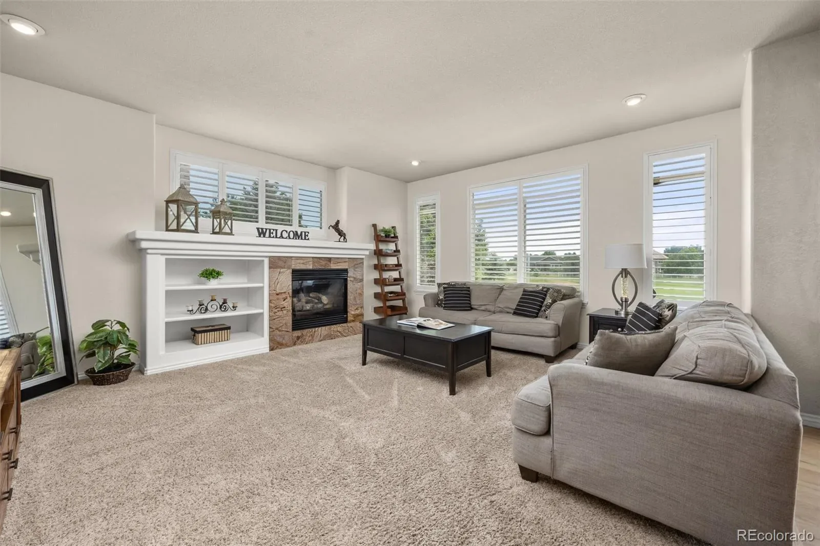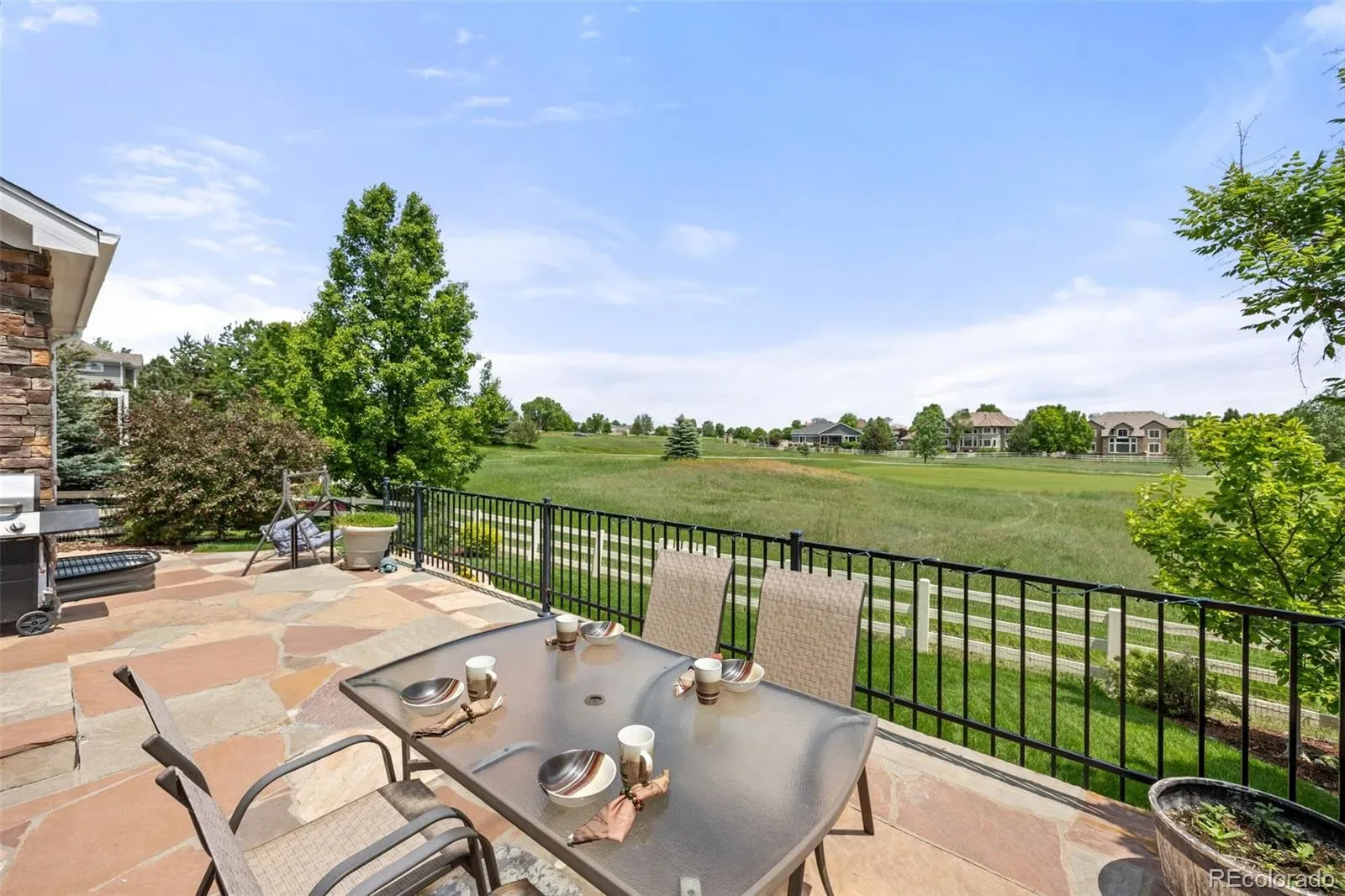 OUTSTANDING LOCATION, ON GOLF COURSE! As you approach this enchanting home, an idyllic front porch and charming entrance will welcome you, followed by harmoniously orchestrated living spaces that combine creative architecture with thoughtful design. Vaulted ceilings, built-ins, hardwood floors, plantation shutters. Perfectly placed windows provide abundant natural light throughout. Views from most rooms! The inviting LIVING ROOM and DINING ROOM offer a wonderful setting for reading, chats and sharing meals with family and friends. The KITCHEN features granite counters, stainless appliances, a generous island, eat-in area, office nook and pantry. Spacious FAMILY ROOM with gas fireplace. From there, a smooth sliding door opens onto an expansive flagstone PATIO and BACKYARD with magnificent views. Peace and tranquility surround and no neighbors behind! The MAIN-LEVEL also includes a BEDROOM, FULL BATHROOM and LAUNDRY, providing multi-generational flexibility. A graceful staircase rises to the UPPER LEVEL, where the PRIMARY BEDROOM has a nice fireplace and walk-in closet. En-suite BATHROOM with natural stone tile floors, double vanity and jet tub. There are 2 additional BEDROOMS, 2 FULL BATHS and an OFFICE. An attic fan provides whole-house air circulation. The unfinished BASEMENT offers future possibilities. 3-Car garage. NEW ROOF! IDEAL LOCATION in beautiful Broadlands. Outdoor enthusiasts will enjoy golfing, walking or biking along several trails with inspiring views. Pleasant parks, playgrounds and picnic areas. Plaster Reservoir, Paul Derda Rec Center, Broomfield Commons Open Space and more. The homeowners association takes care of common areas, clubhouse and pool. Near Whole Foods, Bradburn Village and Orchard Town Center shops and restaurants. Straight drive to Boulder, Denver or the airport. Delight in the friendly neighborhood life, or retreat into the quiet privacy of your own backyard oasis. Comfort and convenience combined. EXCEPTIONAL. MOVE IN AND ENJOY!