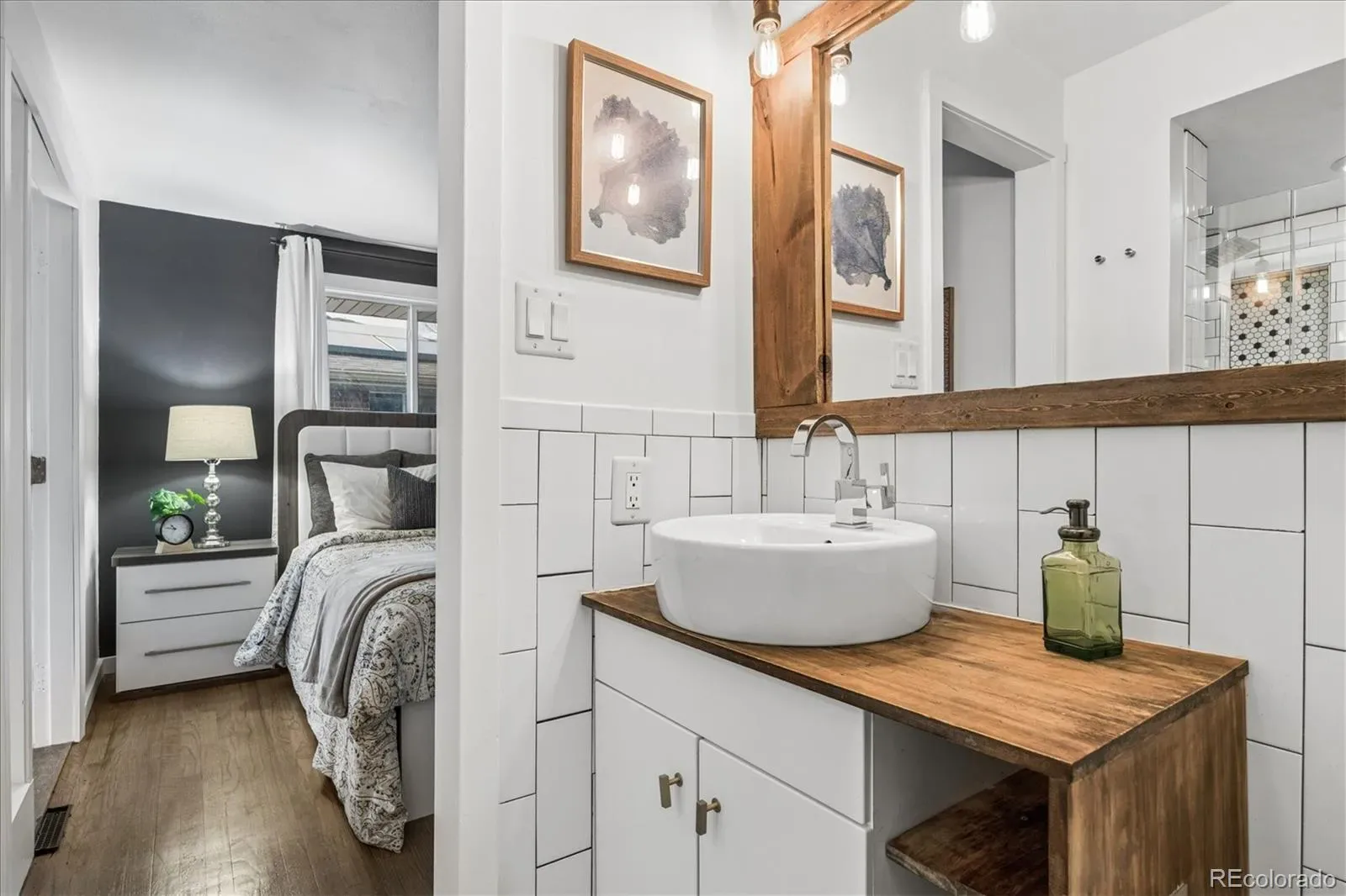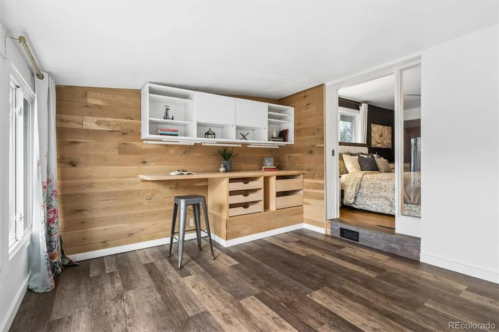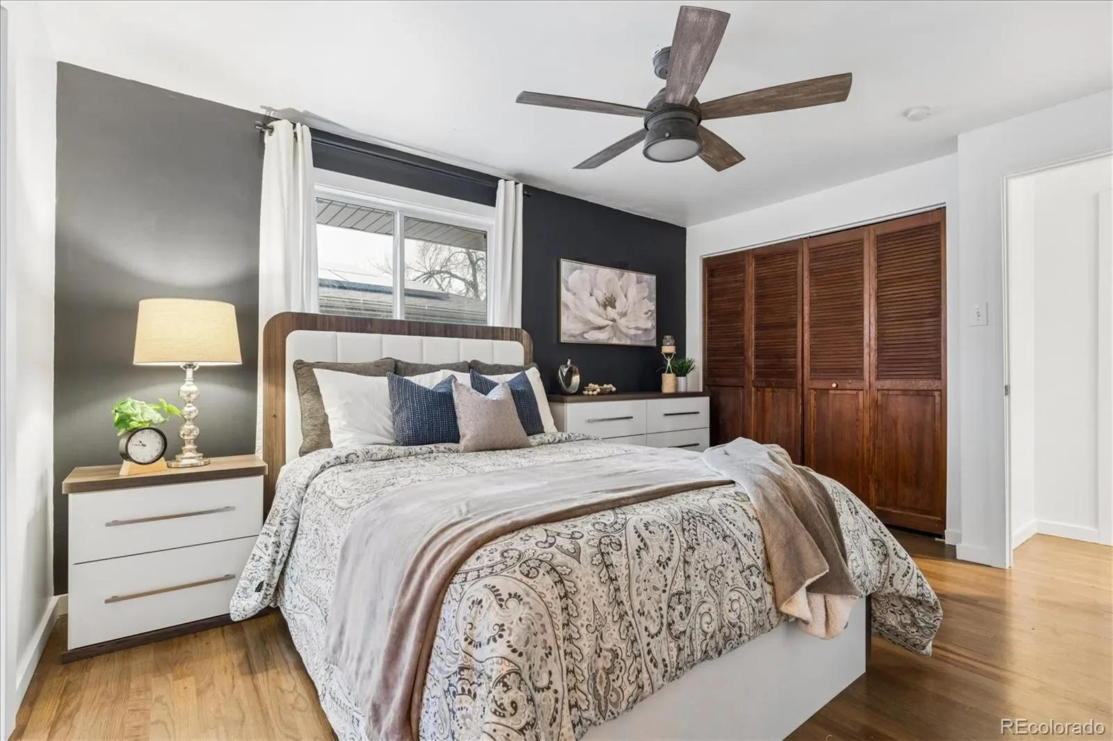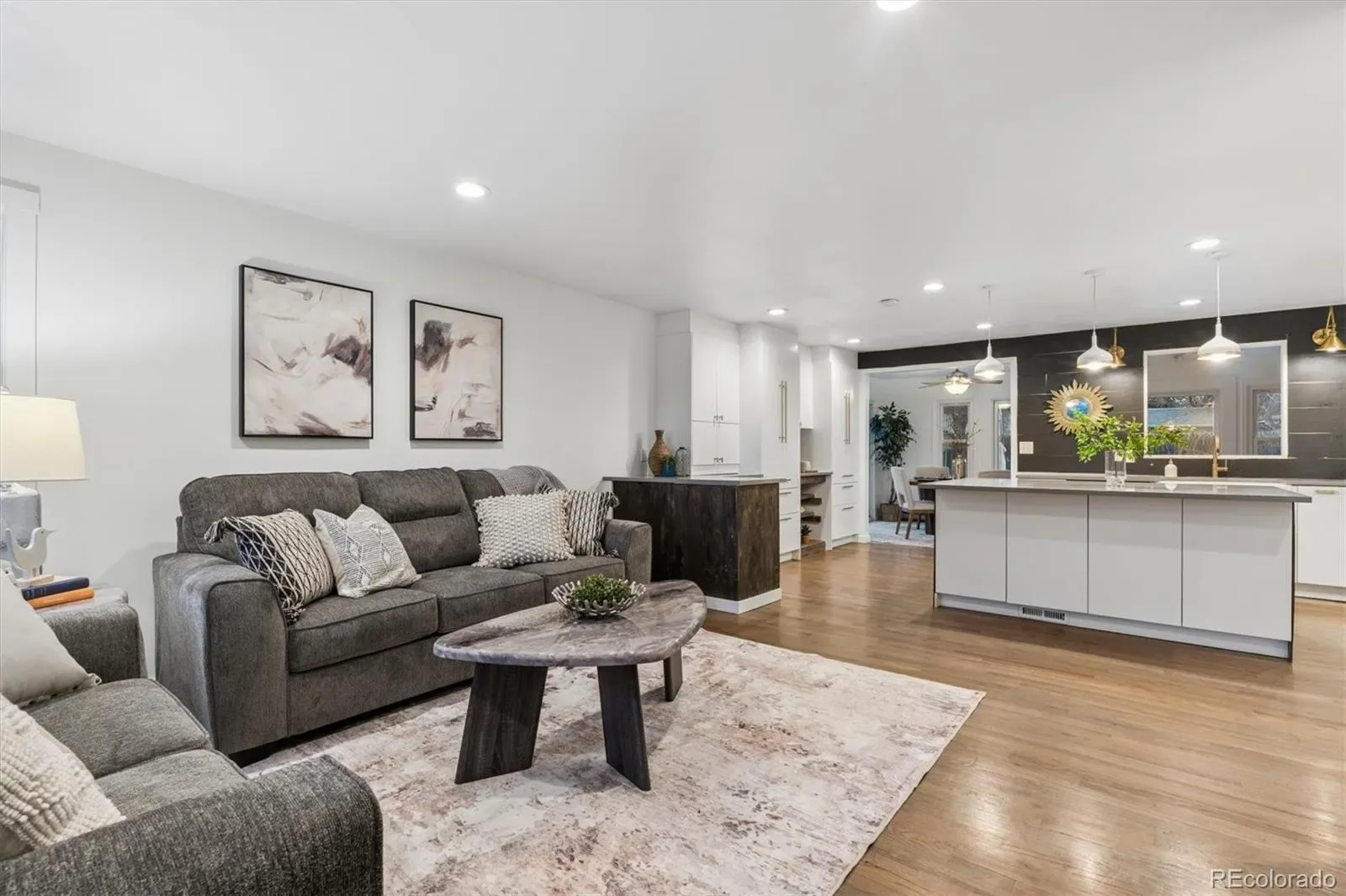 Welcome to this beautifully updated 5 bedroom, 3 bathroom ranch-style home offering a modern design, flexible layout, & thoughtful upgrades throughout. The main level features wood flooring & an open-concept layout that flows seamlessly from the inviting living room into the kitchen, perfect for everyday living & entertaining. The kitchen is a true centerpiece, showcasing a large island, quartz countertops, sleek white cabinetry, & stainless steel appliances, including a double oven & built-in shelving adding style & functionality. A striking backsplash beneath the range hood is sure to catch your eye. The spacious dining area connects easily to the backyard, making indoor/outdoor entertaining a breeze. The primary bedroom provides a relaxing retreat w/ a ceiling fan & light, closet space, a private ensuite 3/4 bath, & a versatile bonus room, perfect for an expanded closet, sitting area, or peaceful R&R space. The ensuite bath features a walk-in glass shower, sink, & toilet. Two additional main level bedrooms include new carpeting, closets, & share a full hall bath. The finished basement adds incredible versatility w/ two more bedrooms, a bonus room ideal for a home office, gym, or playroom w/ built-in shelving, & a large family room perfect for movie nights or hosting guests. A spacious laundry room includes washer & dryer, wash sink, shelving, & cabinets. You’ll also love the beautifully updated 3/4 bath with eye catching tilework & walk-in shower, making this an excellent option for multigenerational living. Additional highlights include solar, a newer roof, newer HVAC, an attached one car garage w/ exterior access, EV charger, & plenty of additional parking outside. Enjoy the fully fenced backyard w/ a Trex deck, garden area, & shed, perfect for BBQs, kids to play, or pets to roam. No HOA. Conveniently located near shopping, dining, trails, golf courses, & great schools w/ easy access to Denver & Boulder. Don’t miss this incredible opportunity!