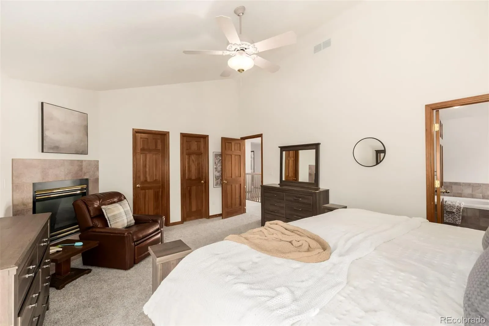 Upstairs, the bedroom level offers exceptional privacy and comfort. The primary suite serves as a true retreat with its own fireplace, walk-in closet, and spa-style bath featuring dual vanities, a jetted soaking tub, and a tiled shower. A second bedroom suite enjoys its own bathroom and private balcony access, while additional bedrooms offer generous space and storage. ?