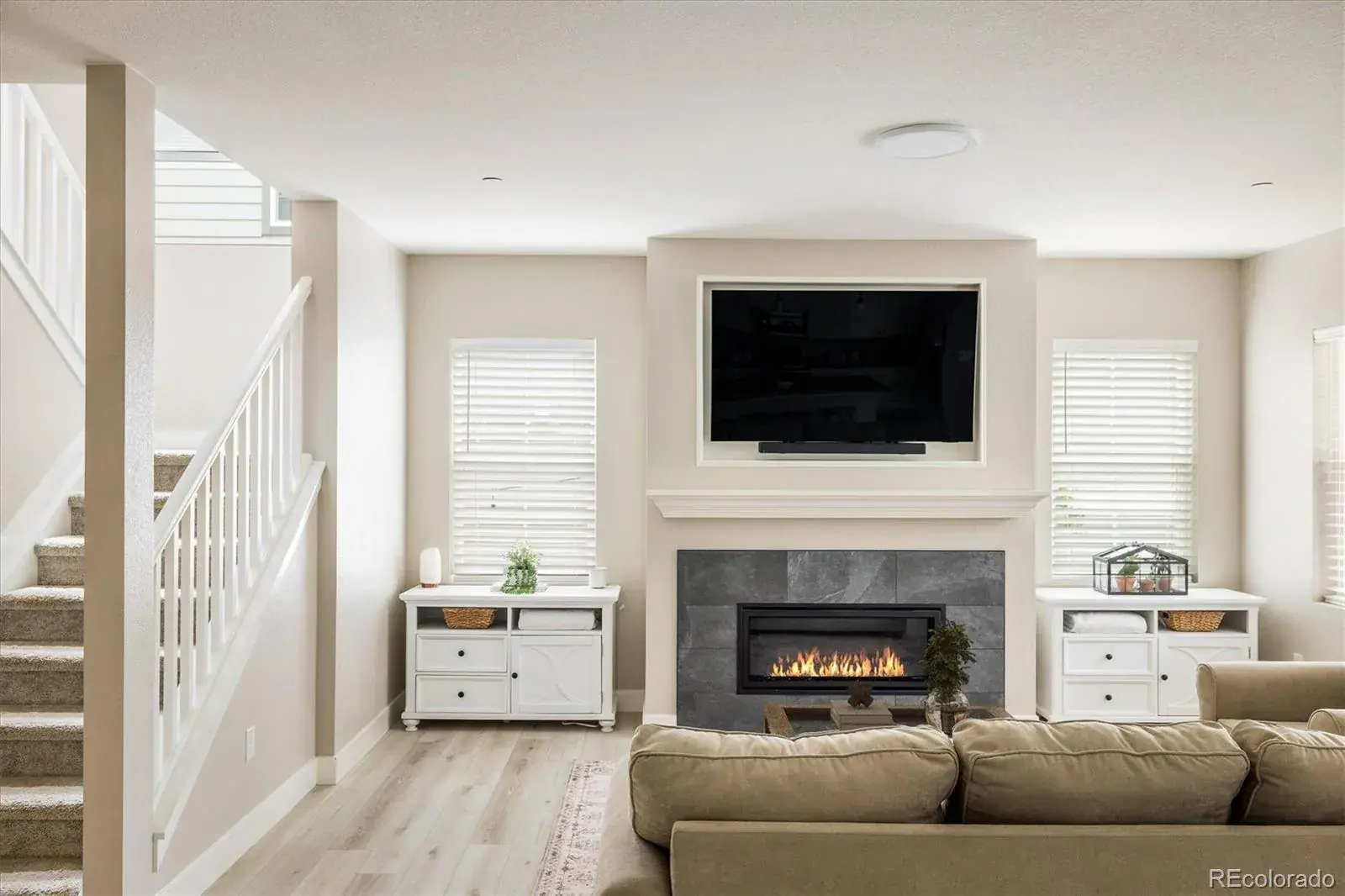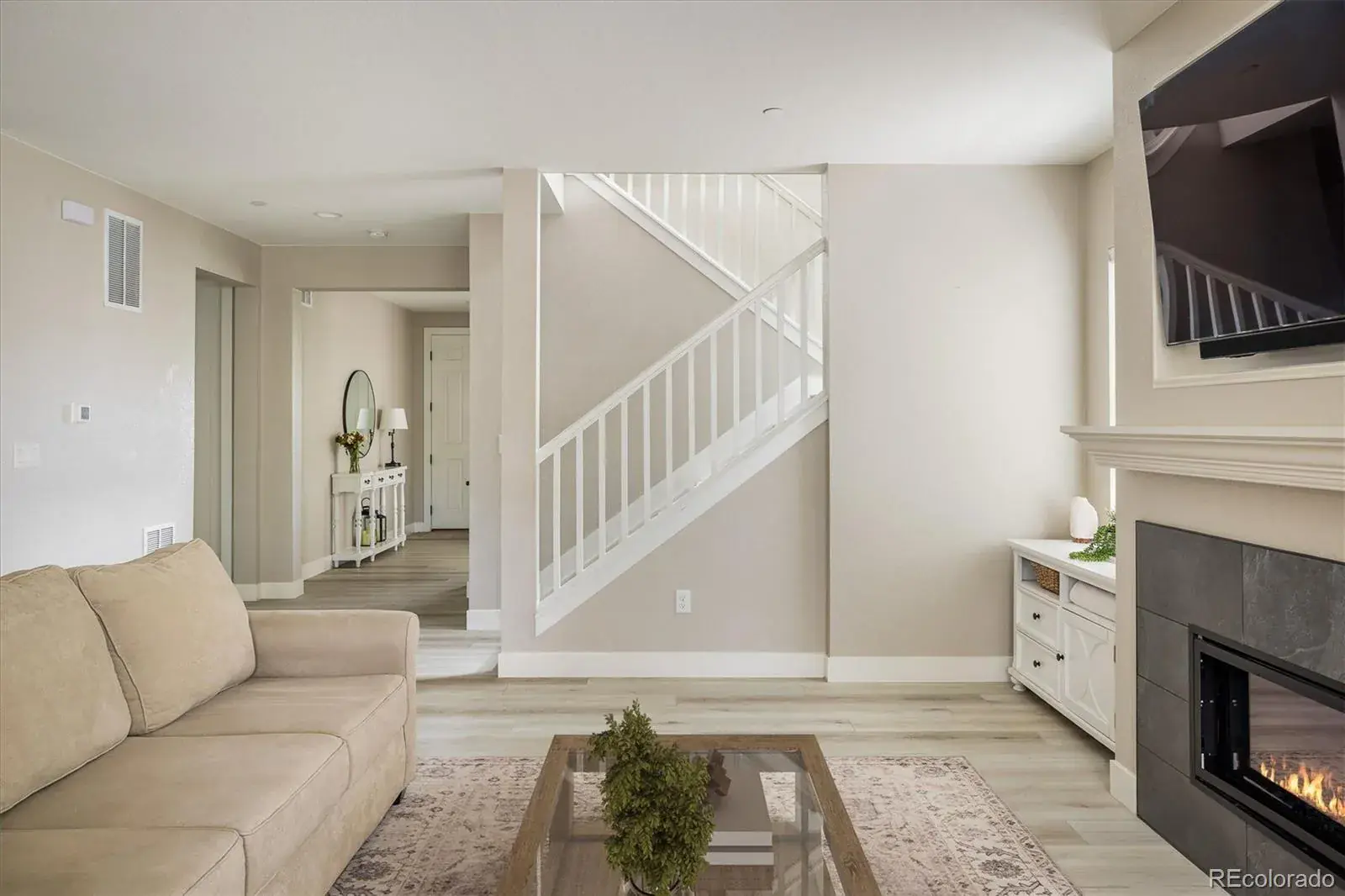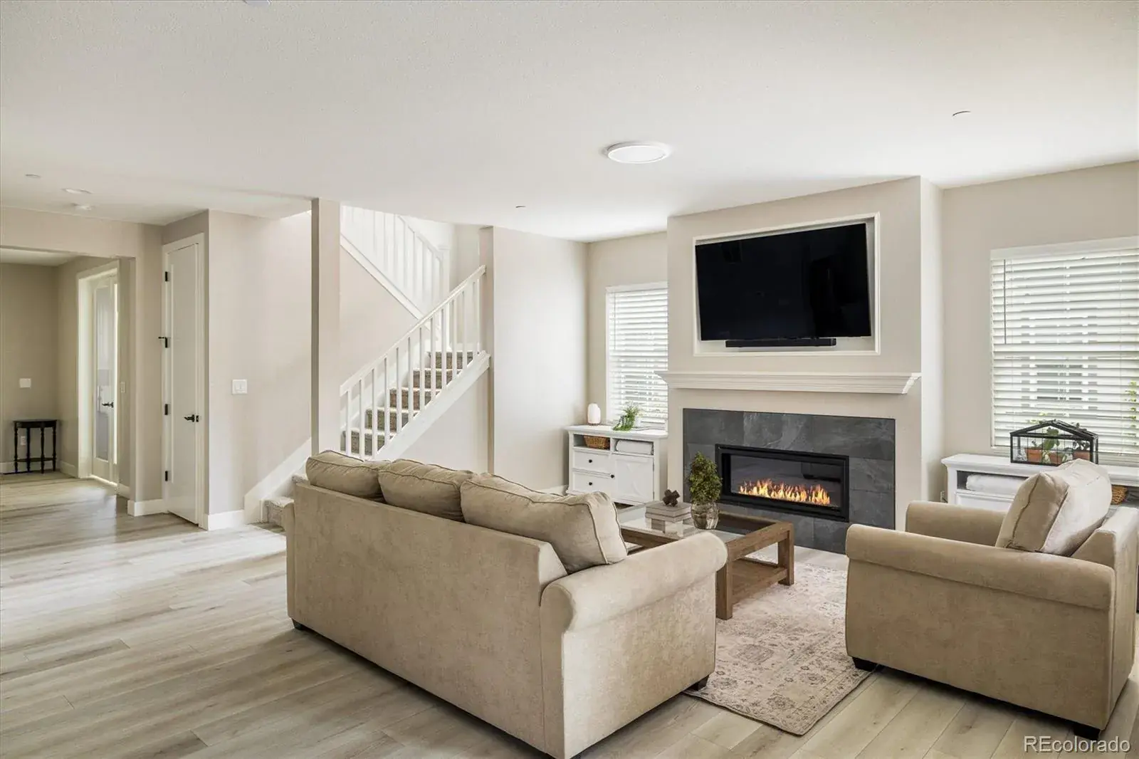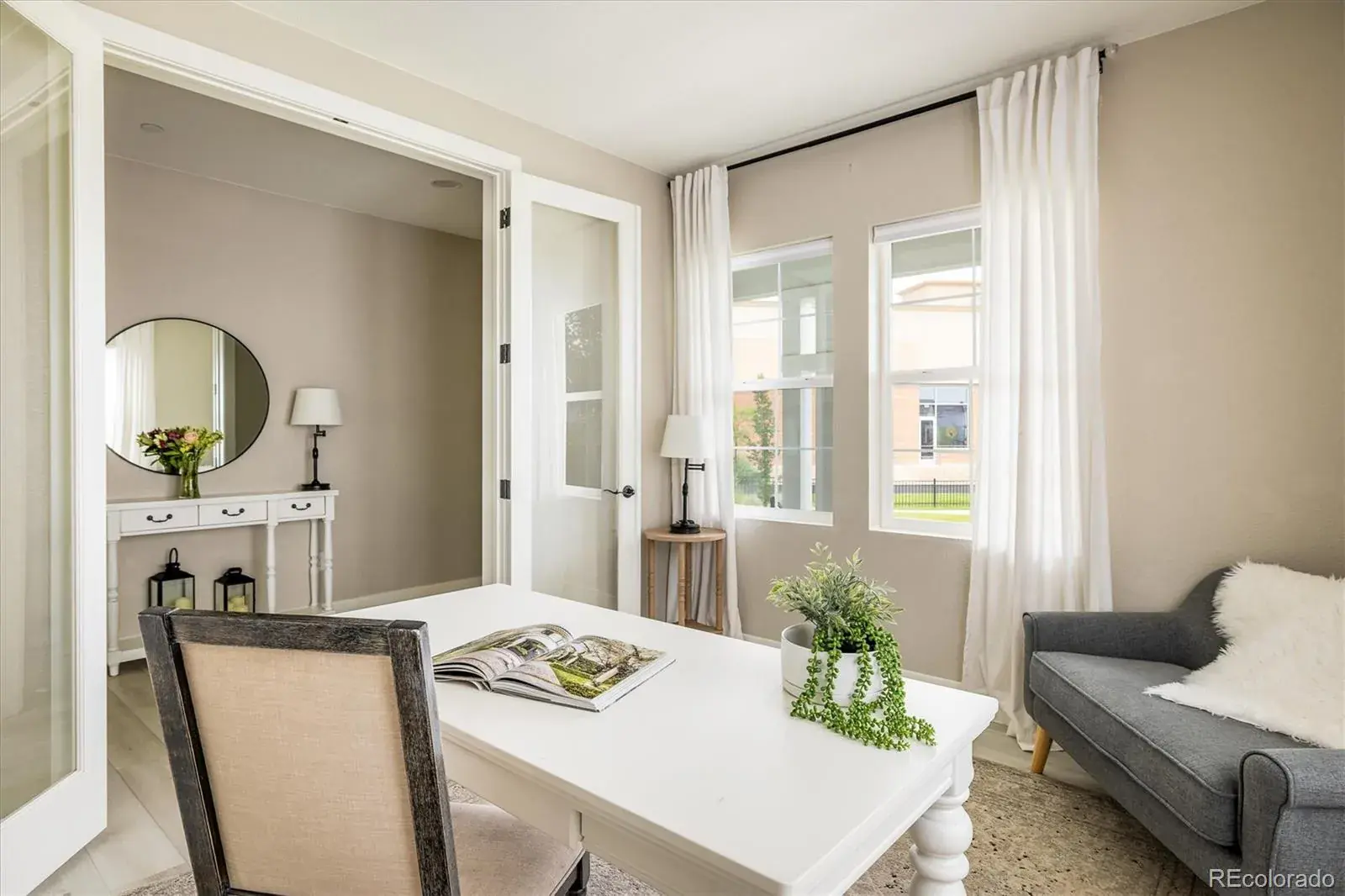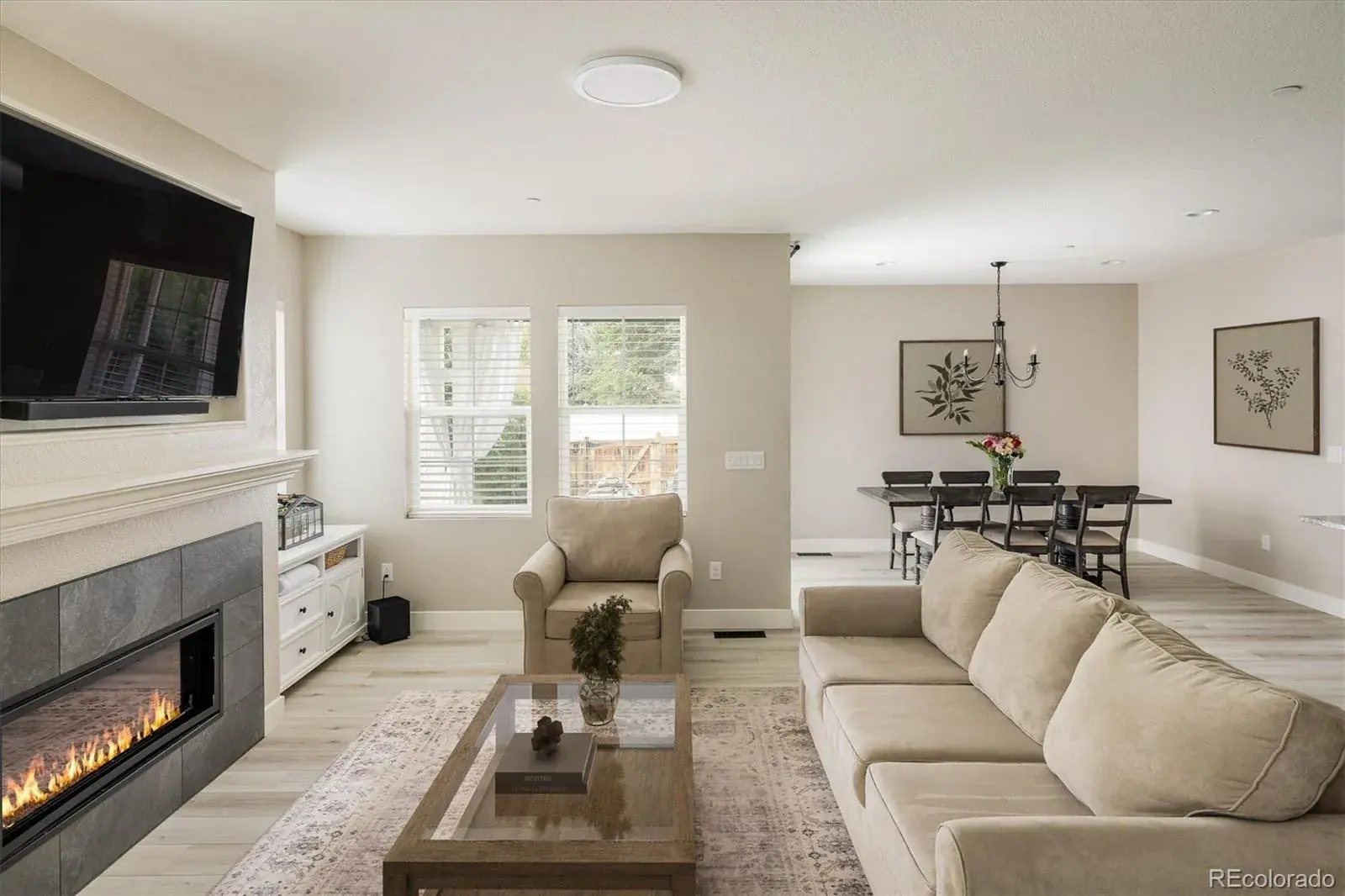 Bathed in natural light and set directly across from a neighborhood park, this south-facing Crown Point residence blends refined design with a layout ideal for multigenerational living. Large windows and elevated finishes define the main level, where an open living area centers on a sleek fireplace and connects seamlessly to a chef-inspired kitchen with a center island and extensive cabinetry. The dining area transitions to a covered patio and fenced backyard, creating an additional private gathering space suited for year-round use. The main level offers a bedroom paired with a 3/4 bath, a highly desirable feature for guests, multigenerational living, or those seeking main-floor convenience without stairs. A private office with French doors further enhances functionality for today’s work-from-home lifestyle. The upper level balances privacy and flexibility with a loft designed as a secondary lounge or study, a serene primary suite with a walk-in closet and double-vanity bath, and additional bedrooms positioned for separation between living areas. The finished basement enhances versatility with a theatre room, flex space, and a bedroom/bath configuration ideal for guests, extended-stay visitors, or multigenerational arrangements requiring distinct zones. A covered front porch and an attached two-car garage with alley access add convenience, while HOA-provided landscaping and snow removal contribute to an effortless, low-maintenance lifestyle. Located close to daily conveniences-Starbucks, grocery, FedEx, The Little Gym-and offering efficient access to Hwy 36 for travel toward Boulder or Denver. Sellers request 24 hours’ notice for showings.