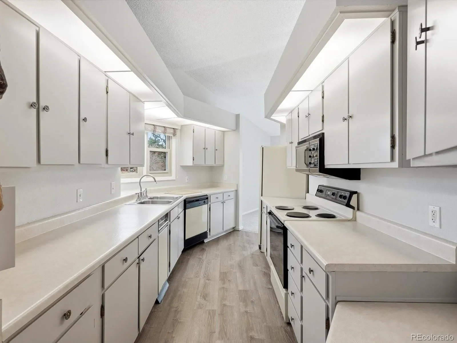 The light-filled family room is lined with expansive windows, capturing peaceful views of the pond and clubhouse while filling the space with natural light. A charming galley kitchen provides ample prep and cooking space and flows seamlessly into the formal dining area, perfect for hosting gatherings with family and friends.