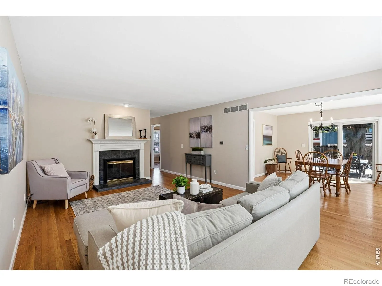 OPEN HOUSE SATURDAY, 4/18 11AM-2PM! This inviting home provides plenty of space, natural light, flexibility, and is perfect for everyday living and making lasting memories. The bright main level features wood floors, bay windows, and an inviting gas fireplace in the living room. The kitchen includes an eat-in area, pantry, and double ovens, while the dining space opens directly to a large backyard patio, creating an easy indoor/outdoor flow for entertaining. Recently painted interior and exterior, plus brand new carpet throughout, make this home move-in ready. The primary retreat offers generous closet space with a walk-in closet plus additional storage in the updated en suite bathroom. Just off the primary, a private, covered porch provides a great spot to relax, read, or unwind. An adjoining bonus room adds flexibility, ideal for a home office, nursery, or the potential to create a fourth upstairs bedroom. The lower level expands your living space with a spacious family room featuring a second gas fireplace, wet bar, built in bookshelves, and walk out access to the backyard. You will also find an additional bedroom with a walk-in closet and a three quarter bathroom with laundry area.The basement offers unfinished storage, a workshop area, and a large rec room that is ready for your vision. A two-car, oversized garage provides additional storage space. Central air and an attic fan to help keep you cool this season. This home is located on a quiet street and around the corner from Northmoor Park. It is close to schools, Broomfield Commons and an easy commute to Boulder and Denver.