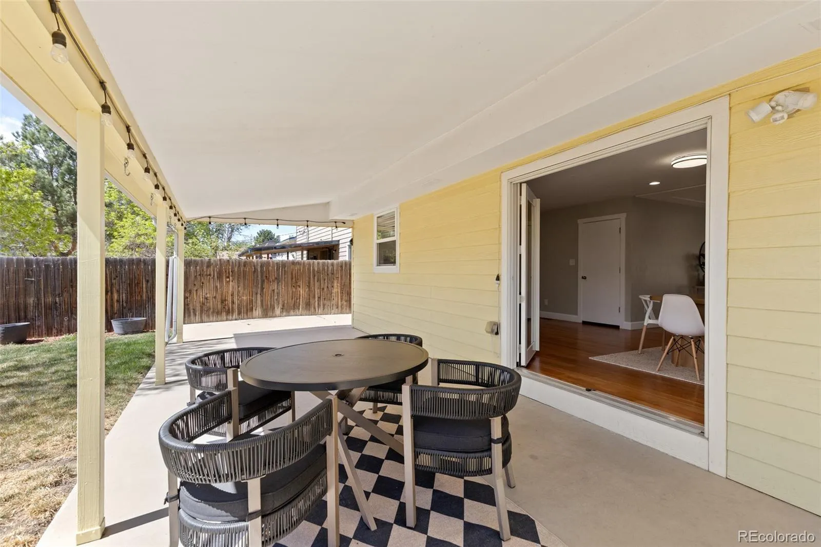 Cherry engineered wood flooring runs throughout the main level, complemented by upgraded windows that bring in tons of natural light. The partially unfinished basement offers a great opportunity to expand and make the space your own. The home is equipped with solar for energy efficiency and a radon mitigation system for added peace of mind. Enjoy both front and backyard spaces designed for everyday living and lots of entertaining. The front patio welcomes you in, while the backyard features an extensive covered patio, French doors, garden beds connected to the sprinkler system, and hidden rock speakers for even more fun.