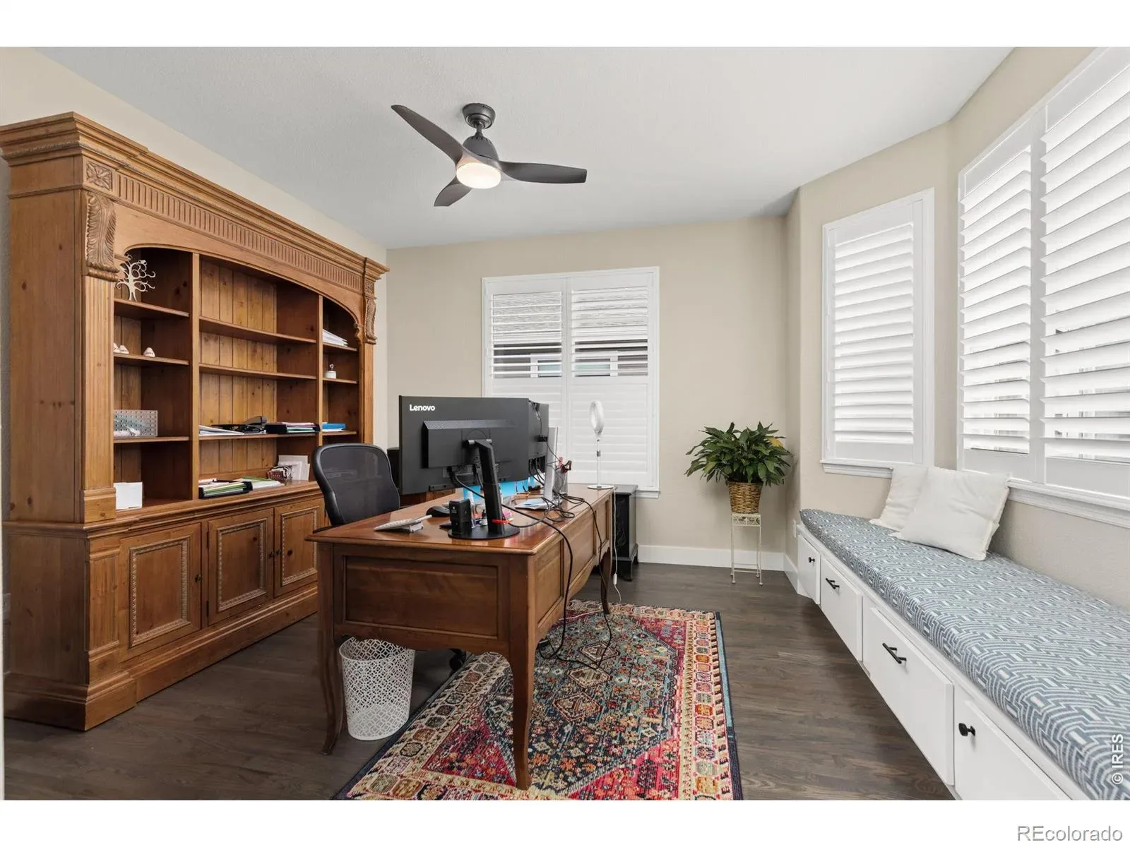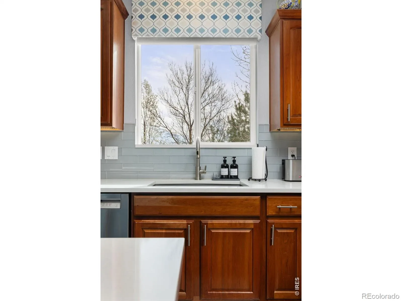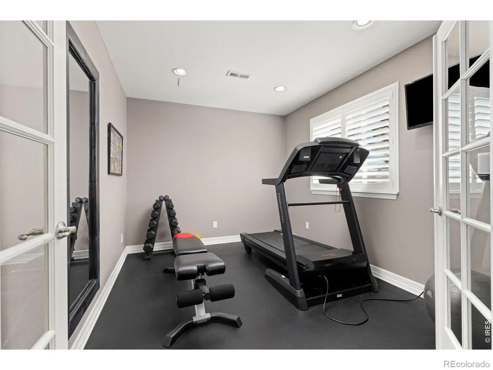 Beautifully updated home in the highly sought-after Red Leaf neighborhood, backing directly to a walking path with private gate access and close to parks, schools, and the Paul Derda Recreation Center. The main level offers a functional layout, including a dedicated office with a two-sided gas fireplace shared with the living room. The kitchen features both formal and eat-in dining options, ideal for everyday living and entertaining. Natural light fills the home. Upstairs, the spacious primary suite includes an upgraded bathroom and a comfortable retreat feel, with well-sized secondary bedrooms nearby. The garden-level basement adds exceptional versatility with a wet bar, workout room, additional living space, and unfinished square footage for storage or future expansion-giving buyers flexibility for future needs. Step outside to enjoy a thoughtfully designed backyard with a deck, flagstone patio, and gas fire pit-perfect for relaxing or hosting-with direct access to the walking path for an extended outdoor lifestyle. Additional features include a leased solar system for energy efficiency, EverLights exterior lighting for hassle free customizable holiday and seasonal lighting, and a 3-car garage with epoxy floors, built-in storage, and workbench. This home offers a rare combination of usable space, thoughtful upgrades, and a location that connects seamlessly to the surrounding community-making it as functional as it is enjoyable day to day.
