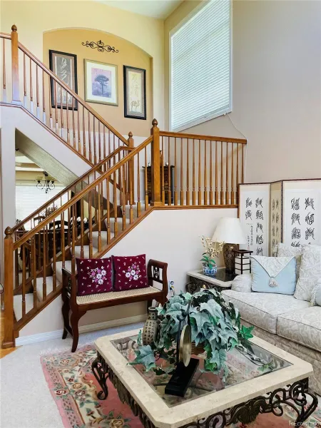 LOCATION! Located in the center of the desirable Broadlands community, with quick access to I-25, C-470 and also Hwy 36, close to Safeway and King Soopers and other food markets, Costco as well as Flatirons Shopping Center and Orchard Town Center. Walking trails all around, a swimming pool and a playground across the street. This corner lot house features 5 bedrooms and 4.5 baths, hardwoods throughout as well as tremendous 2-story open concept living area with vaulted ceiling with built -in speaker/wiring pre-installed and fiber filling between all the walls for sound barrier. The family room has gas fireplace with huge windows to allow lots of natural light and open to an eat-in kitchen with a large island for gathering with huge open space for entertaining guests. The upper level has a huge master bedroom that features bay window with a large bathroom with shower and bathtub, separate sinks and separate walk-in closets. The guest room with private full bathroom, and 2 additional bedrooms have shared jack-jill bathroom. Front entrance you will find the large stamped concrete leading to a front covered porch. Stamp concrete path continues to the back of the house leading to the huge stamped concrete patio big enough for a nice family gathering.