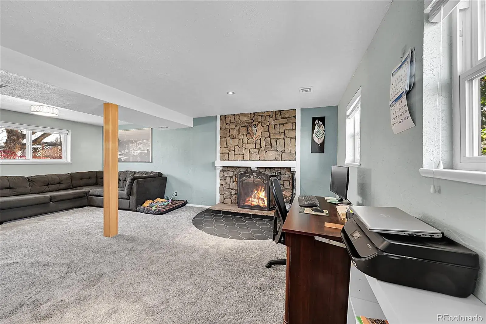 The home offers a fantastic floor plan, with a main-floor living room that can also serve as a formal dining space. The large kitchen provides ample room for dining and entertaining, along with abundant cabinet storage. The lower level features a beautiful, cozy wood-burning fireplace—perfect for relaxing evenings.