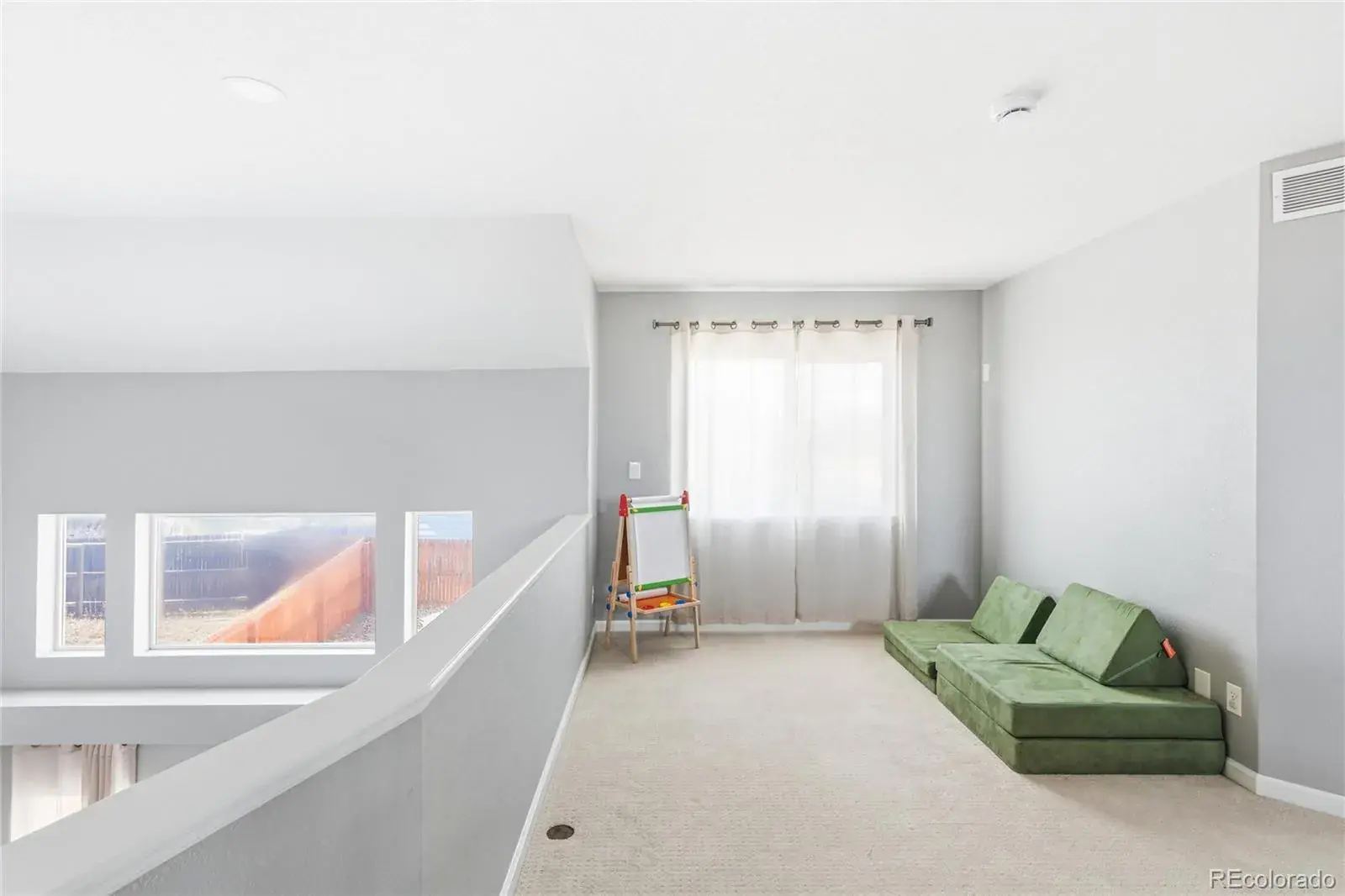 Upstairs, you’re greeted by a spacious loft—perfect for a playroom or home office. The generously sized primary suite includes a walk-in closet and a remodeled bathroom with a walk-in shower and double vanity. Two additional bedrooms separated by the loft for privacy share an updated full bathroom with double sink vanity.