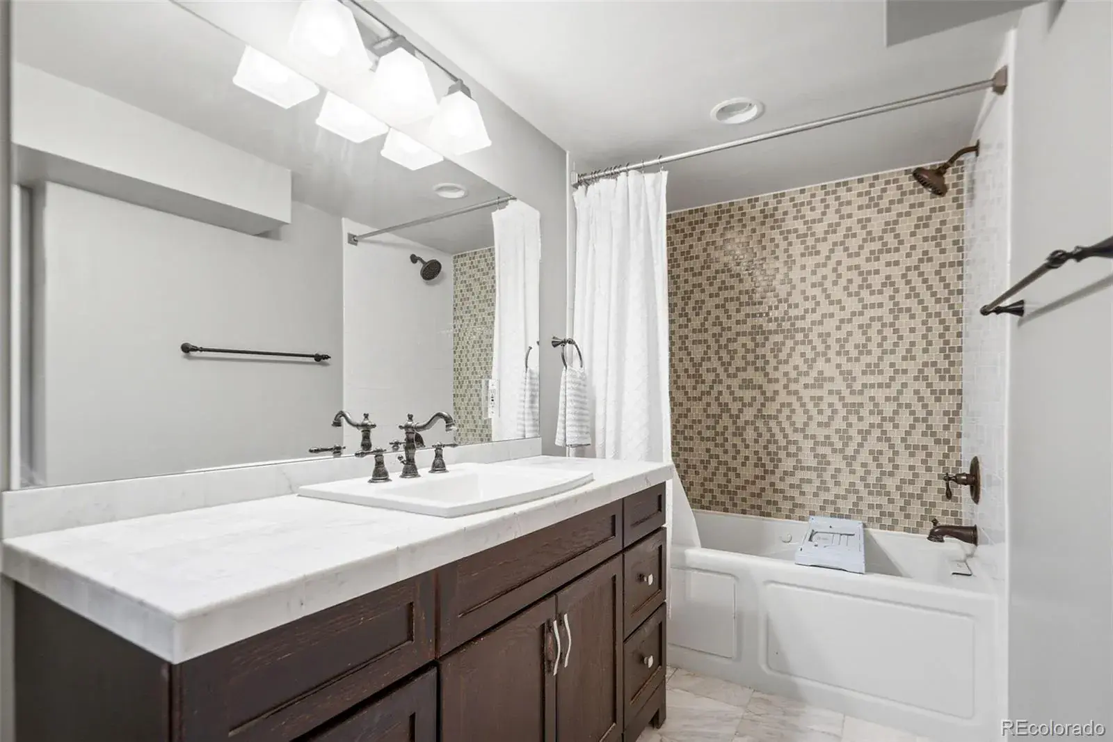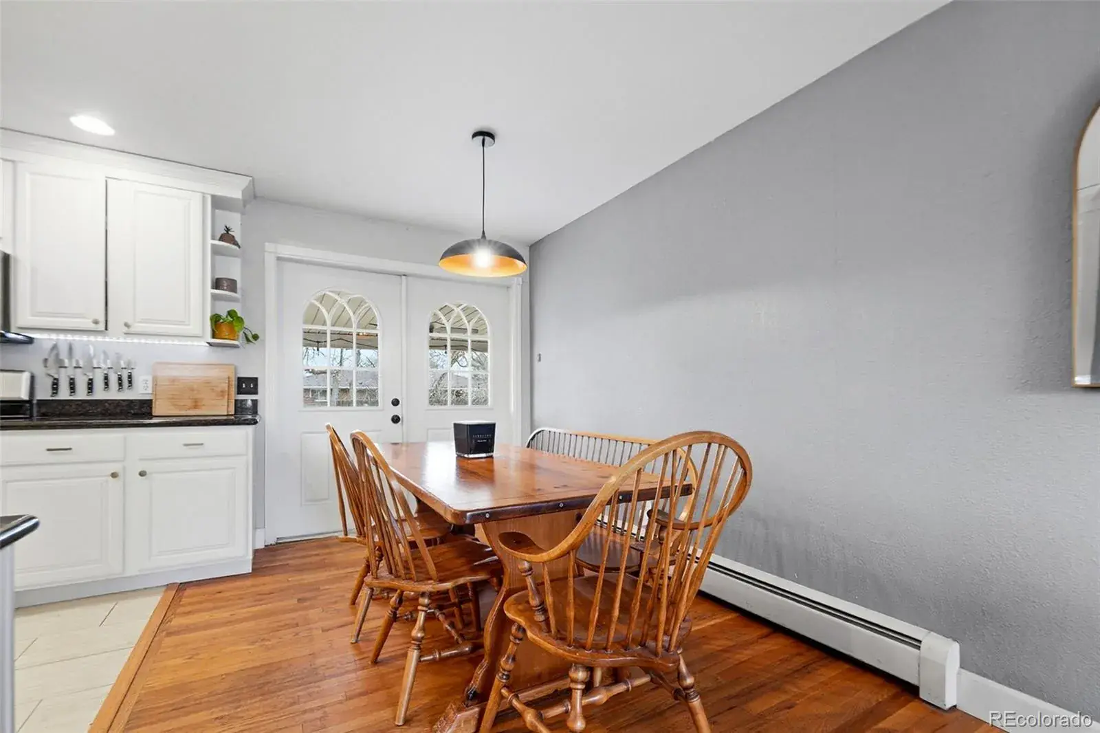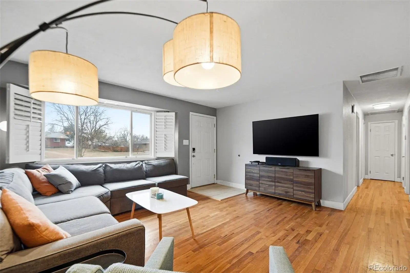 Welcome home to this beautifully updated brick ranch in the highly sought-after Cherry Hills Manor neighborhood where timeless style meets modern comfort. From the moment you step inside, you’ll feel the warmth of rich hardwood floors, abundant natural light, and thoughtfully curated updates throughout. The sunny living room flows effortlessly into the open dining area, creating a welcoming space for everyday living and entertaining. The updated gourmet kitchen is a true standout, featuring granite countertops, crisp painted cabinetry, quality stainless steel appliances, and a natural gas range-perfect for home chefs and hosts alike. The main level also offers updated bathrooms with custom tile surrounds and modern finishes, along with spacious bedrooms including a private primary suite with its own 3/4 bath. Downstairs, the fully finished basement delivers serious wow factor. The oversized den is ideal for movie nights and game days, highlighted by a distressed wood accent wall, electric fireplace, built-in shelving, and surround sound. A bright flex room provides endless options-home gym, craft room, or creative studio-while an additional bedroom with built-in storage and cabinetry adds both space and function. Outside, enjoy Colorado living at its best with a covered stamped-concrete patio, gas firepit, and dedicated entertainment area-perfect for summer evenings and fall gatherings. Mature landscaping and a fully fenced yard provide privacy and charm. Ideally located near deKoevend Park, Trader Joe’s, Southglenn shopping, and the DTC, this turnkey home delivers style, comfort, and an unbeatable location. Move in, relax, and enjoy.