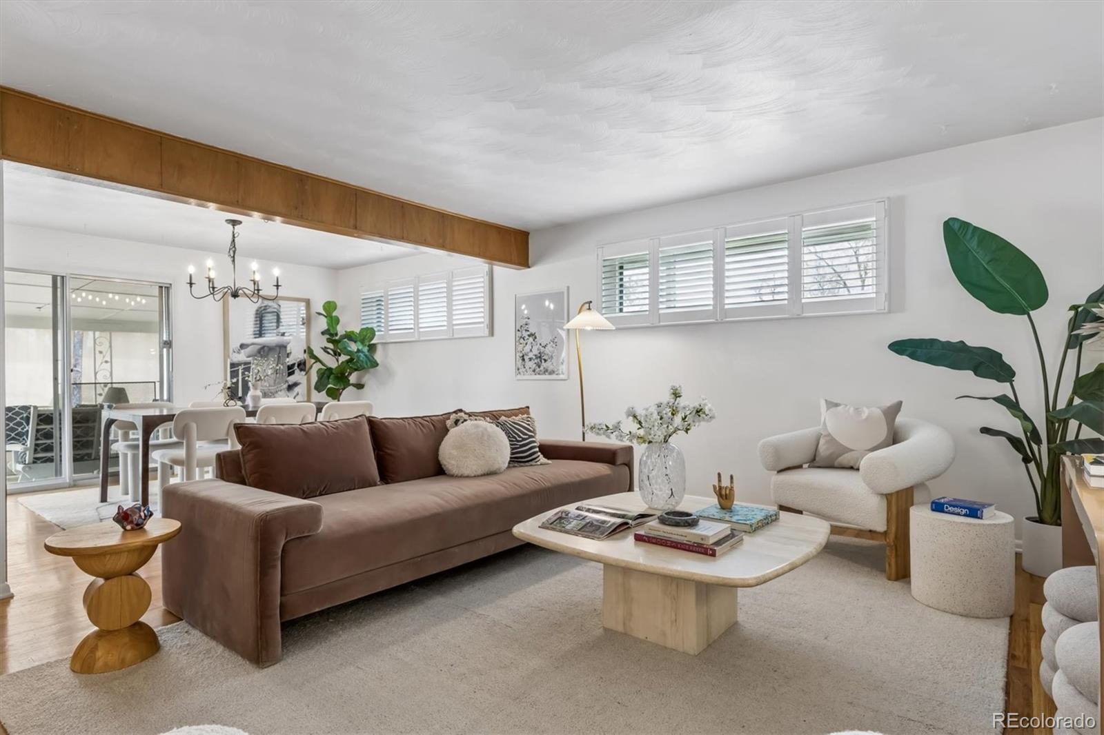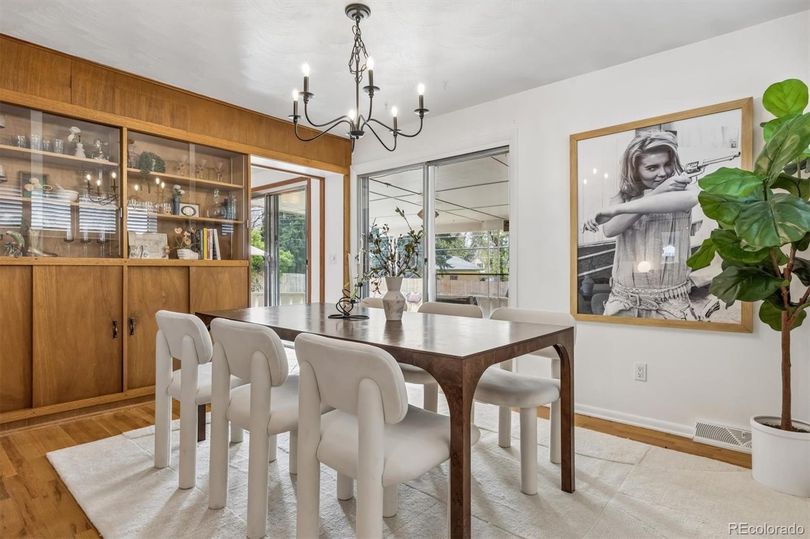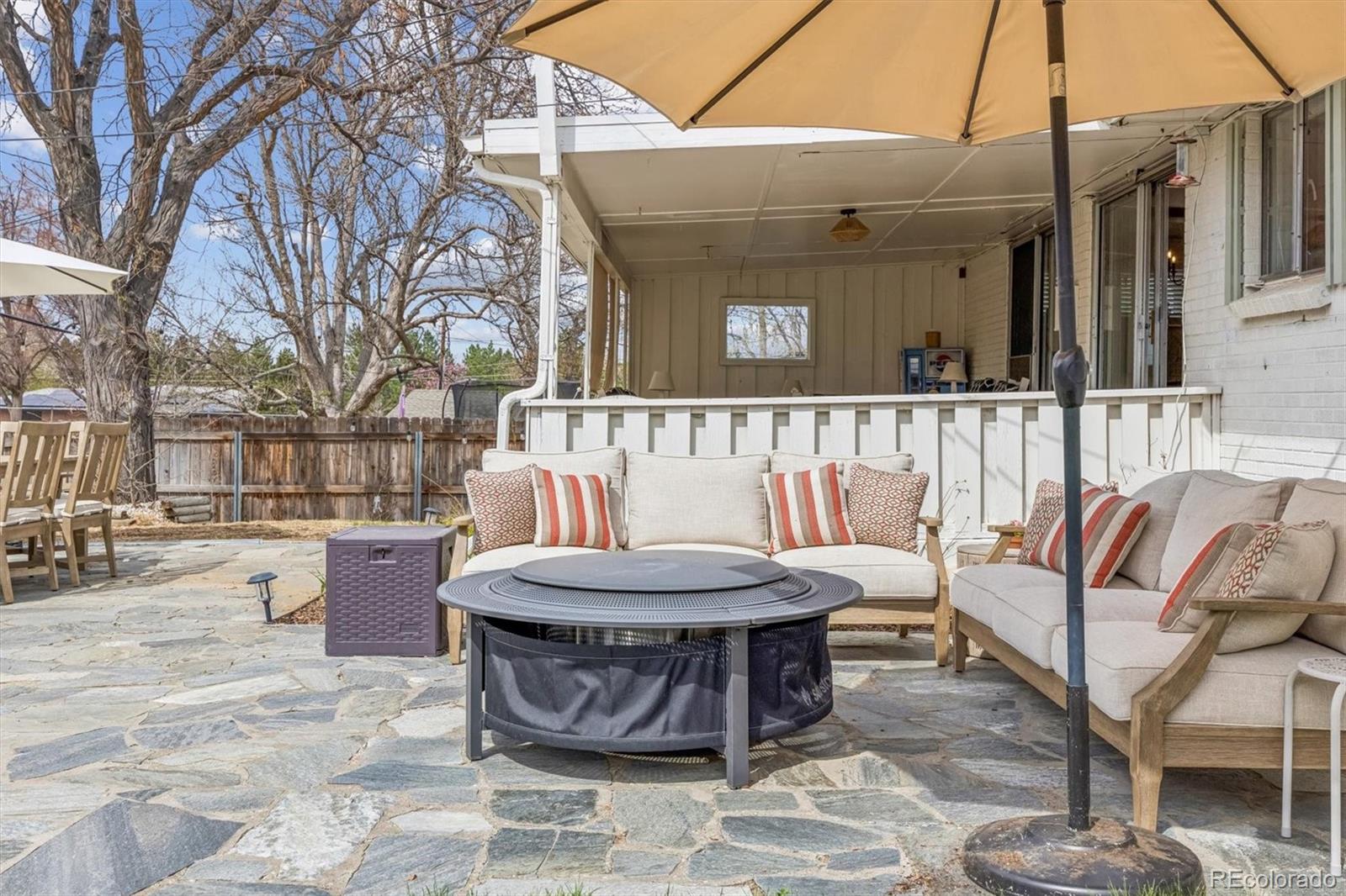 Charming brick ranch in Dream House Acres on large lot. The floor plan is perfect for many lifestyles with 5 bedrooms, 3 baths, and an open living and dinning room plan with original mid century modern details. Wood floors throughout the main floor where you will find the Primary en-suite bedroom with stand up shower and two additional bedrooms with a full hall bath. Entertaining spaces and kitchen open to a covered porch area, stone patio and massive, recently landscaped , fully fenced yard. The finished basement has high ceilings, a generously sized family room area with fireplace, a built in bar and dart room plus two additional large bedrooms and a 3/4 bath. Laundry room, storage and workshop space are also found in the basement. This home has a two car attached garage that enters into a charming front foyer with coat closet. Fabulous location near the Highline canal and all of the amenities at Cherry Hills Marketplace located at University and Orchard road, with Trader Joe’s, Starbucks, Great Harvest etc. Near schools, parks, shopping and restaurants. Easy access to University Blvd to get to DU area and Cherry Creek as well as easy access to DTC and I25 off Bellevue or Arapahoe.