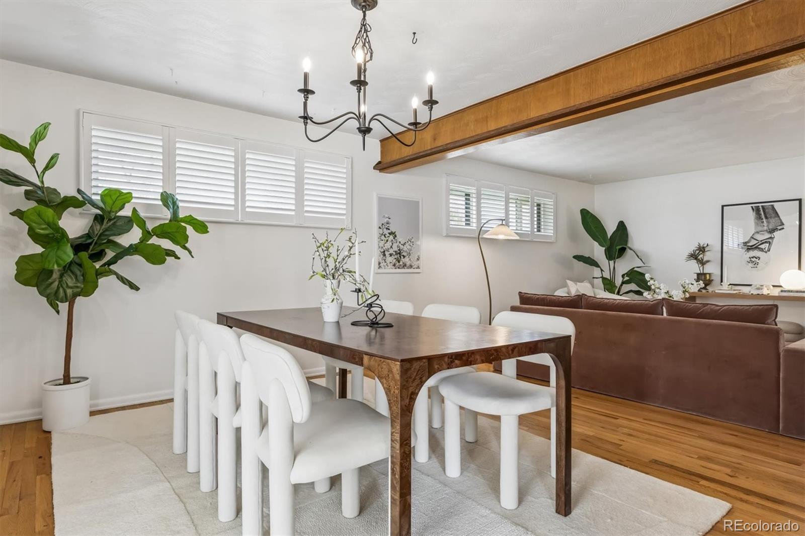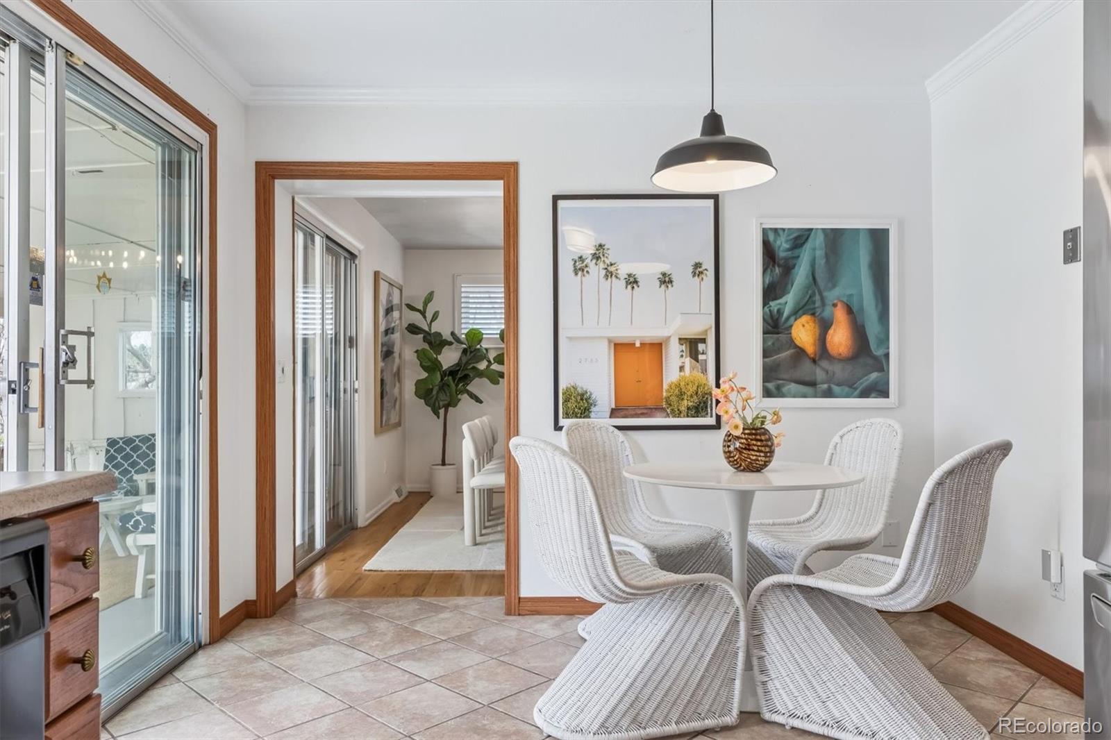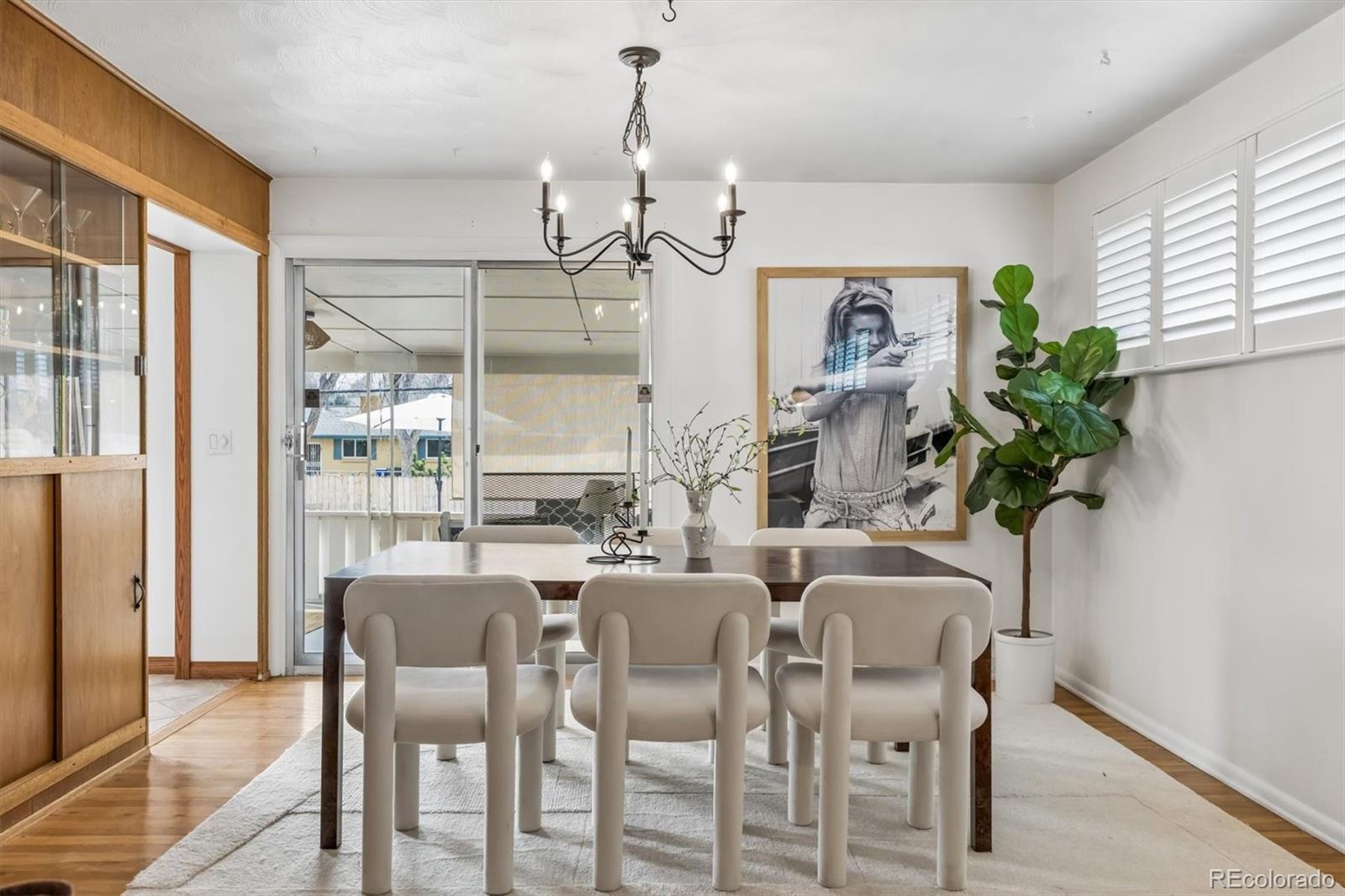 Charming brick ranch in Dream House Acres on large lot. The floor plan is perfect for many lifestyles with 5 bedrooms, 3 baths, and an open living and dinning room plan with original mid century modern details. Wood floors throughout the main floor where you will find the Primary en-suite bedroom with stand up shower and two additional bedrooms with a full hall bath. Entertaining spaces and kitchen open to a covered porch area, stone patio and massive, recently landscaped , fully fenced yard. The finished basement has high ceilings, a generously sized family room area with fireplace, a built in bar and dart room plus two additional large bedrooms and a 3/4 bath. Laundry room, storage and workshop space are also found in the basement. This home has a two car attached garage that enters into a charming front foyer with coat closet. Fabulous location near the Highline canal and all of the amenities at Cherry Hills Marketplace located at University and Orchard road, with Trader Joe’s, Starbucks, Great Harvest etc. Near schools, parks, shopping and restaurants. Easy access to University Blvd to get to DU area and Cherry Creek as well as easy access to DTC and I25 off Bellevue or Arapahoe.