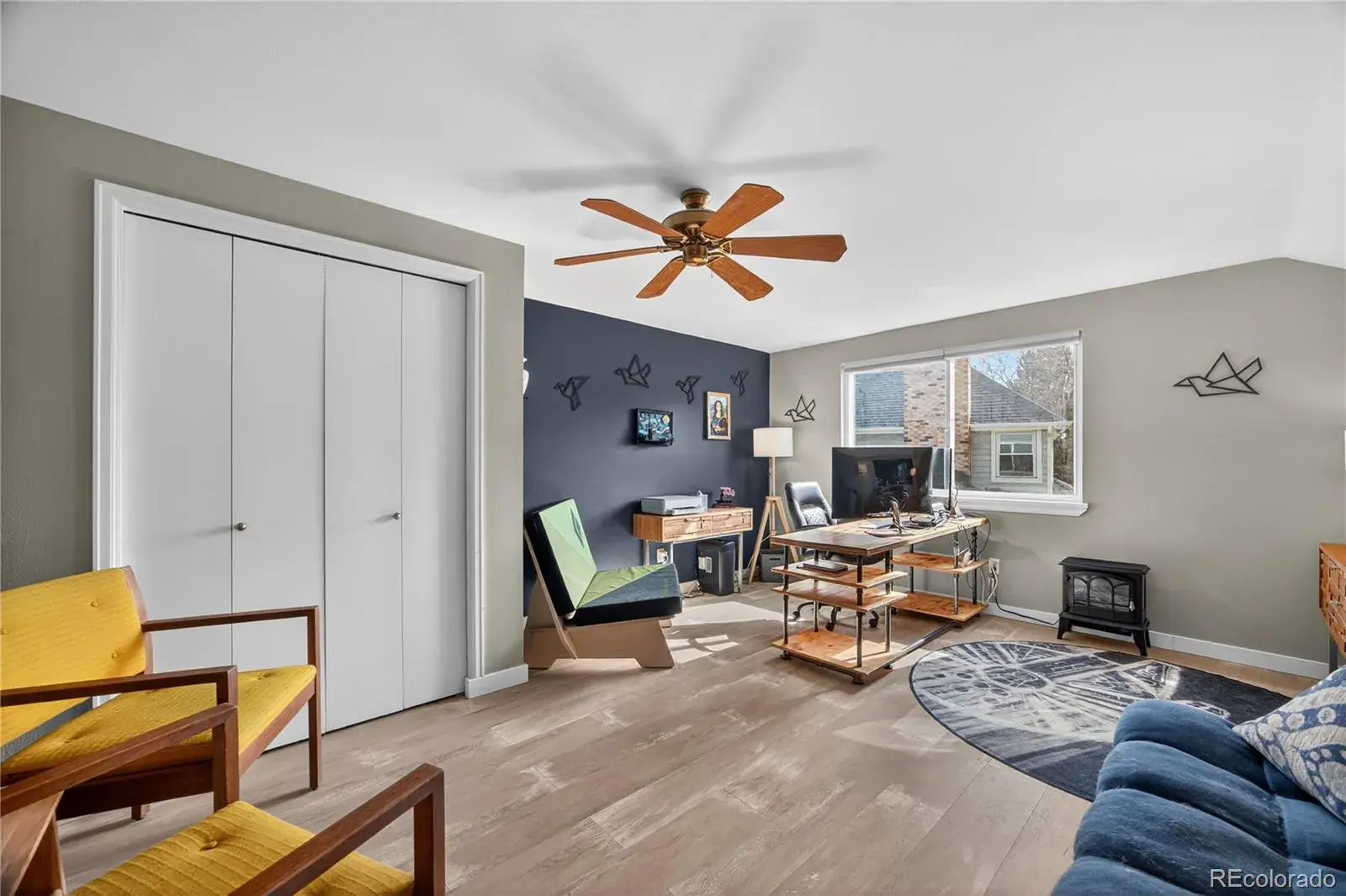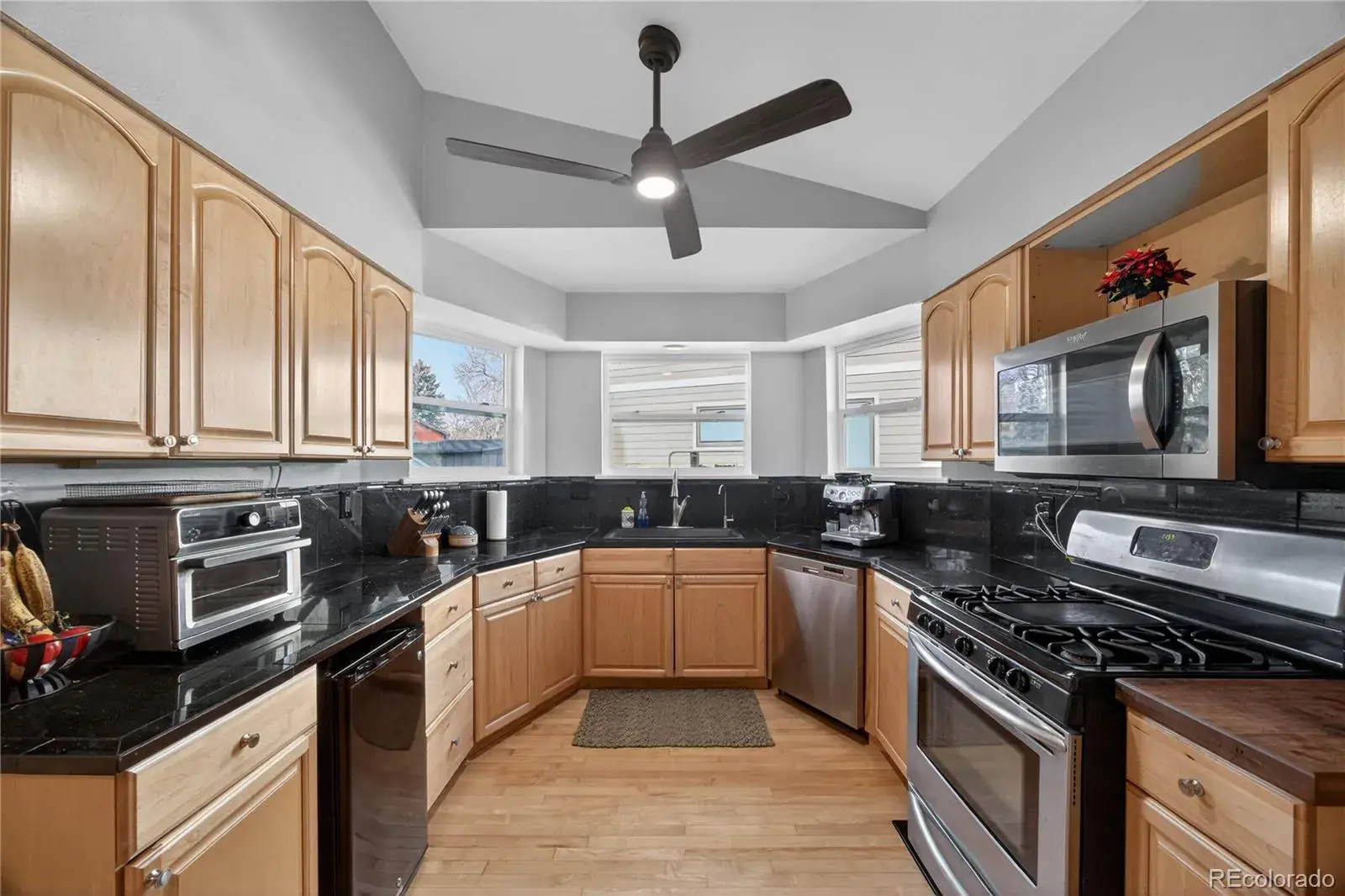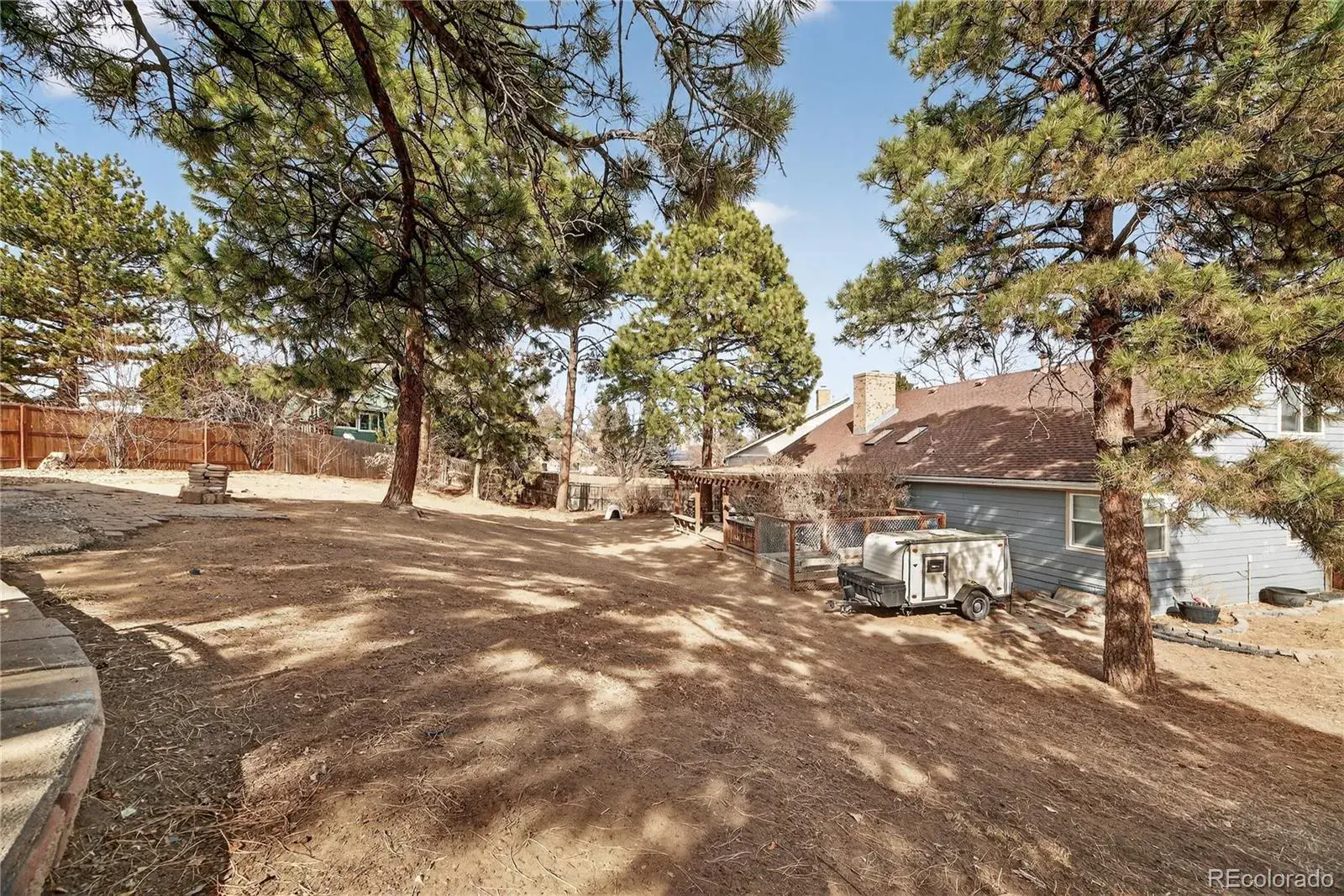 One-of-a-kind property in the desirable Foxridge neighborhood and the high-ranking Cherry Creek School District. This five-bedroom, three-bath updated home and oversized 14,680 sq ft lot has all the space you need both inside and out. The main level features an open living room with vaulted ceilings, and shares a double-sided fireplace with the dining area, providing a classic focal point that enhances both spaces. The kitchen includes newly refinished wood floors, stone countertops, a built-in refrigerator and a large center island with plenty of storage.