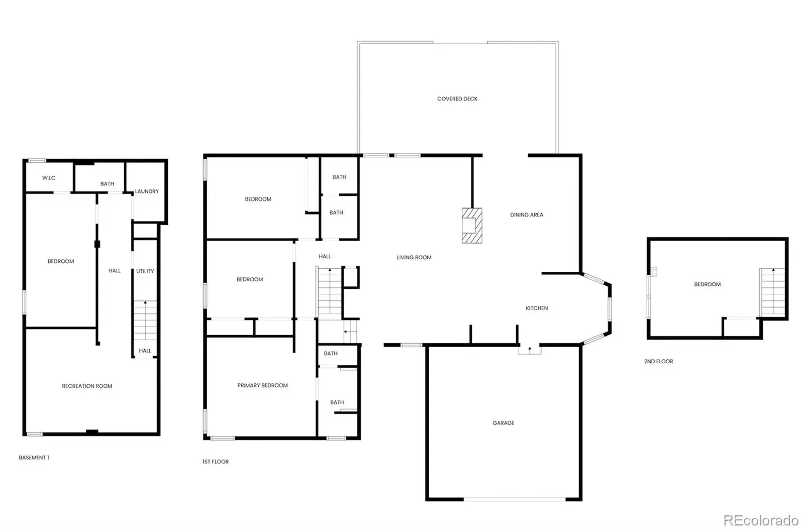 Newer carpet in the living area continues in the three main-level bedrooms, including a primary with remodeled en suite and custom storage. Upstairs is a single, private bedroom with laminate wood flooring for a modern feel. The fully finished basement has an additional living area that would make a perfect media room, a spacious fifth bedroom with conforming egress window and adjacent 3/4 bath, as well as separate laundry room and utility closet. The attached two-car garage and large driveway has room for all kinds of vehicles.