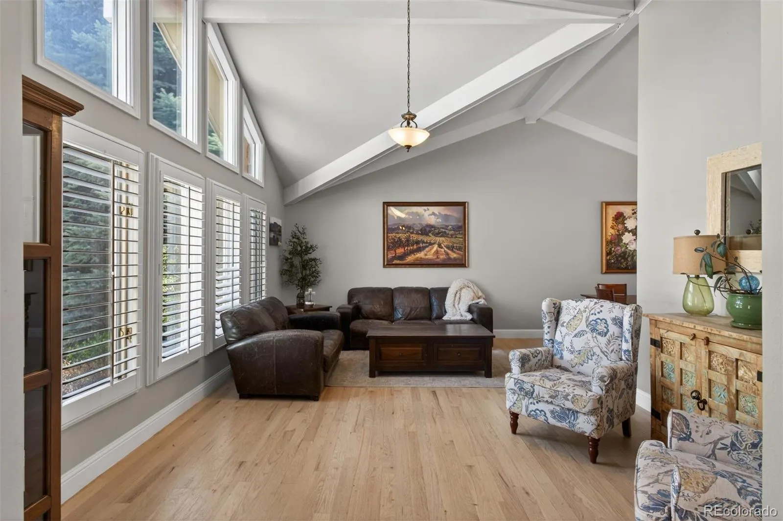 Shaded by mature trees and rich in character, Heritage Greens is regarded as one of the area’s most in-demand neighborhoods, celebrated for its active spirit and year-round community happenings. Just steps across the street, the neighborhood pool and tennis courts bring an energetic, amenity-rich feel, offering both everyday ease and a natural gathering place right at your doorstep. As you step inside this beautiful tri-level home, natural light pours through expansive windows, highlighting the warmth of hardwood floors and elegant plantation shutters throughout. The bright, open entry welcomes you with soaring vaulted ceilings, guiding you effortlessly into a graceful living and dining space designed for both everyday living and entertaining. The kitchen, a standout feature, offers rich cherry cabinetry, granite countertops, stainless steel appliances, and a wine refrigerator. A private deck off the kitchen provides the perfect perch for morning coffee surrounded by mature trees. Just beyond, the space flows into the inviting family room below, where a cozy fireplace anchors the space and sliding French doors open to a peaceful backyard retreat. A bedroom, bath, and laundry area on the lower level enhances both flexibility and everyday functionality. Upstairs, the spacious primary suite offers a relaxing escape with a walk-in closet, luxurious jacuzzi bath, dual sinks, and a separate shower. Two additional bedrooms and a well-appointed bath complete the upper level. Downstairs, a fully finished walk-out basement expands your living space with a media area and large recreation zone. This home places recreation, wellness, and everyday essentials within easy reach. Outdoor enthusiasts will also appreciate quick access to scenic trails, perfect for walking, biking, and enjoying Colorado’s sunshine. With a variety of shopping & dining, this location offers an ideal blend of peaceful surroundings and urban convenience.