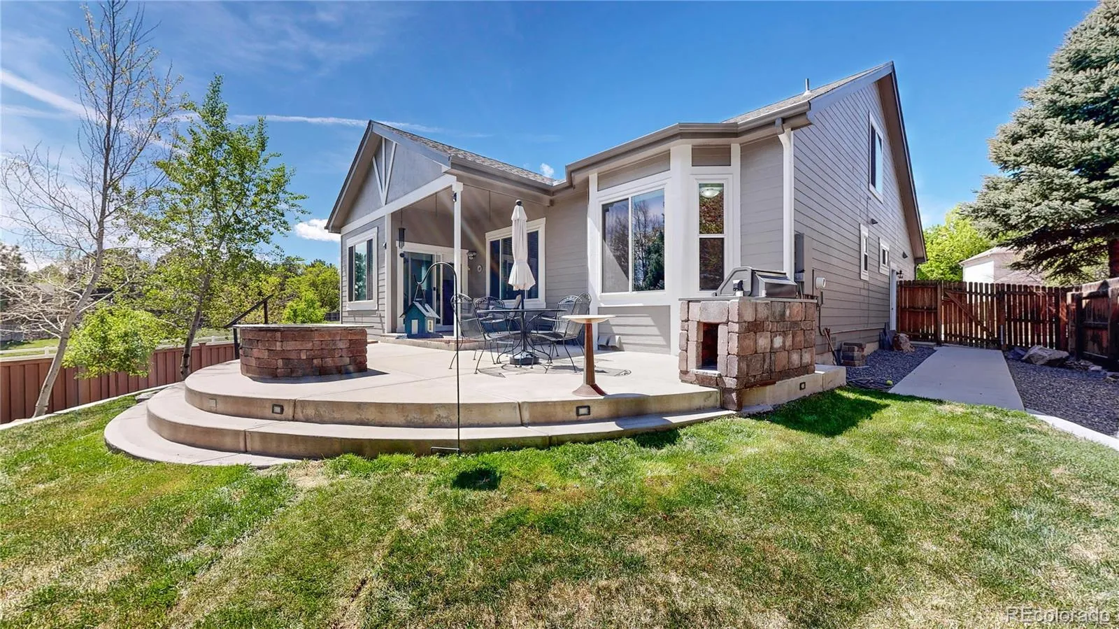 Enjoy your private outdoor setup with a concrete deck, built-in BBQ, fire feature, and ambient lighting. A brand-new Trex fence along the road side adds durability, low maintenance, and privacy.