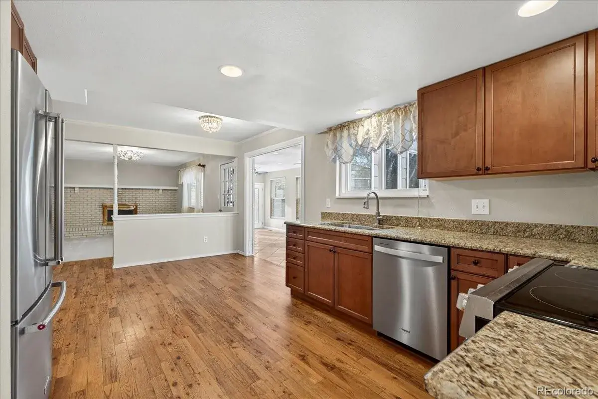 Location, lifestyle, and flexibility all come together in this unique Palos Verdes home located in the highly sought-after Cherry Creek School District. Just minutes from the Denver Tech Center and with easy access to downtown Denver, you’ll love the convenience of this quiet, friendly neighborhood that’s still close to shopping, restaurants, and major highways. A significant 2018–2019 addition truly sets this home apart. Enjoy a beautifully designed, well-lit all-season sunroom with custom travertine and onyx flooring, perfect for relaxing year-round, complete with a natural gas cast iron stove with remote for added warmth and charm. The Family room also features a real wood burning fireplace. The home is equipped with all newer appliances and a whole-house fan. Hardwood floors in the entry and kitchen, and new carpet and flooring elsewhere. Upstairs, two bedrooms were significantly enlarged, and a spacious Great Room was added, offering incredible flexibility. This expansive space includes a second gas cast iron stove and a washer box, providing additional options for future customization. It can serve as a recreation room, mother-in-law suite, or an oversized bedroom. Windows throughout provide close-up views of two nesting boxes frequently used by flickers, squirrels, and owls. Outside, the well-fenced yard includes both single and double gates and a well-maintained sprinkler system. The landscape is rich with diverse trees, including Crimson Oak, Red Mountain Ash, Japanese Ivory Silk, Pin Oak, Northern Glow Maple, Peach trees, Hawthorn, a mature Silver Maple, and a large Ash tree providing ample shade. The front yard is accented by a large Ponderosa Pine and various evergreens. Walking distance to Fiddler’s Green and surrounded by top-rated schools, this home offers space, comfort, and a one-of-akind layout in an unbeatable location.