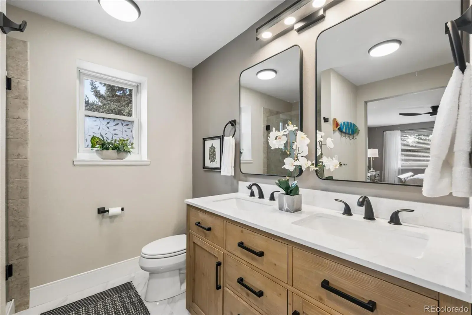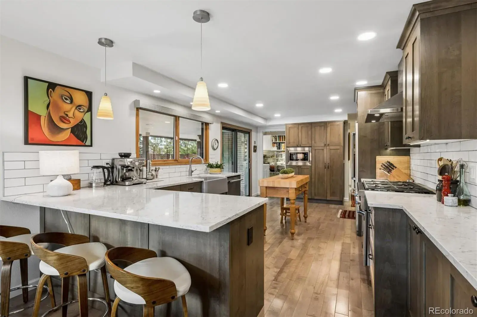 Discover this classic Colorado contemporary two-story home nestled in the sought-after Palos Verdes neighborhood of Centennial. Enjoy exceptional convenience with quick access to the Denver Tech Center, Fiddlers Green Amphitheater, I-25, Downtown Denver, Castle Rock, and beyond. The main level is designed for easy living and entertaining, featuring formal living and dining rooms along with a versatile den highlighted by a fireplace—perfect as a cozy sitting area or intimate family room. The updated kitchen is both stylish and functional with quartz countertops, ample cabinetry, and stainless steel appliances. Step outside to the expansive patio and beautifully landscaped backyard, an ideal setting for summer grilling, outdoor gatherings, or a casual basketball game. Upstairs, the spacious primary suite offers a private retreat with an updated en-suite bath. Four additional generously sized bedrooms share a full hall bath, providing flexibility for family, guests, or home office needs. The finished basement adds valuable living space with a large recreation room and wet bar—perfect for game days and entertaining. The attached two-car garage easily accommodates vehicles and includes a dedicated workbench and natural gas-fired heater—perfect for the hobbyist or mechanic. This lovely home is located in the highly sought after Cherry Creek School District, recently named as the top athletic program in the US! Don’t miss this Palos Verdes gem in Centennial! Take a visual tour of this home at https://youtu.be/yfoU1cTgDo8 & https://listings.mediamaxphotography.com/6277-S-Locust-St-1/idx