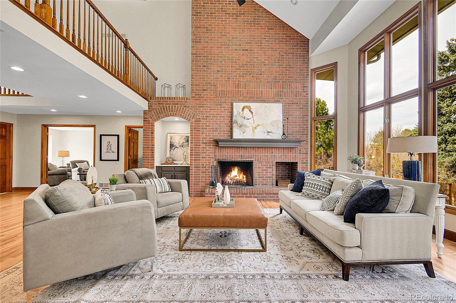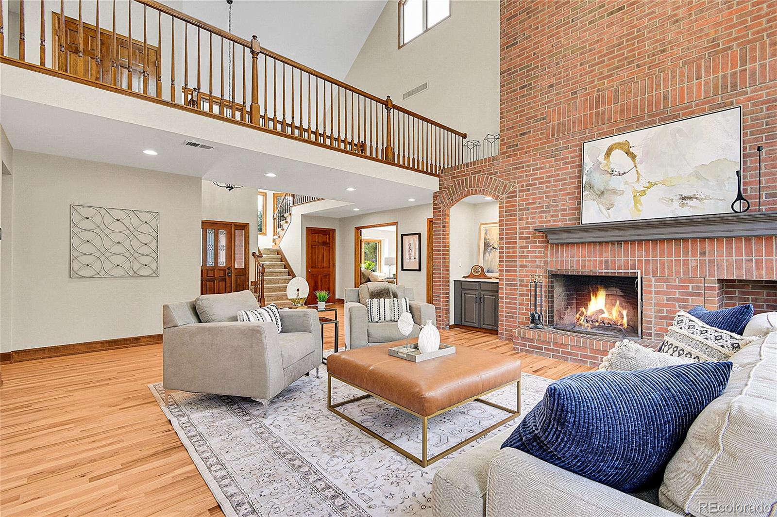 Rare in Colorado, this all four-sided brick home in coveted Polo Run announces its character before you step inside. A professionally designed front yard sets a tone of quiet distinction that carries throughout. Inside, a two-story family room anchored by a floor-to-ceiling brick fireplace creates an immediate sense of arrival. The home reveals itself room by room: a formal living room with French doors, a private study, a dining room with Mount Evans views, and a breakfast nook with backyard access. Abundant windows flood every room with natural light. The kitchen features quartz countertops on both the island and perimeter, a backsplash that rises to the ceiling, a custom vent hood cover, and a handmade Shaws of England farmhouse sink. Classic cherry cabinetry brings warmth and depth. Hardwood floors have been extended and refinished. New carpet, fresh paint, all-new baseboards on the upper level, and updated lighting give the entire home a clean, curated palette. The primary suite is a sanctuary. A custom barn door opens to a completely reimagined bathroom: freestanding soaking tub, expanded shower, Thomasville vanity, and gold fixtures. The upstairs bath has been equally transformed — Thomasville cabinetry, dual sinks, quartz countertops, gold faucets, and dramatic oversized tile carried all the way to the ceiling. The powder bath received a full refresh with quartz and gold fixtures throughout. The finished basement delivers flexibility — gas fireplace, private bedroom and bath, generous space for whatever the next chapter calls for. Radon abatement installed, foundation certified by GroundWorks. Nothing left to do here. Then there is Polo Run itself – the pool, the chili cook-offs, fall festivals, Fourth of July parades, trails and parks steps away. It is the kind of neighborhood families stay in for decades — and rarely leave. Professional-grade finishes, structural confidence, and a community that will earn its place in your family’s story.