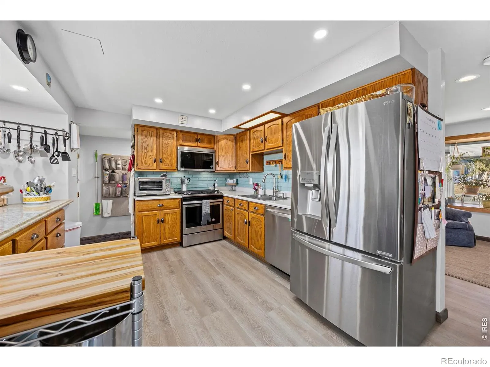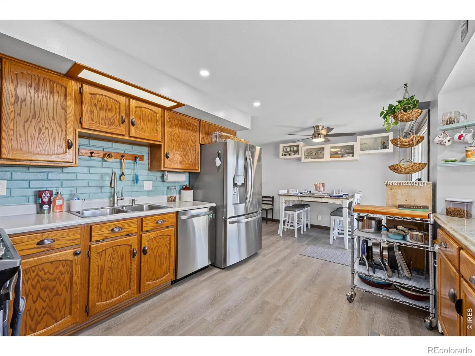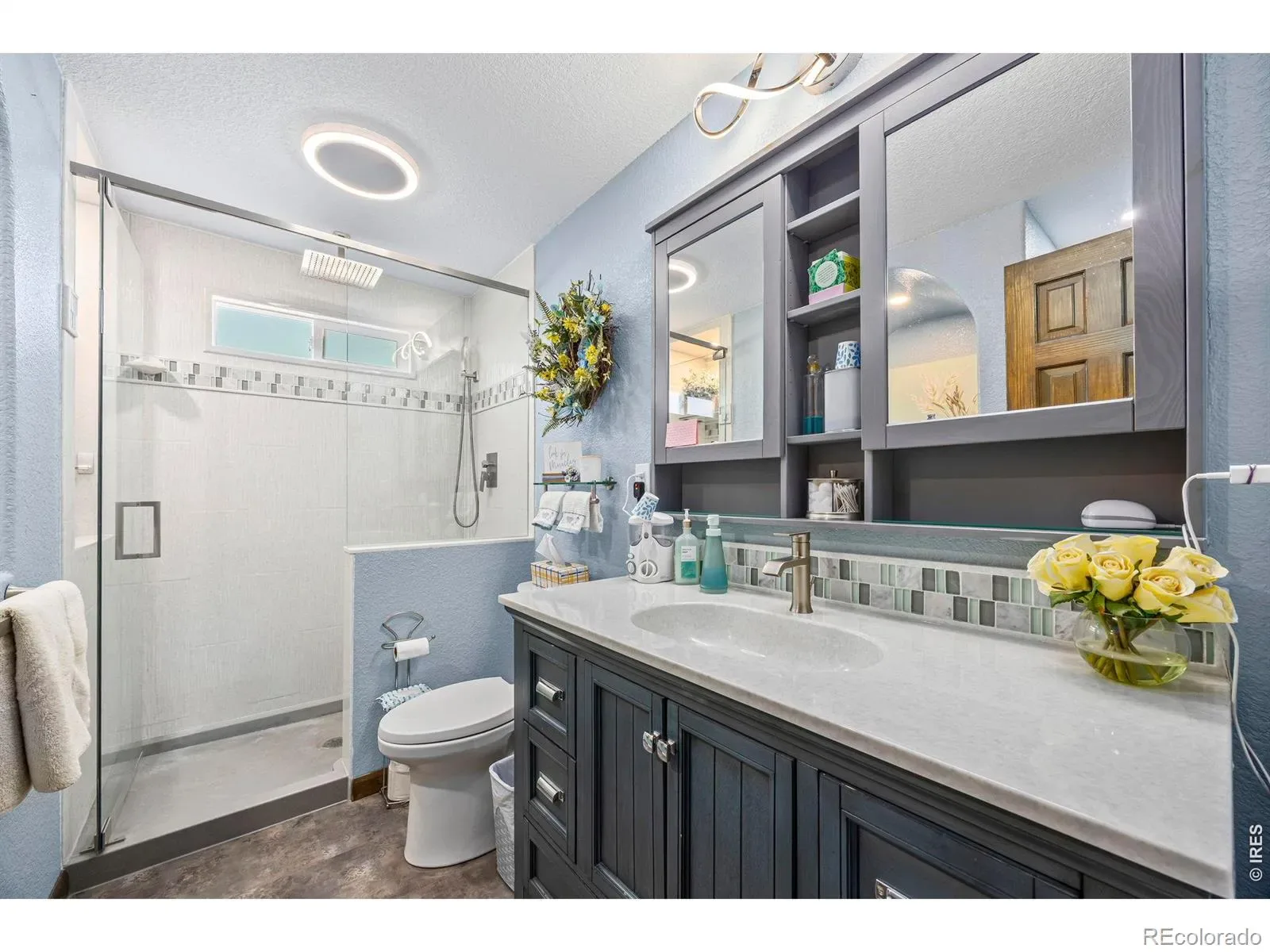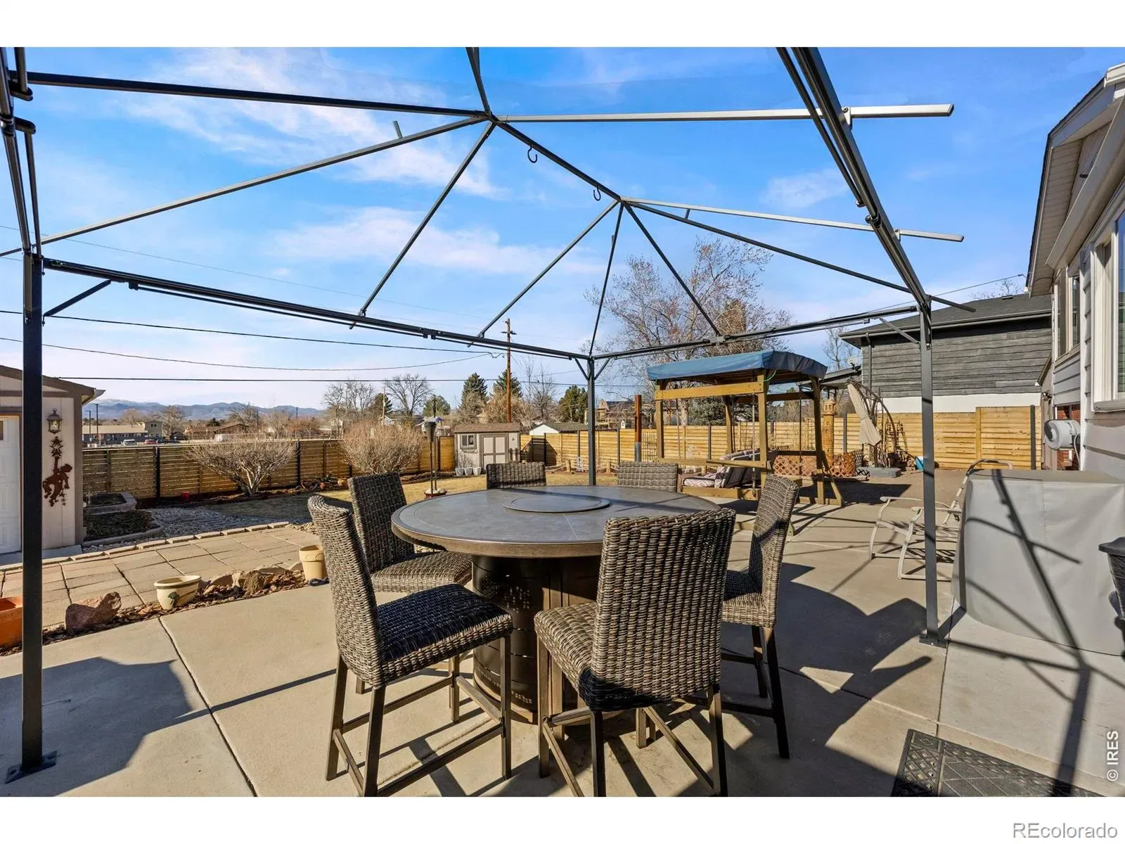 Welcome home to this beautifully updated four-level residence offering breathtaking, unobstructed mountain views of Mt. Blue Sky (formerly Mt. Evans) from the backyard. Built in 1967 and thoughtfully remodeled throughout, this 3-bedroom, 2-bath home blends timeless character with modern upgrades, including solar, on a spacious 10,106 sq ft lot with no rear neighbors, backing directly to a school field for added privacy and open views. The main level features the inviting kitchen and living room, creating a warm and functional entry space. Upstairs, you’ll find a generously expanded and renovated primary bedroom, a second bedroom or office, and a fully updated bathroom. The lower level offers a versatile open-concept living area complete with a gas fireplace, ideal for a family room or entertainment space, along with the third bedroom and a second newly built full bathroom. New flooring runs throughout the entire home, enhancing its fresh, cohesive feel. The lowest level includes an unfinished basement with a full laundry area and ample storage, offering future potential. Outside, the front yard was beautifully xeriscaped in 2025 for low-maintenance curb appeal, while the landscaped backyard provides the perfect setting to enjoy the stunning mountain backdrop. Additional highlights include a one-car attached garage with a recently re-poured concrete floor, plus an impressive 470 sq ft detached heated and air-conditioned garage or workshop, and an additional backyard storage shed. With 1,407 finished square feet and 1,816 total square feet including the basement, this home offers space, flexibility, and one of the area’s most impressive view corridors. A rare opportunity to own a move-in-ready home in Centennial with expansive mountain views, privacy, and extensive upgrades throughout.