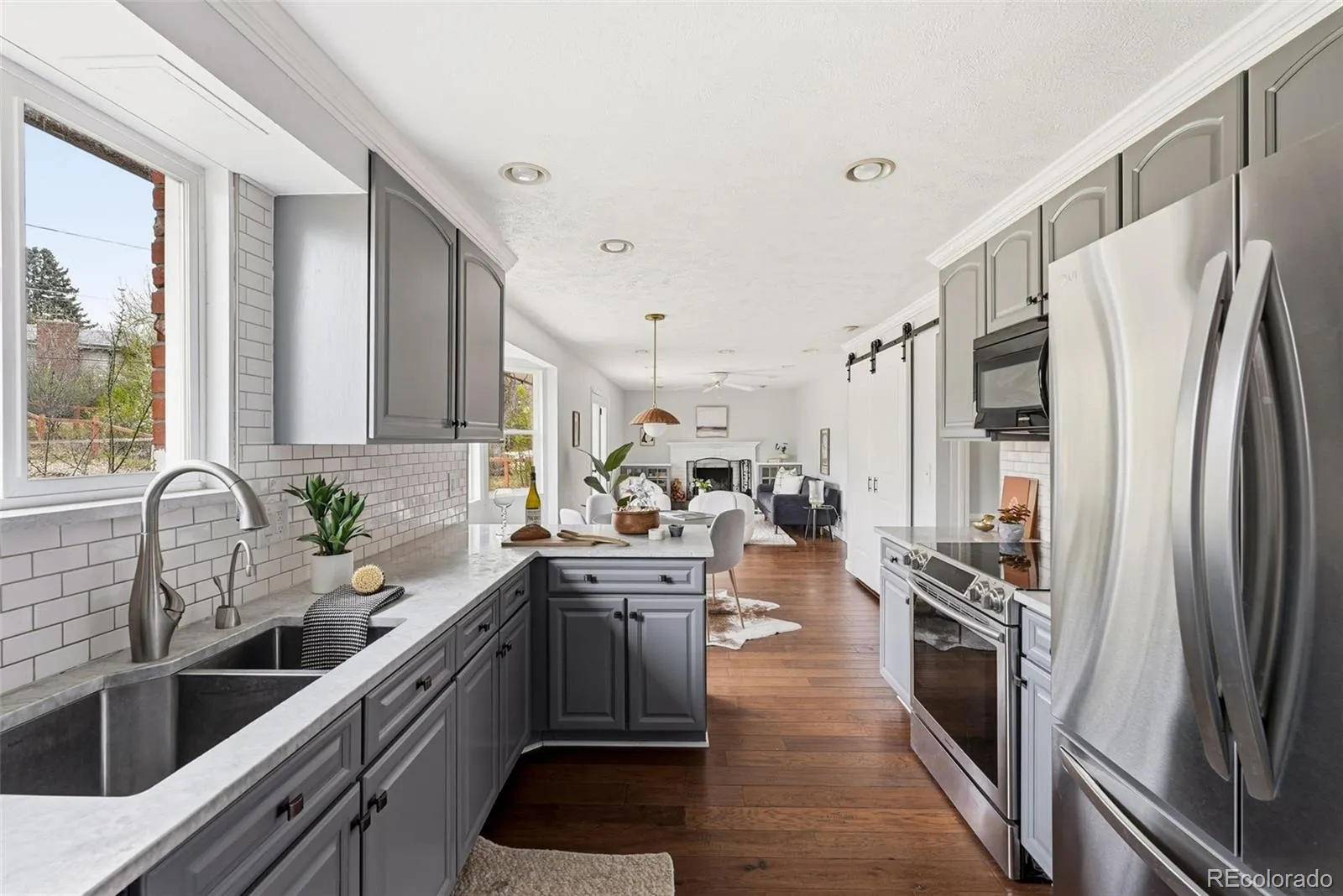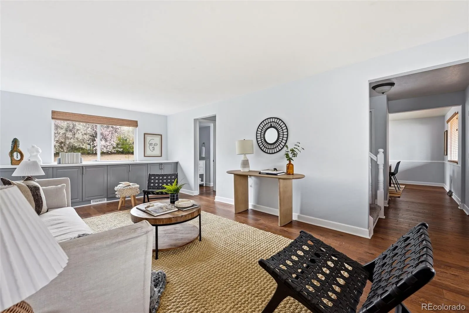 Welcome to this beautifully updated, move in ready two story home in the desirable Ridgeview Hills neighborhood of Centennial, served by Littleton Public Schools. A rare find at this price point, the home offers four bedrooms conveniently located on the upper level. The main floor features an open concept kitchen, eat in dining area, and family room, complemented by formal living and dining rooms, ideal for both everyday living and entertaining. Updates throughout include white marble countertops, wide plank wood floors, and stainless steel appliances. The family room is anchored by a charming wood burning fireplace. Upstairs, you will find all four bedrooms, including a spacious primary suite with en suite bathroom, plus an additional full bathroom serving the secondary bedrooms. The beautiful wide plank wood floors flow through the upper level as well and the stairs have brand new carpeting.