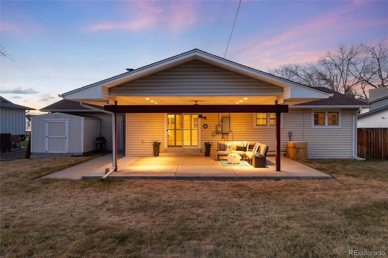 Outside, the backyard is level, usable, and neatly landscaped, with an 8×10 shed for added storage. The two-car garage offers backyard access, and additional gravel alongside the driveway provides flexible extra parking for vehicles, gear, or everyday use. With its cul-de-sac setting and location in the Cherry Creek School District, this home brings together comfort, function, and a location that makes everyday life easier.