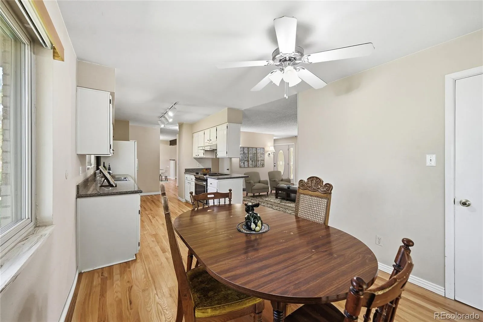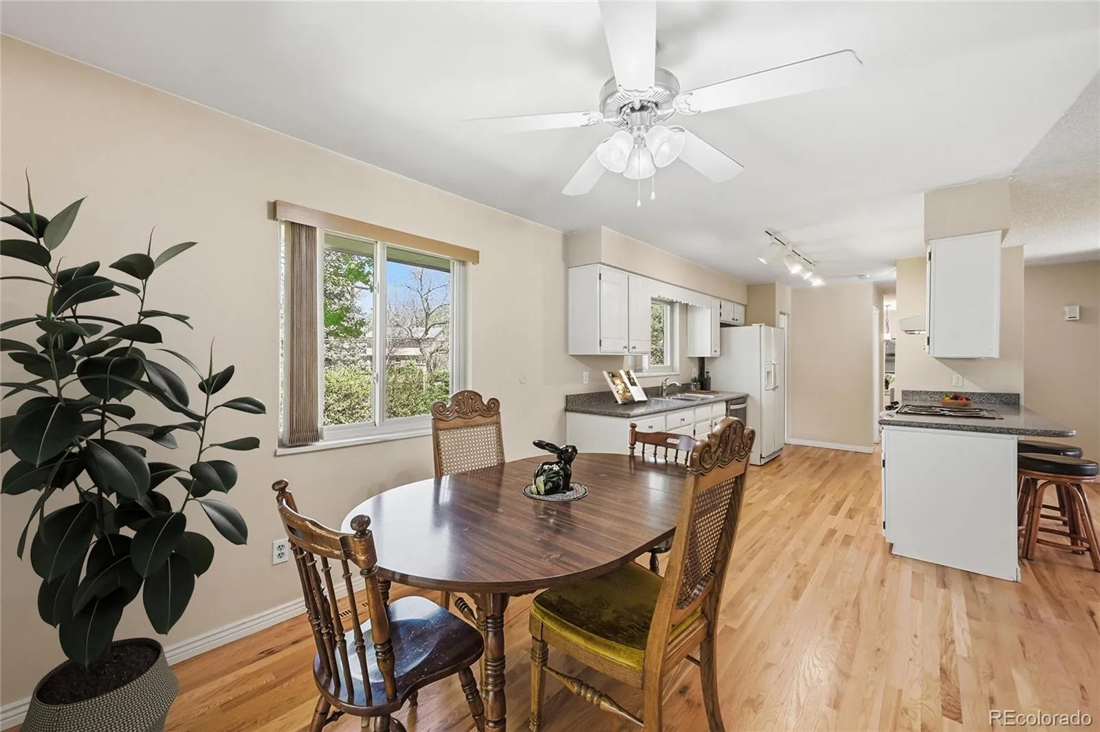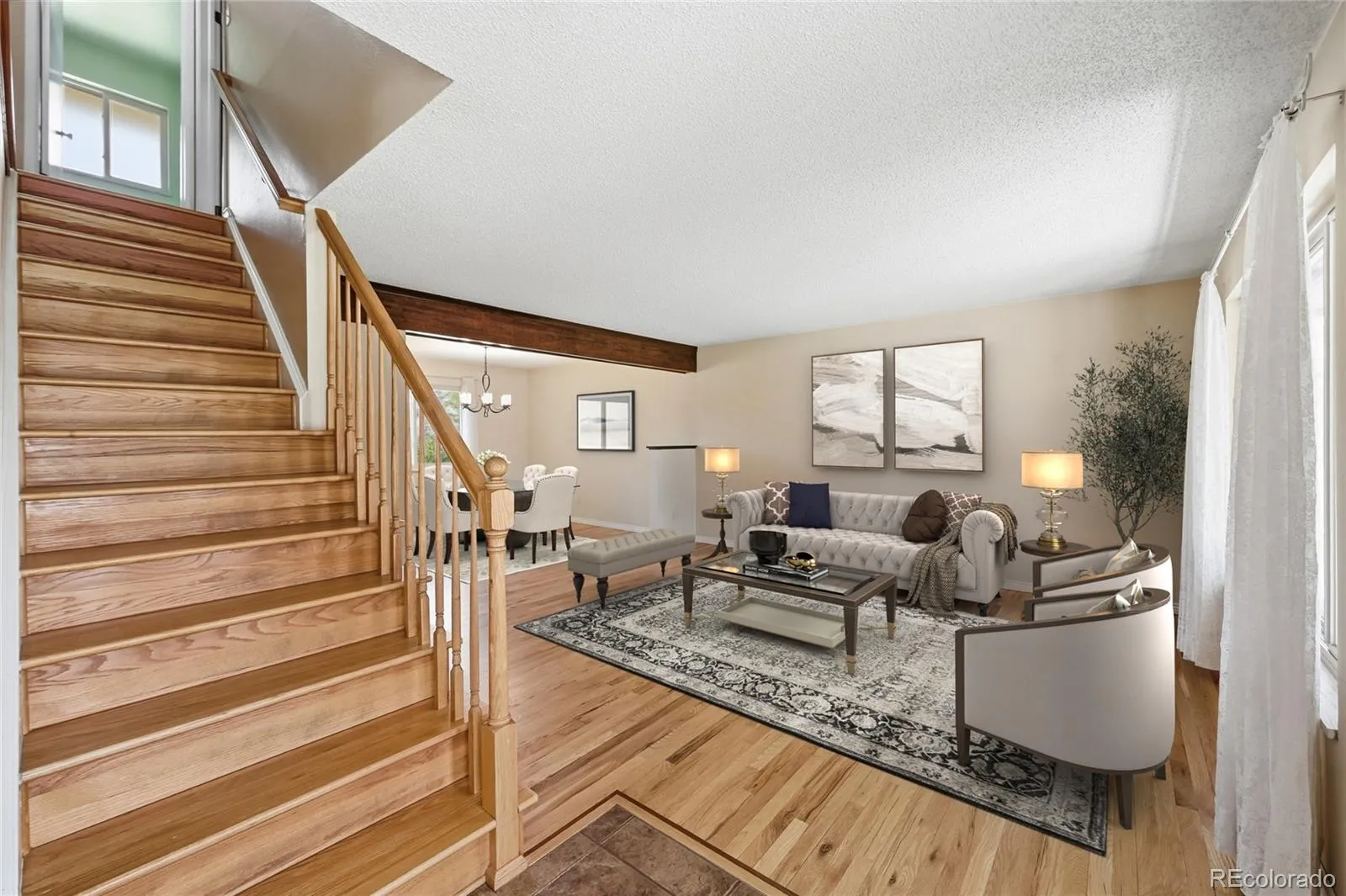 Welcome to Comfort, Space & Timeless Quality in the Heart of Centennial! Same owners over the past 47 years. Perfectly situated on a huge 9,845 sq ft south-facing lot, this beautifully maintained home offers the ideal blend of space, warmth, and thoughtful updates. Featuring 4 bedrooms, 3 bathrooms, over 3,100 total square feet, there’s room for everyone to live, relax, and entertain. From the moment you arrive, the covered front porch invites you in. Inside, you’ll immediately notice the gorgeous solid oak hardwood floors that flow throughout the main level, staircase, and even into the Primary Suite, creating a timeless and cohesive feel. The home offers spacious Living and Family Rooms, along with a formal dining area, providing flexibility for everyday living and entertaining. The large eat-in kitchen offers abundant space for cooking, gathering, and hosting. Upstairs, the Primary Suite provides comfort and privacy, while additional 3 bedrooms offer versatility for family, guests, or a home office. The Really Cool Vibe the finished basement gives off adds to fun & relaxation, plus expands your living space with an awesome Rec/Game Room, perfect for entertaining—complete with a pool table and accessories included. Step outside to enjoy the rear patio, mature trees, and established landscaping, creating a private outdoor retreat. Additional highlights include an oversized 2-car garage that will fit most supercab pickup trucks! High-end (Fairview Brand) updated windows throughout, including the basement. Newer roof and exterior paint. Basement includes 646 finished sqft (987 total sqft). A rare opportunity to own a well-cared-for home with classic finishes, generous space, and a prime Centennial location! Ideally located just minutes to the DTC, Centennial Airport, top-rated Cherry Creek Schools, Parks, Shopping, Entertainment areas, and Restaurants…approximately 20 minutes to Downtown Denver, offering exceptional convenience all around!!