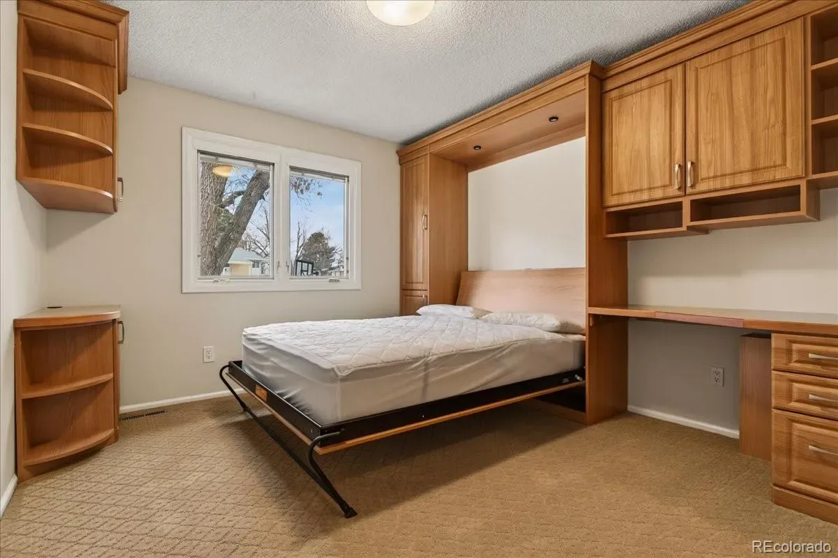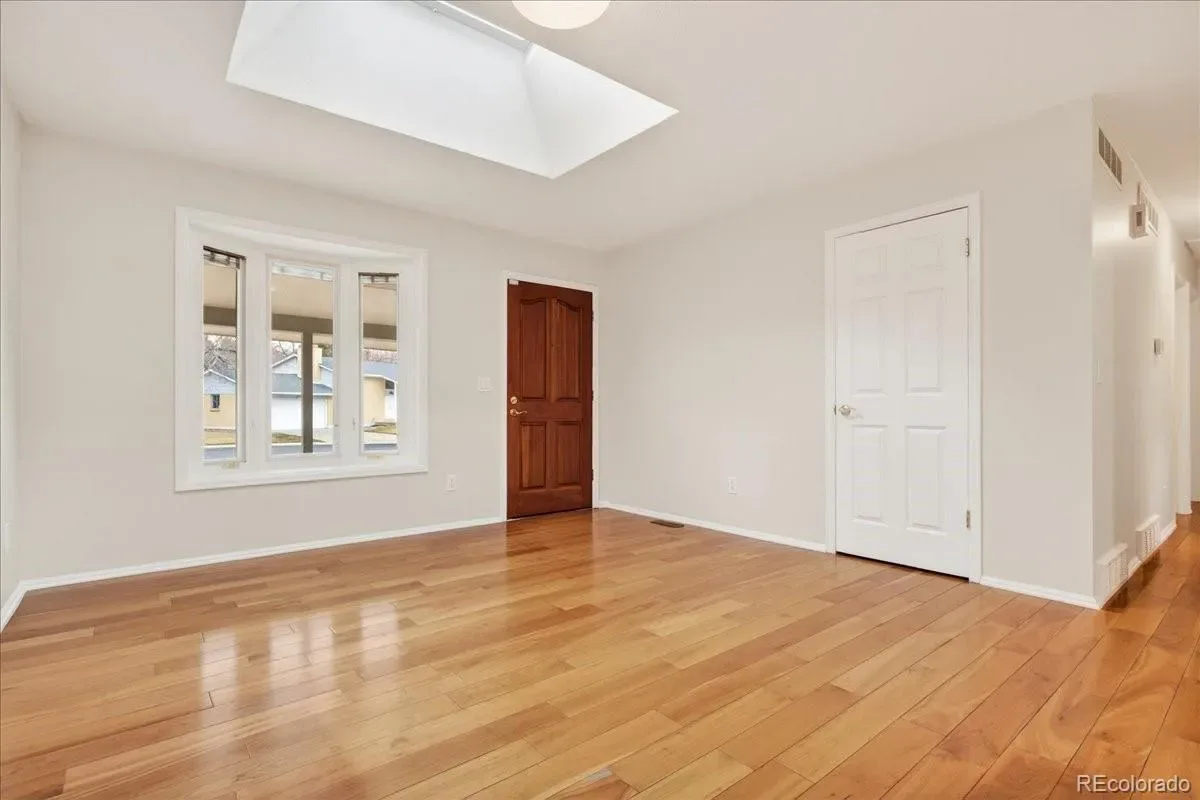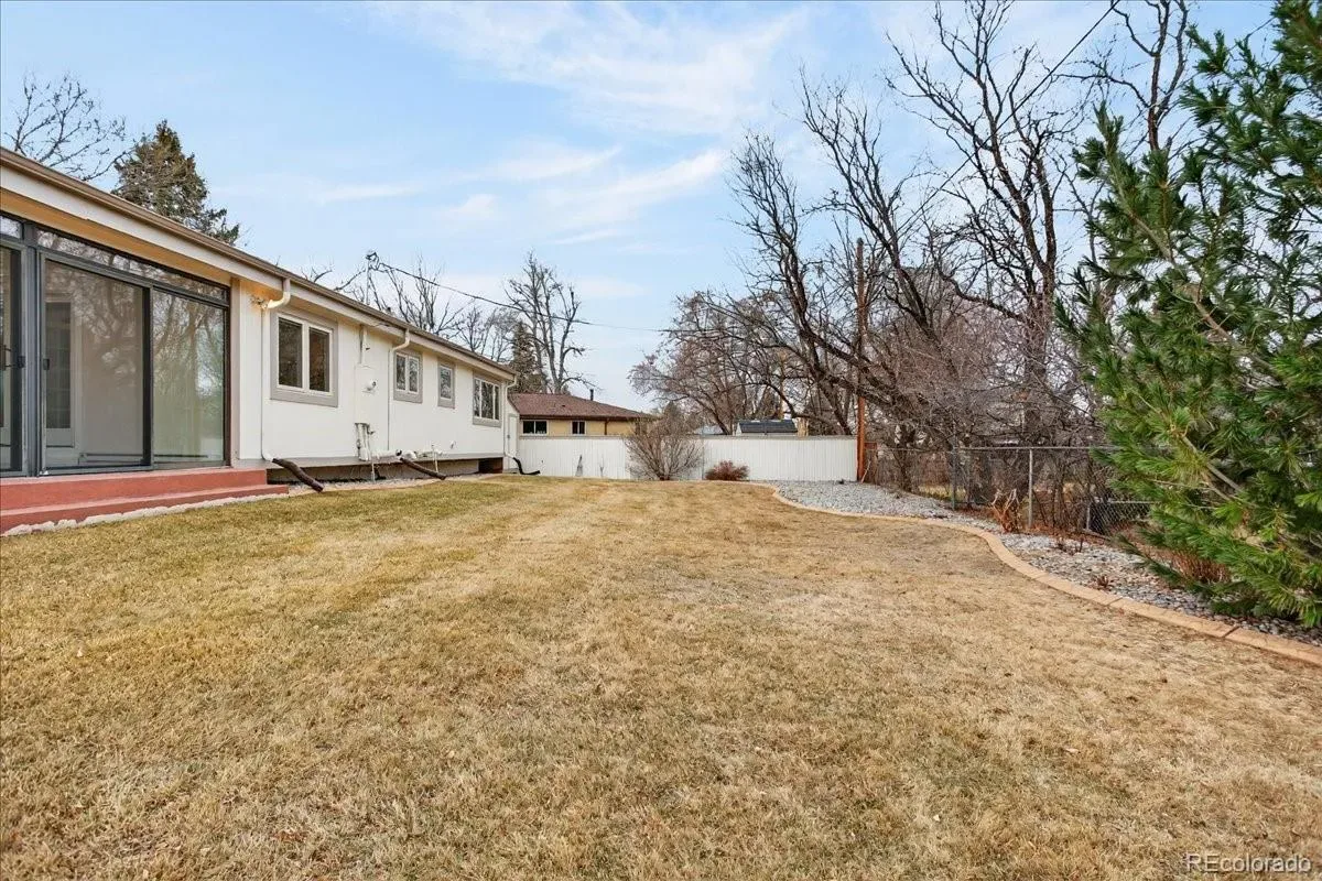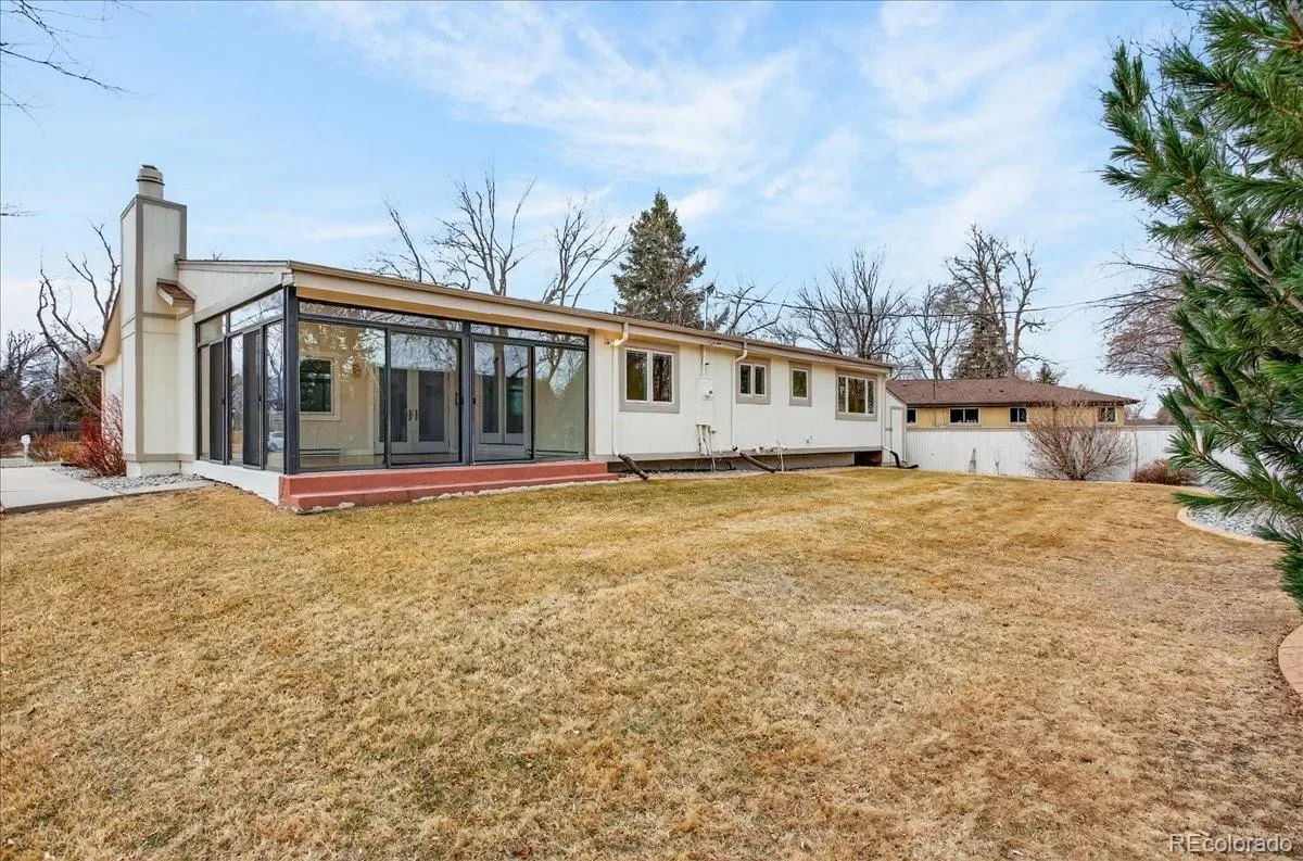 EXCELLENT 4 BED/3 BATH RANCH HOME IN WALNUT HILLS IN THE DESIRABLE CHERRY CREEK SCHOOL DISTRICT! Enjoy an ideal location close to trails & parks, Dry Creek shopping including Tony’s Market, walking distance to the elementary/middle schools. This diligently maintained home is highly energy efficient featuring a solar powered water heater, on demand water, Trane 94% efficient furnace/AC, triple pane Pella windows. Inside, you’ll find a bright open floorplan with the convenience of single-level living. Notice the premium cherrywood flooring, abundant natural light streaming from seven oversized skylights, three fitted with custom shades. The chef-inspired kitchen overlooks the backyard and showcases new appliances including a 5-burner gas range, large Corian island/counters, cherry cabinets, large pantry & built-in desk. Host great parties in the spacious sunroom with all new glass doors opening to the backyard, the perfect setting for year-round entertaining. The formal dining area includes an expansive granite serving counter with generous storage. Adjacent is the family room with gas fireplace. The sunny living room features a bay window. You’ll love the oversized main floor primary suite with walk-in closet & 3/4 bath with dual vanity. The secondary bedrooms feature custom Murphy beds with coordinating desks & cabinetry to maximize the space. The main floor guest bath offers a jetted tub. There is newer carpeting in all bedrooms and throughout the finished basement which provides additional living space: ample rec/entertainment room, bedroom, 3/4 bath & storage room. You have a utility shed with skylight, garage with epoxy coated floors & extensive storage. The backyard is low maintenance with mature landscaping & full sprinkler system. A wide street provides ample parking, and you’re welcomed by a friendly neighborhood. Nearby parks include Hunters Hill Park, Walnut Hills & Willow Creek Park. So many reasons to make this great home yours!