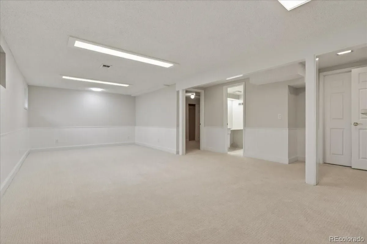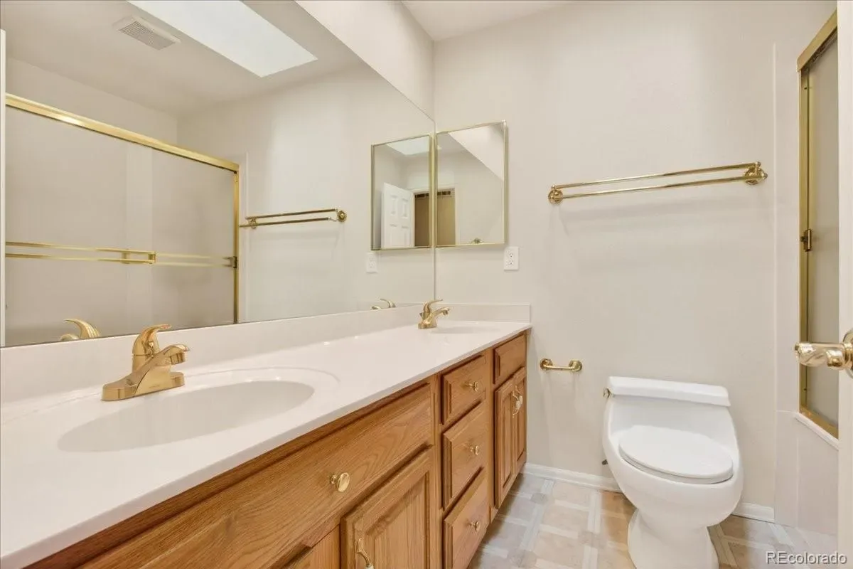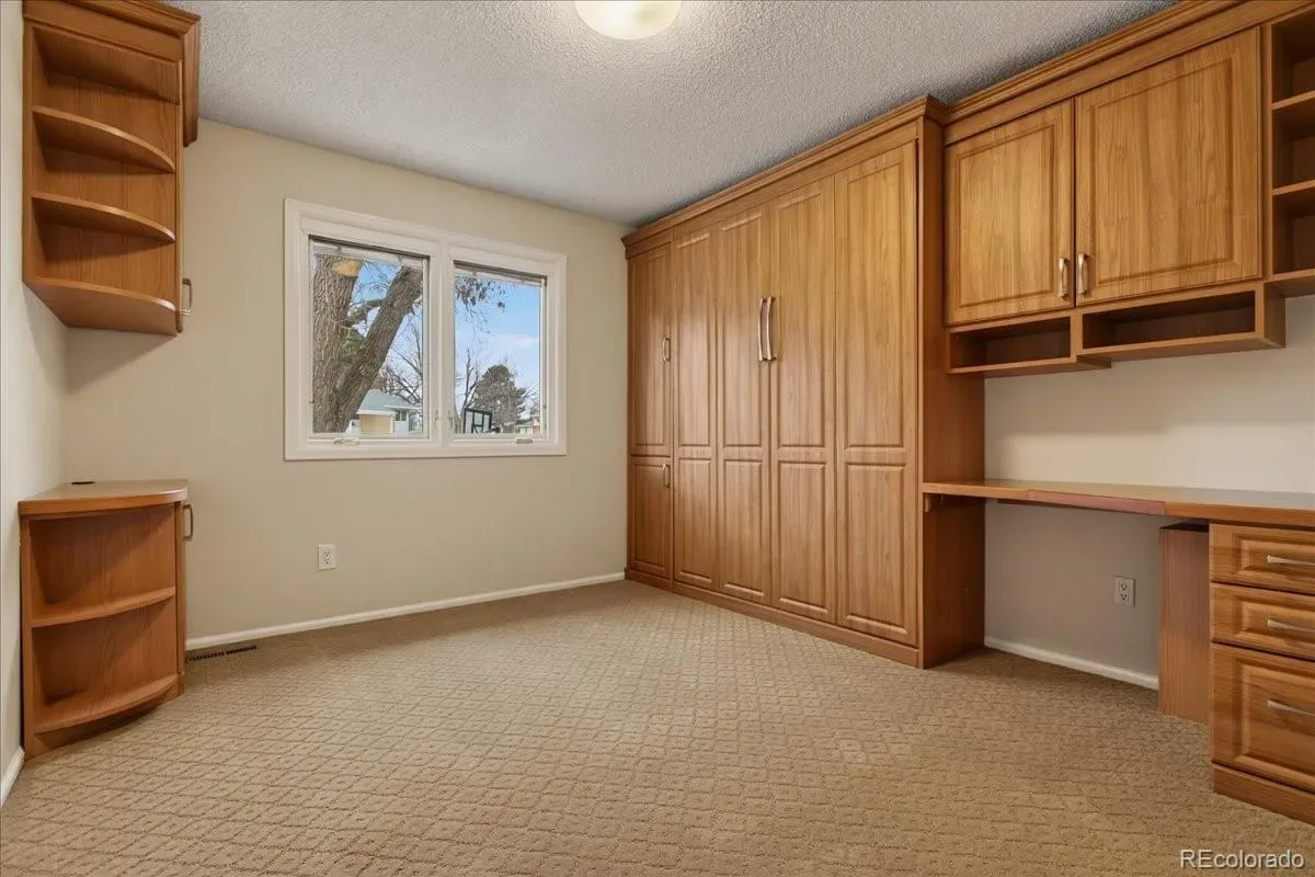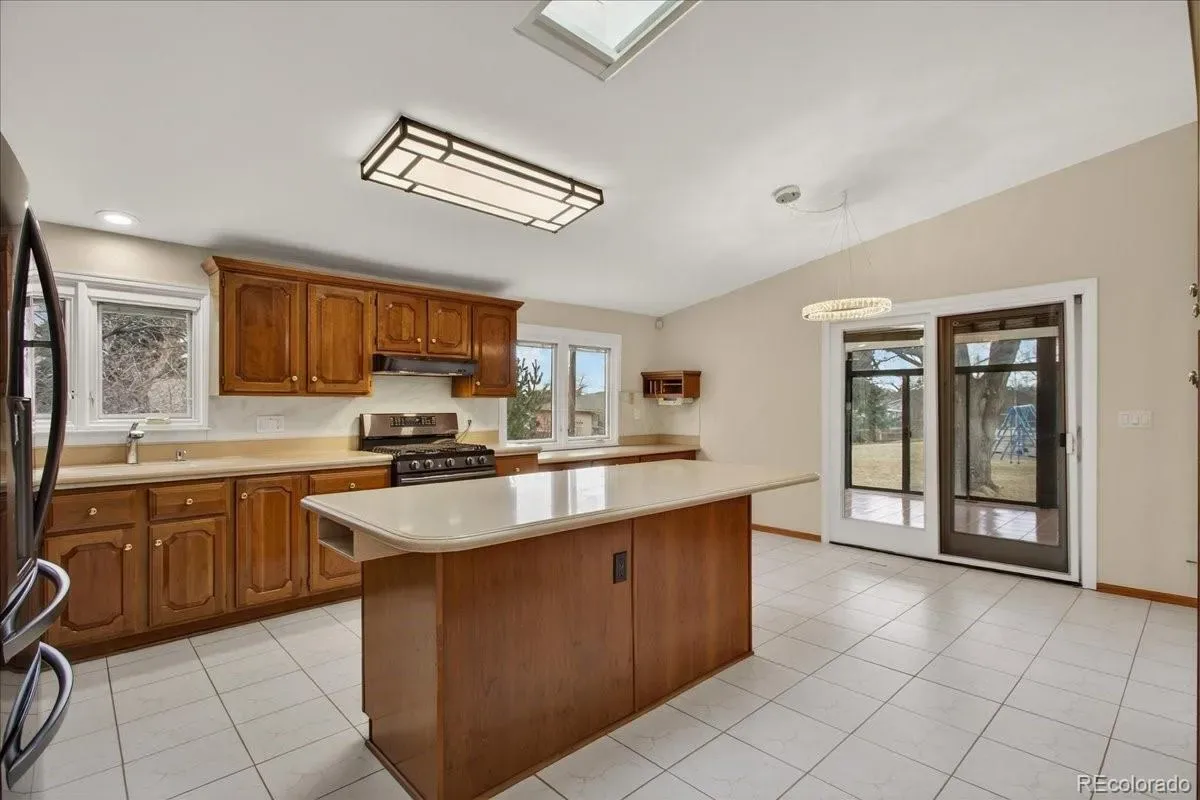 EXCELLENT 4 BED/3 BATH RANCH HOME IN WALNUT HILLS IN THE DESIRABLE CHERRY CREEK SCHOOL DISTRICT! Enjoy an ideal location close to trails & parks, Dry Creek shopping including Tony’s Market, walking distance to the elementary/middle schools. This diligently maintained home is highly energy efficient featuring a solar powered water heater, on demand water, Trane 94% efficient furnace/AC, triple pane Pella windows. Inside, you’ll find a bright open floorplan with the convenience of single-level living. Notice the premium cherrywood flooring, abundant natural light streaming from seven oversized skylights, three fitted with custom shades. The chef-inspired kitchen overlooks the backyard and showcases new appliances including a 5-burner gas range, large Corian island/counters, cherry cabinets, large pantry & built-in desk. Host great parties in the spacious sunroom with all new glass doors opening to the backyard, the perfect setting for year-round entertaining. The formal dining area includes an expansive granite serving counter with generous storage. Adjacent is the family room with gas fireplace. The sunny living room features a bay window. You’ll love the oversized main floor primary suite with walk-in closet & 3/4 bath with dual vanity. The secondary bedrooms feature custom Murphy beds with coordinating desks & cabinetry to maximize the space. The main floor guest bath offers a jetted tub. There is newer carpeting in all bedrooms and throughout the finished basement which provides additional living space: ample rec/entertainment room, bedroom, 3/4 bath & storage room. You have a utility shed with skylight, garage with epoxy coated floors & extensive storage. The backyard is low maintenance with mature landscaping & full sprinkler system. A wide street provides ample parking, and you’re welcomed by a friendly neighborhood. Nearby parks include Hunters Hill Park, Walnut Hills & Willow Creek Park. So many reasons to make this great home yours!
