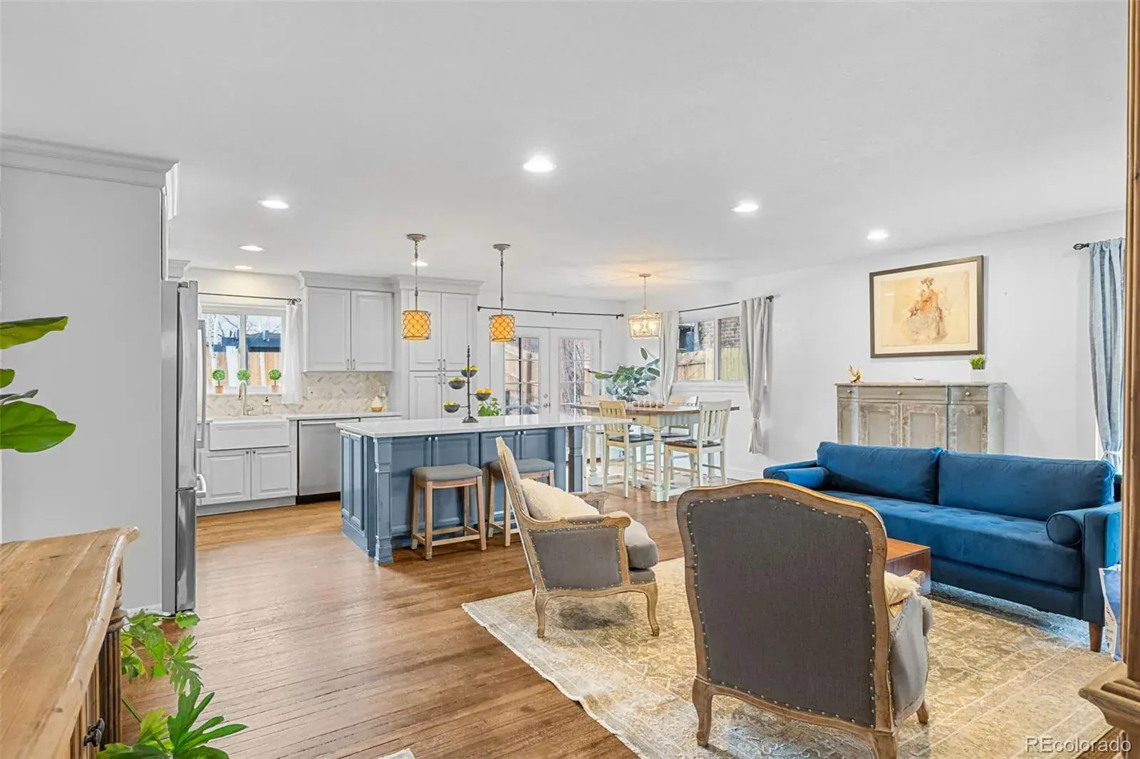 Welcome to an extraordinary residence on one of Denver’s most historic boulevards. Perfectly situated along the tree-lined Parkway in the heart of the coveted 7th Avenue Historic District, this impeccably updated home harmonizes classic architectural character with refined modern luxury, just moments from world-class parks and urban conveniences. From the moment you arrive, the home’s distinguished presence is undeniable, a stately brick façade framed by lush landscaping and sweeping parkway vistas. Inside, an open, sun-washed floor plan celebrates thoughtful design and superior craftsmanship, with classic hardwood floors, custom finishes, and an effortless flow for both grand entertaining and everyday living. The chef-caliber eat-in kitchen is a showcase of style and functionality, featuring high-end Bosch appliances, bespoke cabinetry, quartz countertops, and a generous island ideal for culinary pursuits. Expansive French doors open to a private flagstone patio extending your living space outdoors, perfect for al fresco dining, quiet mornings with coffee, or evenings soaking in the salt-water hot tub. Retreat to the main-floor primary suite, a rare offering in this era of home, complete with a luxurious ensuite bath and walk-in closet. The second bedroom is bright and versatile. A nearby updated bath features clean, modern finishes and a refined feel. The finished lower level adds an expansive living area, ideal for guest quarters, home office, or media lounge, with abundant storage and direct exterior access. All of this is perfectly positioned within one of Denver’s most prestigious historic landscapes, where architectural legacy, leafy parkways, and an unmatched central location deliver a lifestyle of distinction. This home delivers instant curb appeal, move-in readiness, and unbeatable access to shops, parks, transit, and city living. Experience refined living at its finest, a rare opportunity to own a truly exceptional Parkway residence.