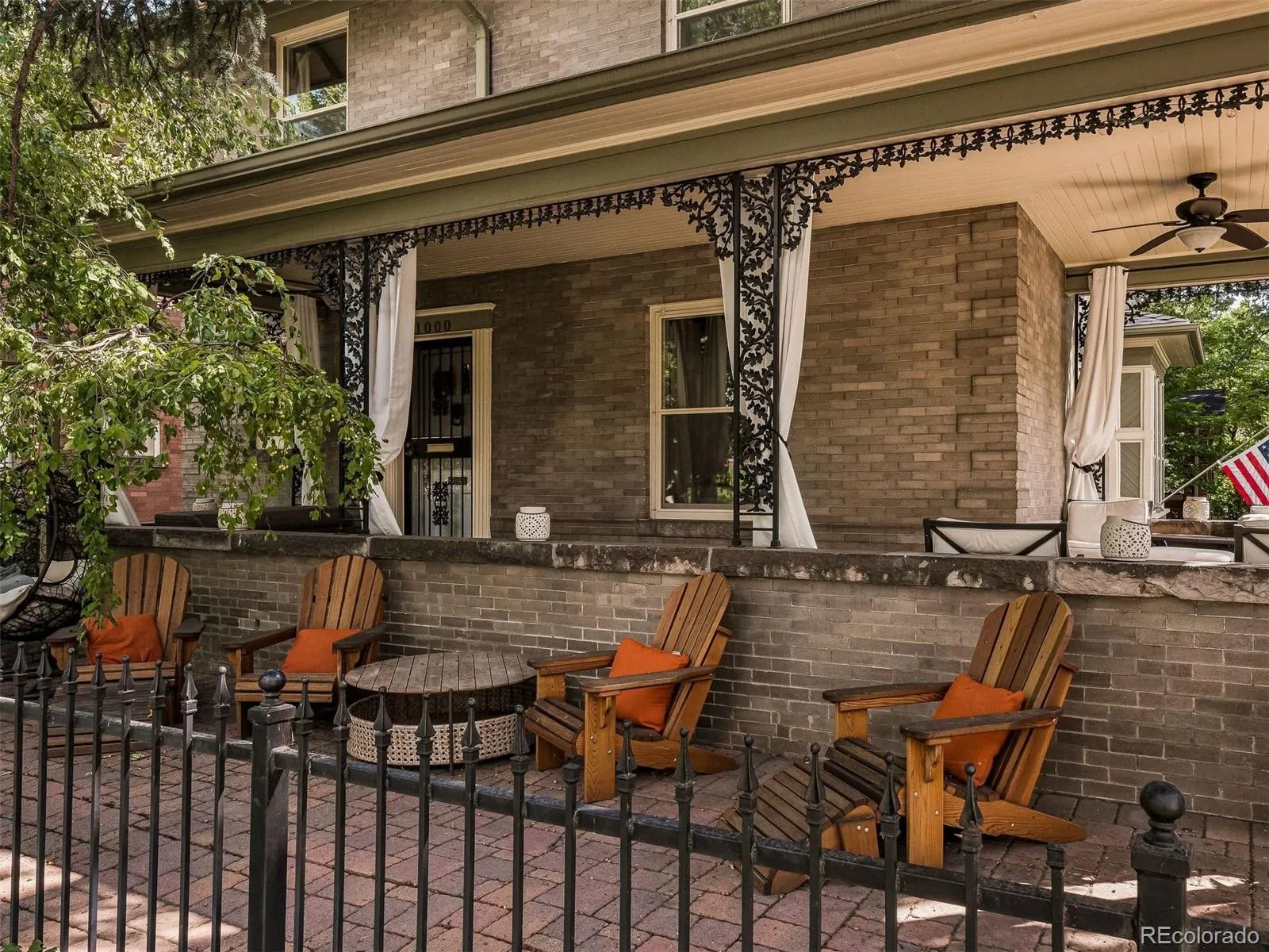 Positioned on a prominent corner along iconic 7th Avenue, this distinguished Denver Square blends timeless architecture with thoughtful updates designed for modern living. A gracious wraparound porch defines the façade, offering a welcoming presence and extending the home’s living space outdoors.