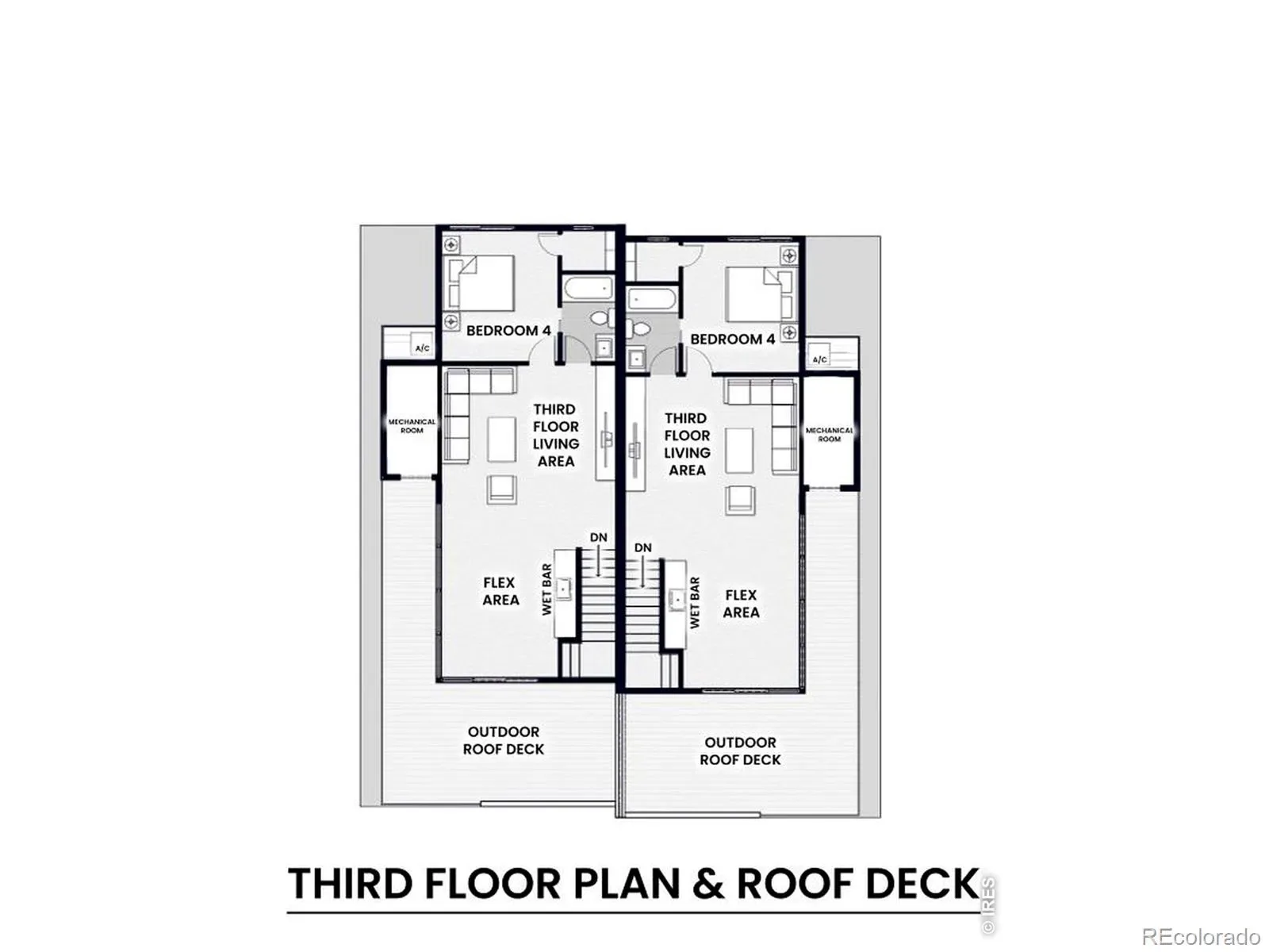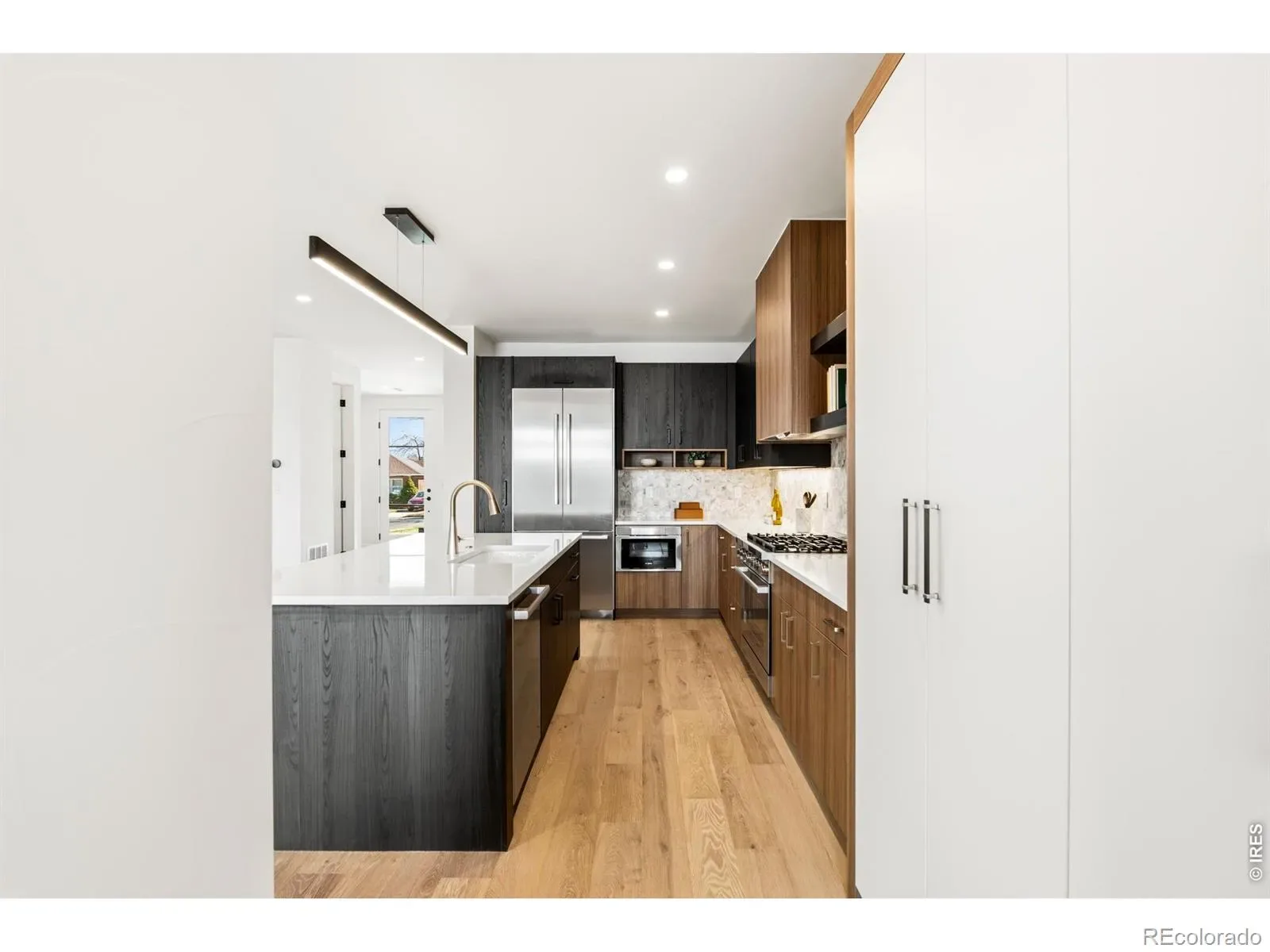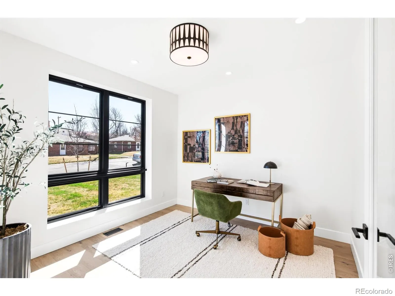 This bright and modern duplex is an entertainer’s dream with an extra-wide footprint that lives like a spacious single-family home. Engineered wood floors ground the main level, where a dedicted office sits behind French doors. Andersen dual-pane windows wash each space in generous natural light, illuminating the functional layout. At the heart of the home is a chef’s kitchen with Bosch appliances and custom cabinets. Among the home’s private escapes is a primary suite that features a wet-room style bathroom with dual vanities and an oversized walk-in closet. Crowning this home is a flexible upper-level loft complete with private wraparound rooftop deck access, a full wet bar, and an additional en-suite bedroom that is versatile for an exercise area, media room, or another home office. Additional conveniences include a quick recovery tankless water heater, oversized garage with 14′ ceilings and EV-ready capabilities, and three distinct HVAC zones for each level. The unparalleled location places residents near 9+CO, parks, Cherry Creek, and an eclectic food scene.
