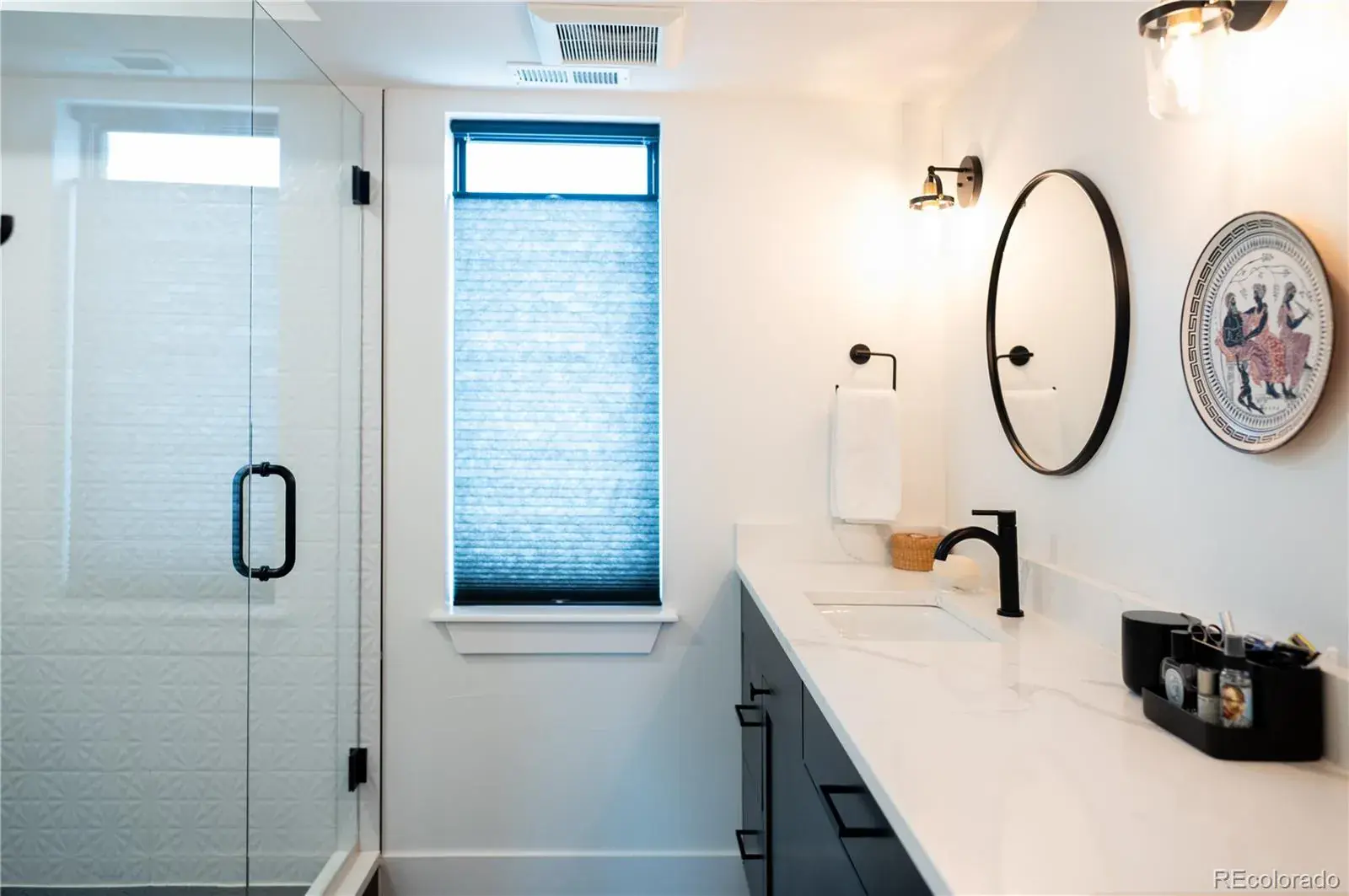 Don’t miss the rare opportunity to own a recently constructed and meticulously maintained half duplex in the heart of the historic Baker neighborhood. This building was carefully planned to blend in with the surrounding neighborhood while bringing all the amenities of a new build. Natural light pours in through the Marvin fiberglass windows. The main level features 3/4″ white oak hardwood floors throughout, a welcoming fireplace, and a custom kitchen that is an entertainers dream. The 2nd floor contains a spacious primary with a beautifully designed bathroom featuring a double shower. A spare bedroom on the same level contains an ensuite 3/4 bath. The top level has an amazing wet bar with tile imported from Spain. This entertaining space flows out to a massive rooftop patio that is engineered for a hot tub! A bedroom and full bath on this top level make this area live like a private suite. A private fenced in yard with an area for a grill make this another great space to entertain. This unit has a separate entrance from the front unit and provides a lot of privacy. The garage has 12′ ceilings and features a 9′ door to accommodate a wide range of vehicles. There is also a lofted storage area in the garage. Newly completed duplex next door – this neighborhood is increasing in value and popularity! This unit is walking distance to the Santa Fe arts district as well as all of the restaurants and bars on South Broadway. This is also just steps away from the newly announced Denver Broncos Burnham Yards Stadium Complex that will break ground in the near future.