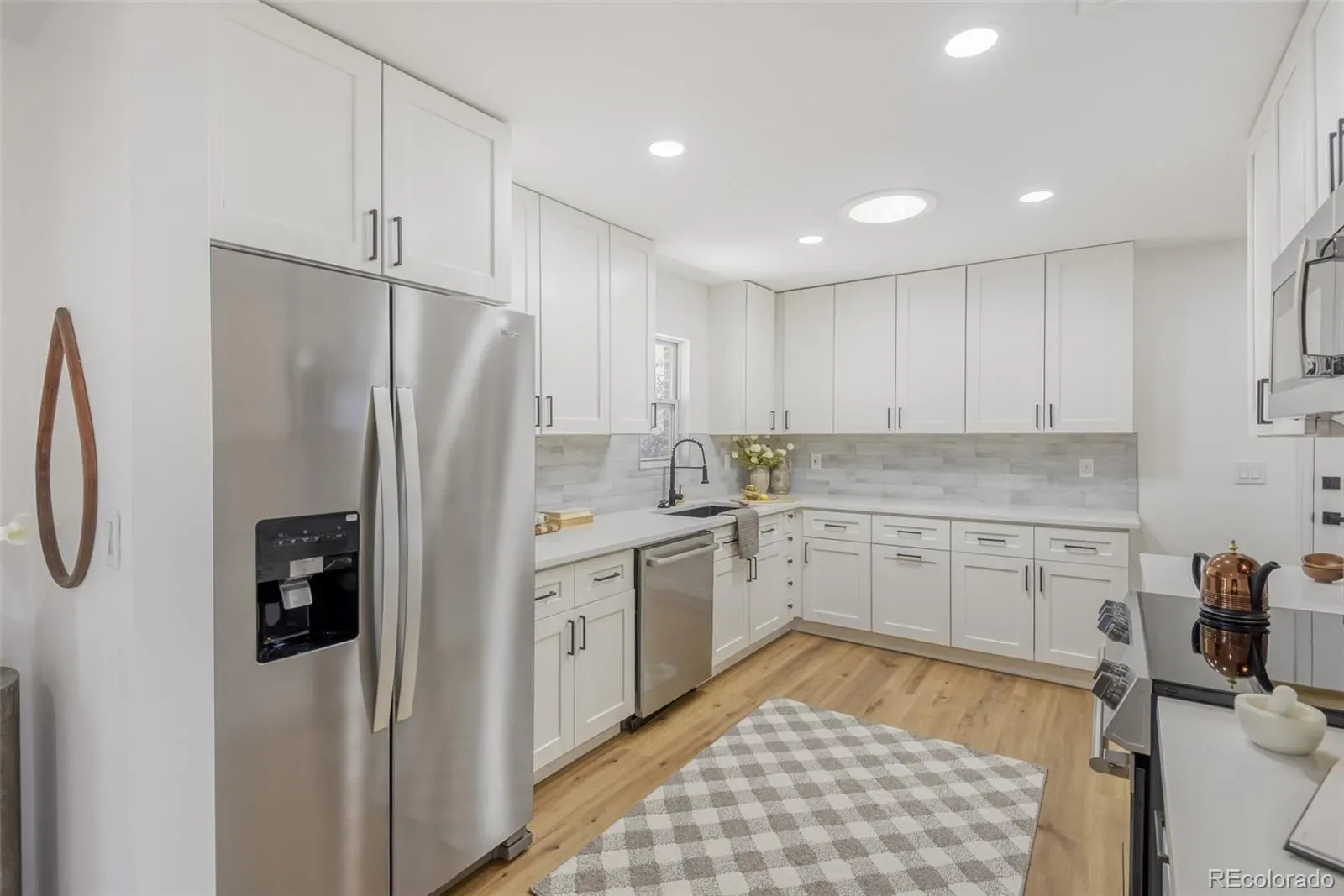 This is the one! Completely remodeled with a modern twist on the classic all brick ranch! All systems are new and updated, including furnace, central air, sewer line, hot water heater, roof & gutters, 200amp electric service & new electric panel. Not worrying about the systems allows you to enjoy your new kitchen! Sporting soft close white shaker cabinets with 5″ pulls, quartz countertops, high-end stainless-steel appliances and a giant country kitchen where you can take in the view of your private park like yard. All of this in a space that flows effortlessly. In one direction you have your dining room and sliding door to your covered patio, and in the other direction you step into your spacious living room with its bay window and recessed LED lighting. There are 3 completely new and remodeled bathrooms! Each one is unique and special. You have the main level full bath with its deep soaking tub and fun vanity, there is the main level in suite 3/4 bath off of the primary that you’ll be happy not to share, and a new 3/4 bath in the basement with a giant walk-in shower! You have three bedrooms on the main, a conforming bedroom in the basement, and an additional room that is an egress window away from conforming. A giant family room in the basement with new carpet offers unlimited opportunity. Very large laundry storage room with laminate wood floors rounds out the basement. The covered back patio adds lots of great three season space to this open floorplan. Resurfaced floor in the oversized two car garage. The list of details goes on and on! Adjacent to Bible Park, the Highline Canal, shopping, public transit, etc. Easy access to I-25 and conveniently located between DTC and downtown. This one checks all the boxes! Bring your picky buyers, it won’t disappoint.