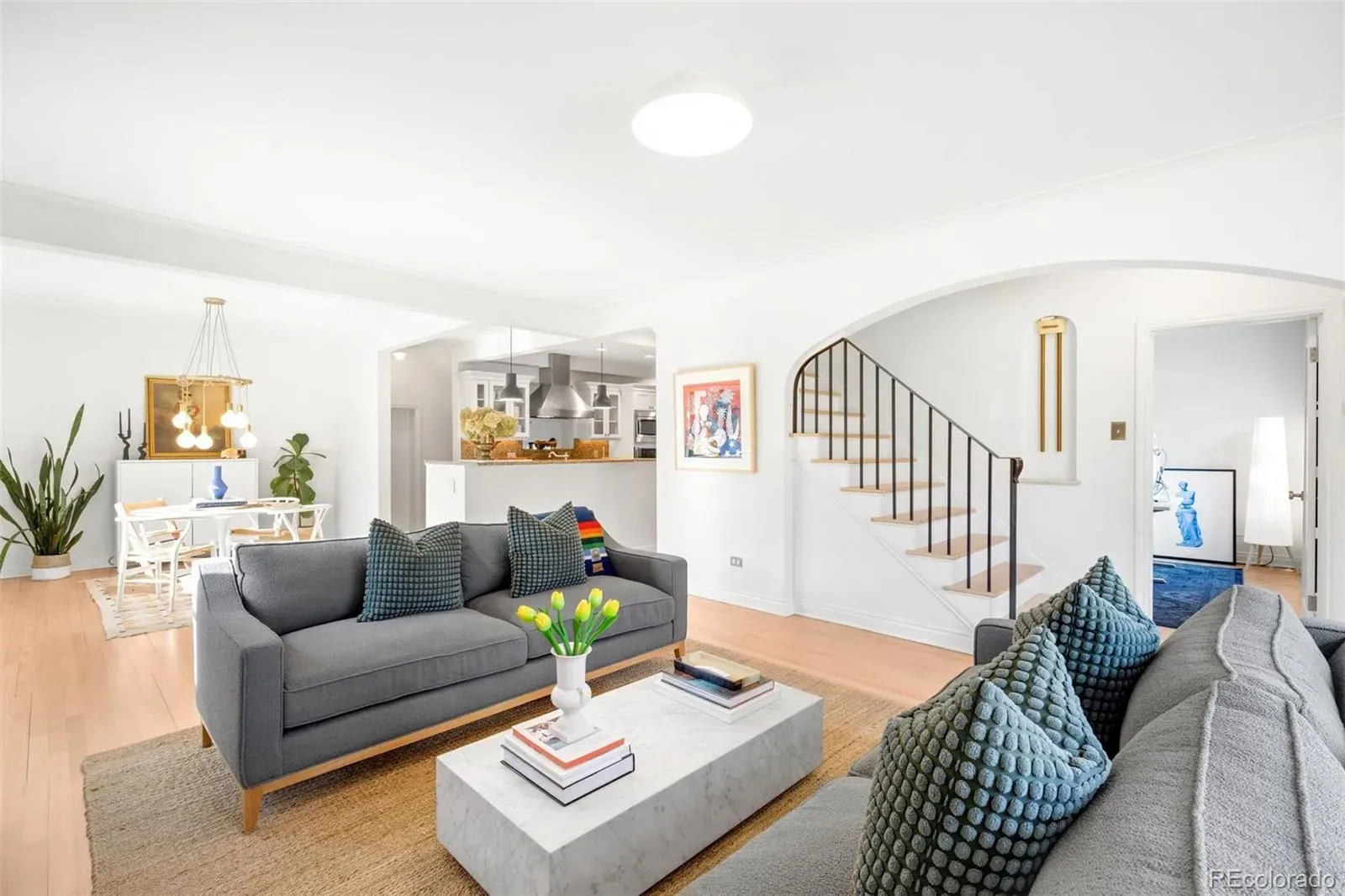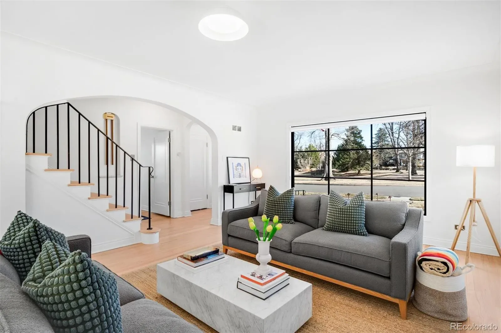 Curved, tree-lined streets radiate from one of Denver’s best-kept park secrets — Bonnie Brae Park — a charming oval green designed in 1920 to evoke a Scottish village. Directly across from the park, this west-facing 1941 Tudor captures sweeping green views through a custom 60” Marvin window, filling the home with warm afternoon light. With only three owners in its history, this residence blends timeless architecture with an exceptional location.