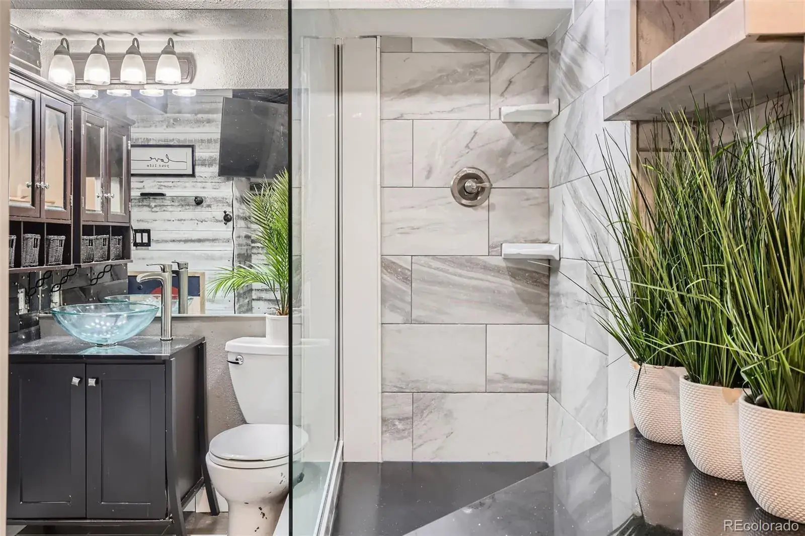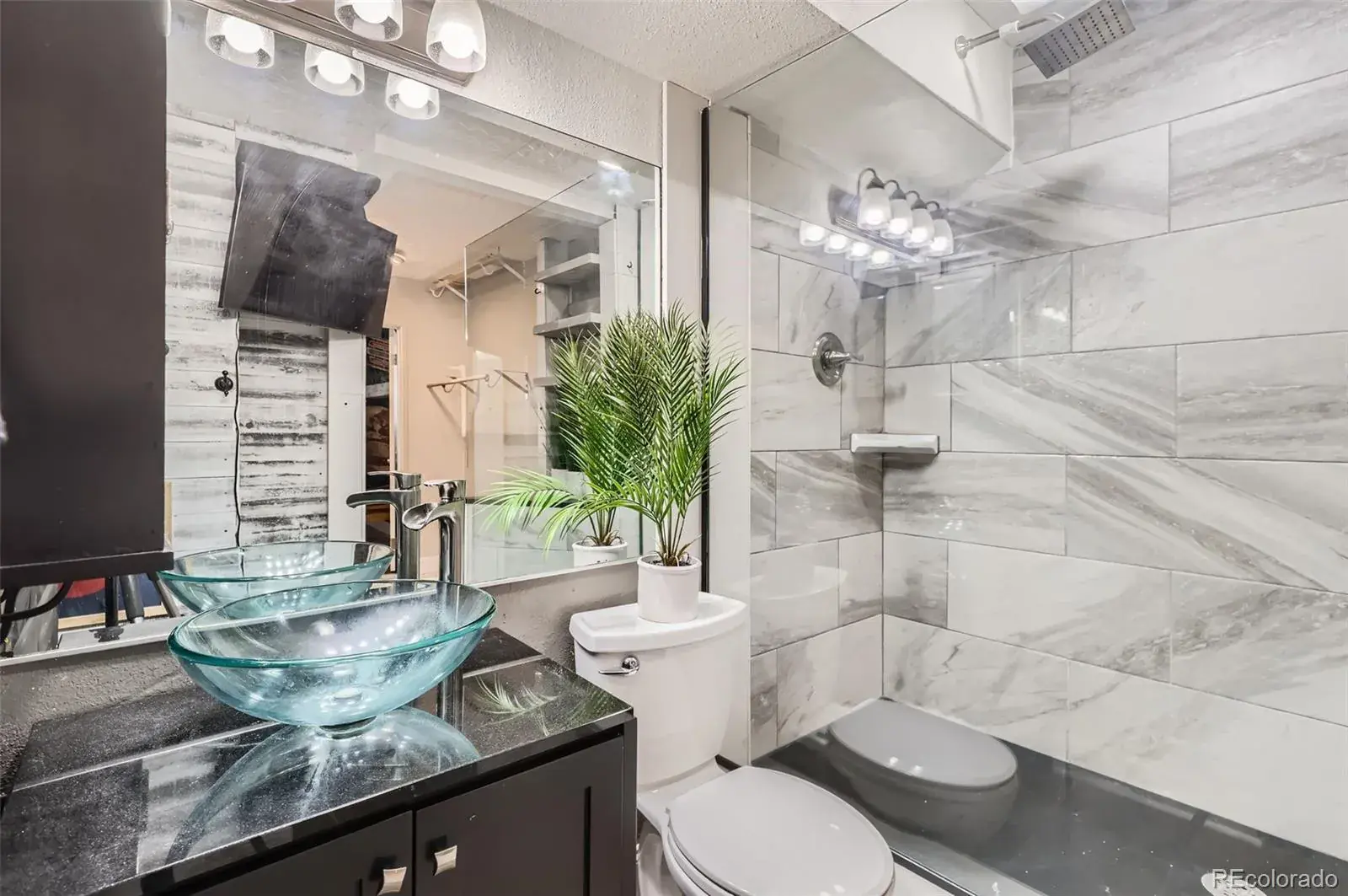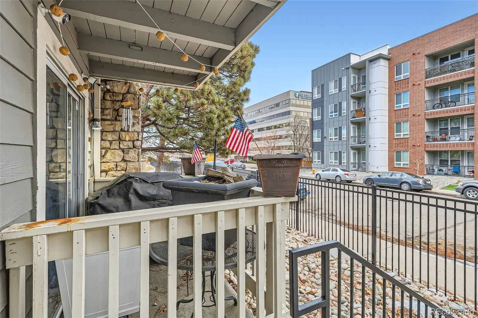 Experience modern, updated living in the heart of the Denver Tech Center! This first floor living refreshed condo offers the perfect blend of style, comfort, and convenience. Step inside to find light-filled living spaces featuring durable laminate hardwood floors and a cozy wood-burning fireplace, ideal for those crisp Colorado evenings. The open-concept layout flows seamlessly into the fantastic kitchen space, showcasing contemporary cabinetry, butcher block and laminate countertops, and upgraded appliances Whether cooking for friends or enjoying a quiet dinner, this kitchen is as functional as it is inviting. Your spacious primary suite is a true retreat with a smart ceiling fan, walk-in closet, and a stunningly renovated ensuite bath complete with designer finishes and an oversized walk-in shower. A dedicated laundry room adds ease to daily living, while the covered balcony offers a peaceful spot to enjoy your morning coffee or unwind at the end of the day. The community provides resort-style amenities including an outdoor pool, clubhouse, and tennis courts – all covered by a low HOA. With unbeatable proximity to the DTC, I-25, I-225, light rail, shopping, dining, and neighborhood parks, you’ll have everything you need right at your doorstep. This home checks every box for modern Denver living – updated, affordable, and centrally located. Don’t miss your opportunity to call it yours. Schedule your private showing today; this one won’t last long!