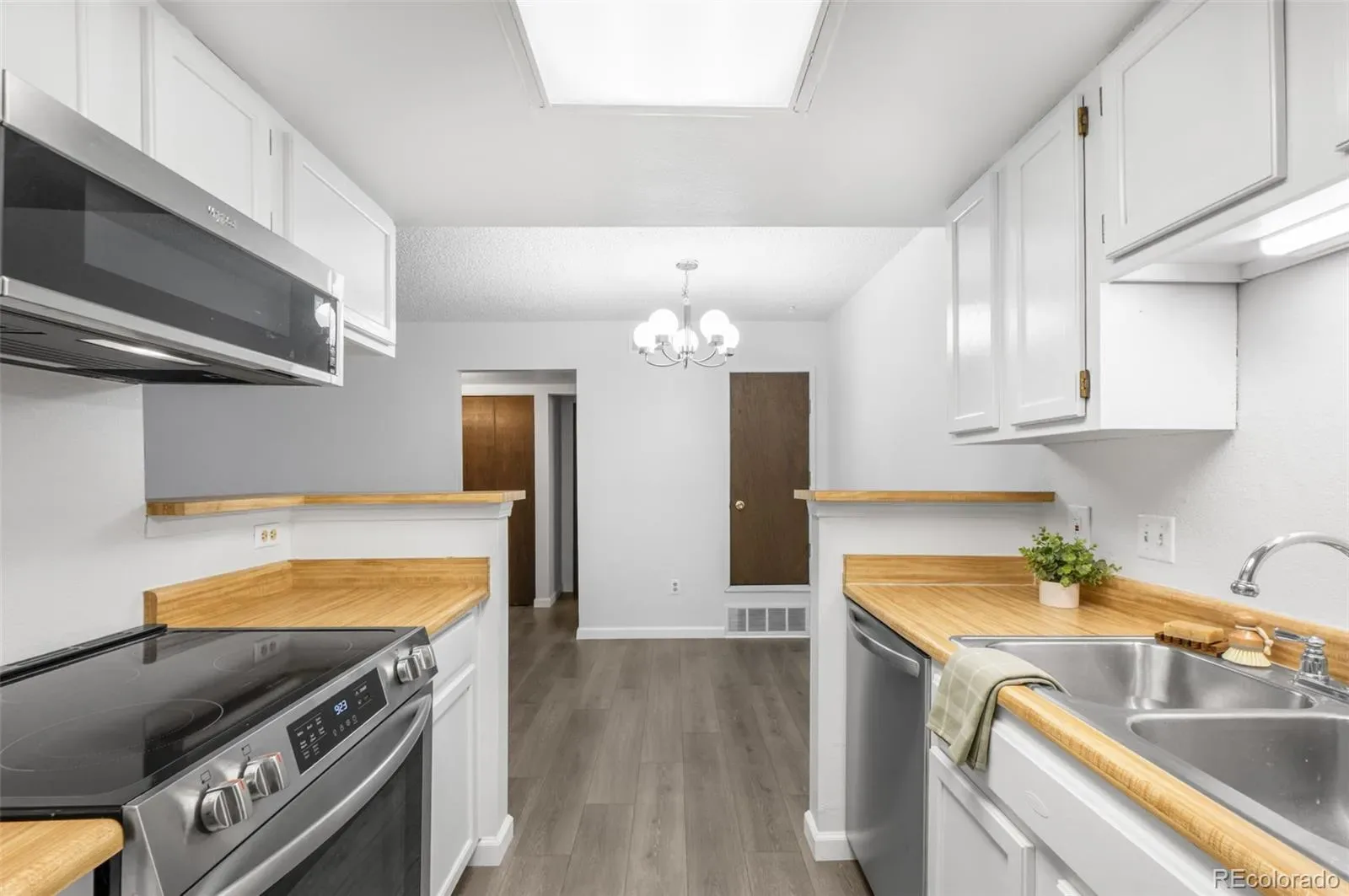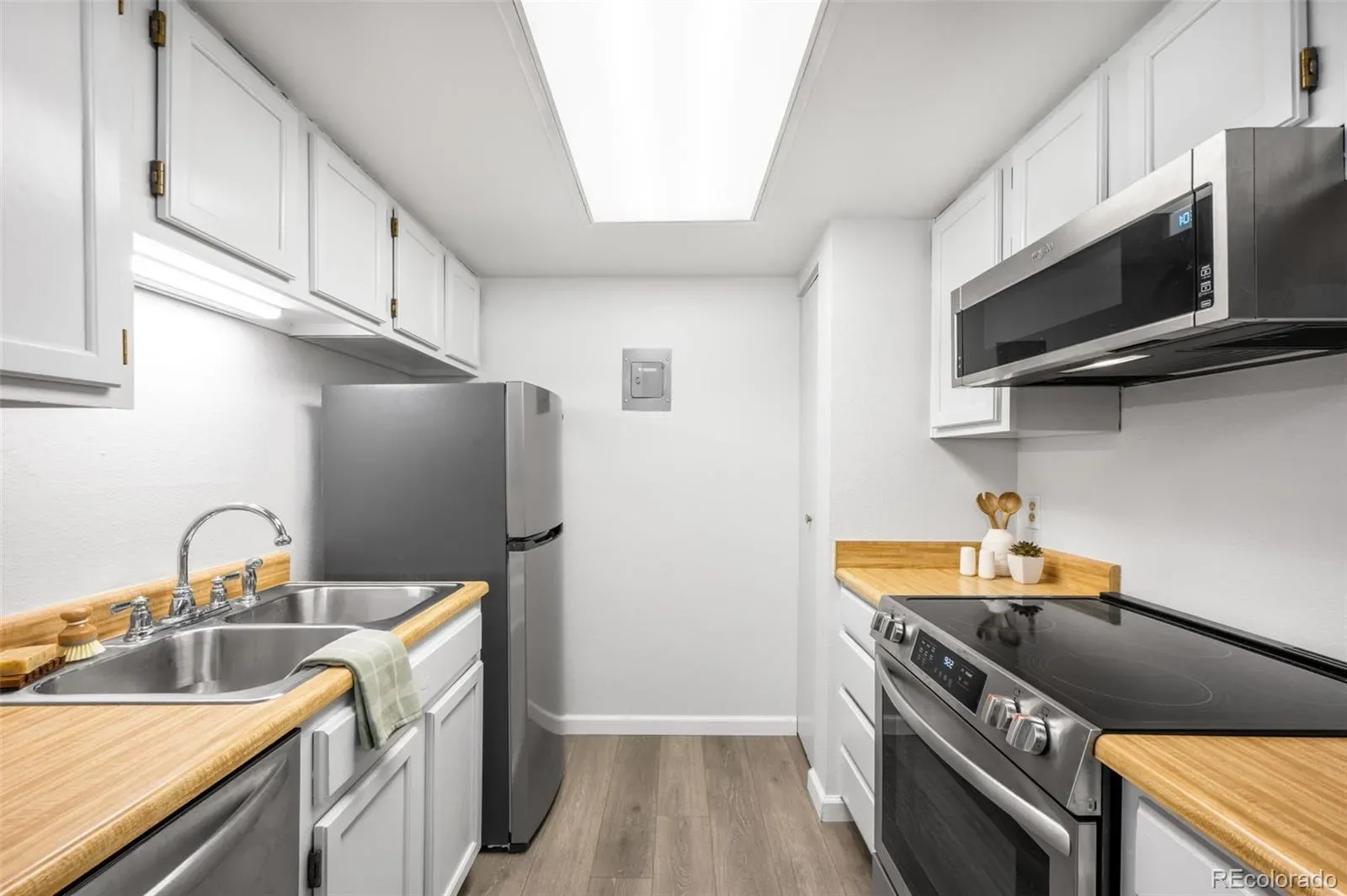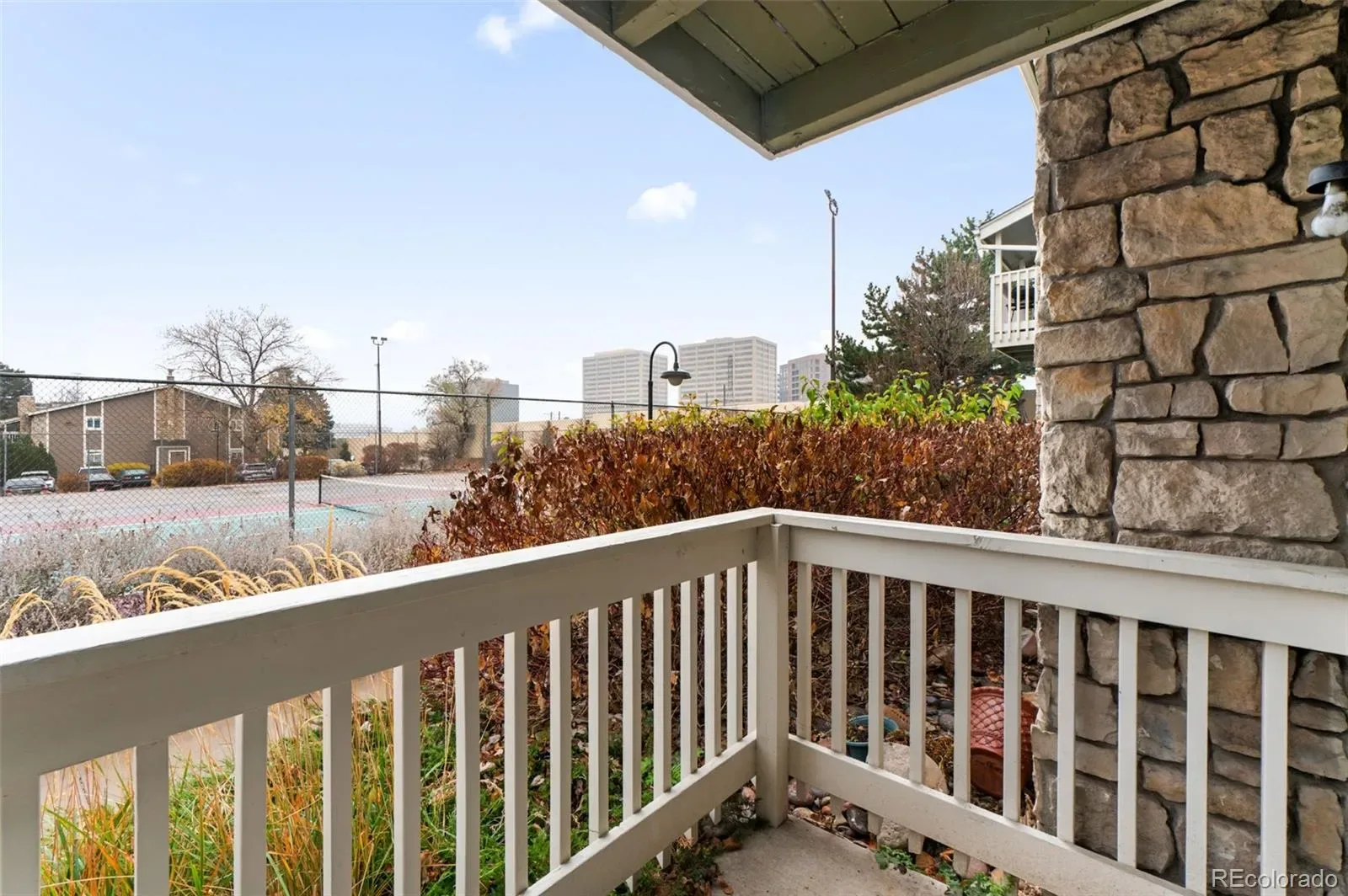 Everything you need is right at your fingertips in this perfectly located condo! Just minutes from DTC, Light Rail, major highways, and central Denver, this one-bedroom, one-bath home combines convenience, comfort, and value. Inside, you’ll love the open layout anchored by a cozy wood-burning fireplace. The living and dining areas flow effortlessly into the updated kitchen, featuring newer stainless steel appliances, fresh finishes, and a roomy pantry. Newer flooring, carpet, and paint throughout give the entire space a clean, modern vibe. The spacious bedroom includes a large walk-in closet, while the refreshed bathroom features a new vanity and fixtures. In-unit laundry adds everyday ease (and yes, the washer and dryer stay!). Enjoy peaceful views overlooking the tennis courts from one of the best locations in the community. The HOA takes care of all exterior maintenance and keeps the grounds beautifully maintained, plus you’ll have access to the community pool and tennis courts. Move-in ready and ideally situated. Come see why this condo is the perfect place to call home!