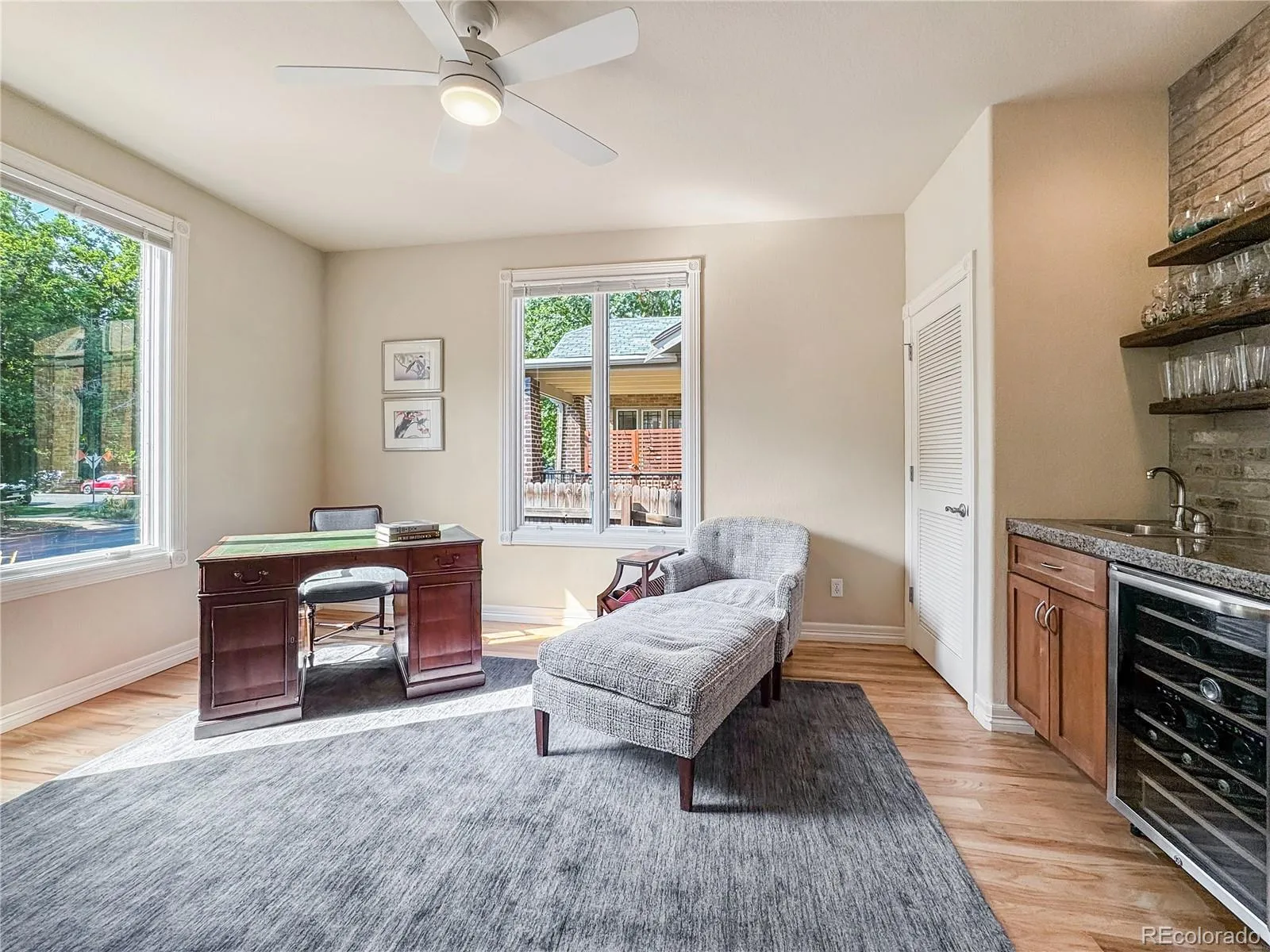 Set on a quiet, tree-lined block minutes from downtown Denver & East High School, this home offers the space, flow, & energy today’s buyer is searching for, standing out among new builds. Imagine being steps from City Park or coffee at a nearby café, then returning home to a light-filled open floorplan designed for modern living. Spanning 3,733 square feet across three levels, this home was built with flexibility in mind.Main floor features an inviting living room w/gas fireplace, soaring ceilings, & oversized windows that make entertaining effortless. A large kitchen w/counter seating and island, pantry, & stainless appliances connects seamlessly to dining & living areas. A main floor office which includes a wet bar and wine fridge supports hybrid or work-from-home needs w/out compromising your living space. Upstairs, 3bedrooms offer options for every stage of life. The primary suite is a retreat w/generous proportions& an en-suite bath, while secondary bedrooms accommodate guests, kids, or studio use. The open-to-below design adds architectural character & an airy feel. The finished lower level with high ceilings extends your lifestyle w/a full family room & second wet bar which includes a wine fridge&ice maker and fantastic wine display wall—perfect for entertaining friends.additional bedroom&bath make the basement ideal for guests or multigenerational living. Step outside to a private fenced yard and patio, where outdoor dining & summer evenings come naturally. 2car attached garage w/driveway that accommodates four extra cars is great for Jazz in the Park on Sunday evenings in the summer, adds convenience in a walkable neighborhood. The location places you near City Park golf course, Denver Zoo, Museum of Nature and Science, & top restaurants. Built in 2003&well maintained, this home balances timeless design w/modern function. 18owned solar panels convey so your electric bill will rarely exceed $20/month even in the height of summer.