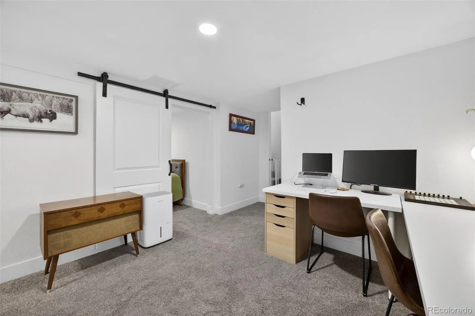 Each bathroom has been tastefully updated with contemporary tile, upgraded vanities, modern sinks, and refined fixtures. Additional improvements include new maintenance free roof and gutters, LED recessed lighting, fresh paint, newer carpet, vinyl windows, an updated HVAC and electrical system, and a striking decorative glass front door—every detail carefully chosen to elevate the space.