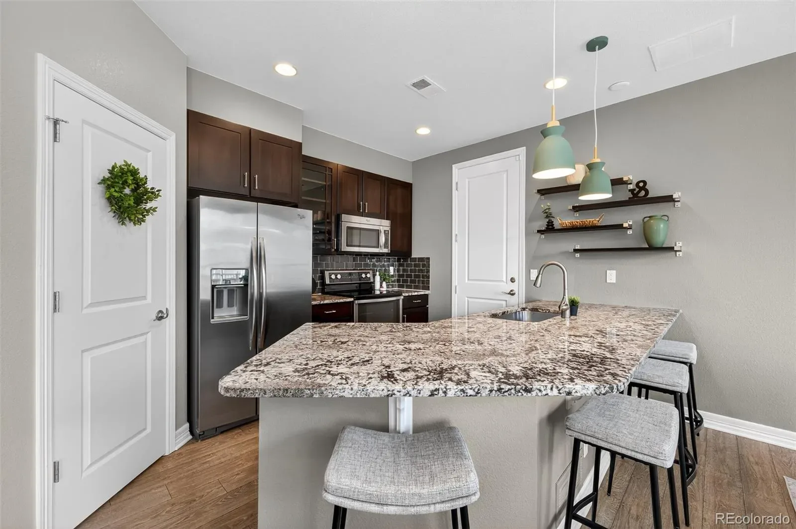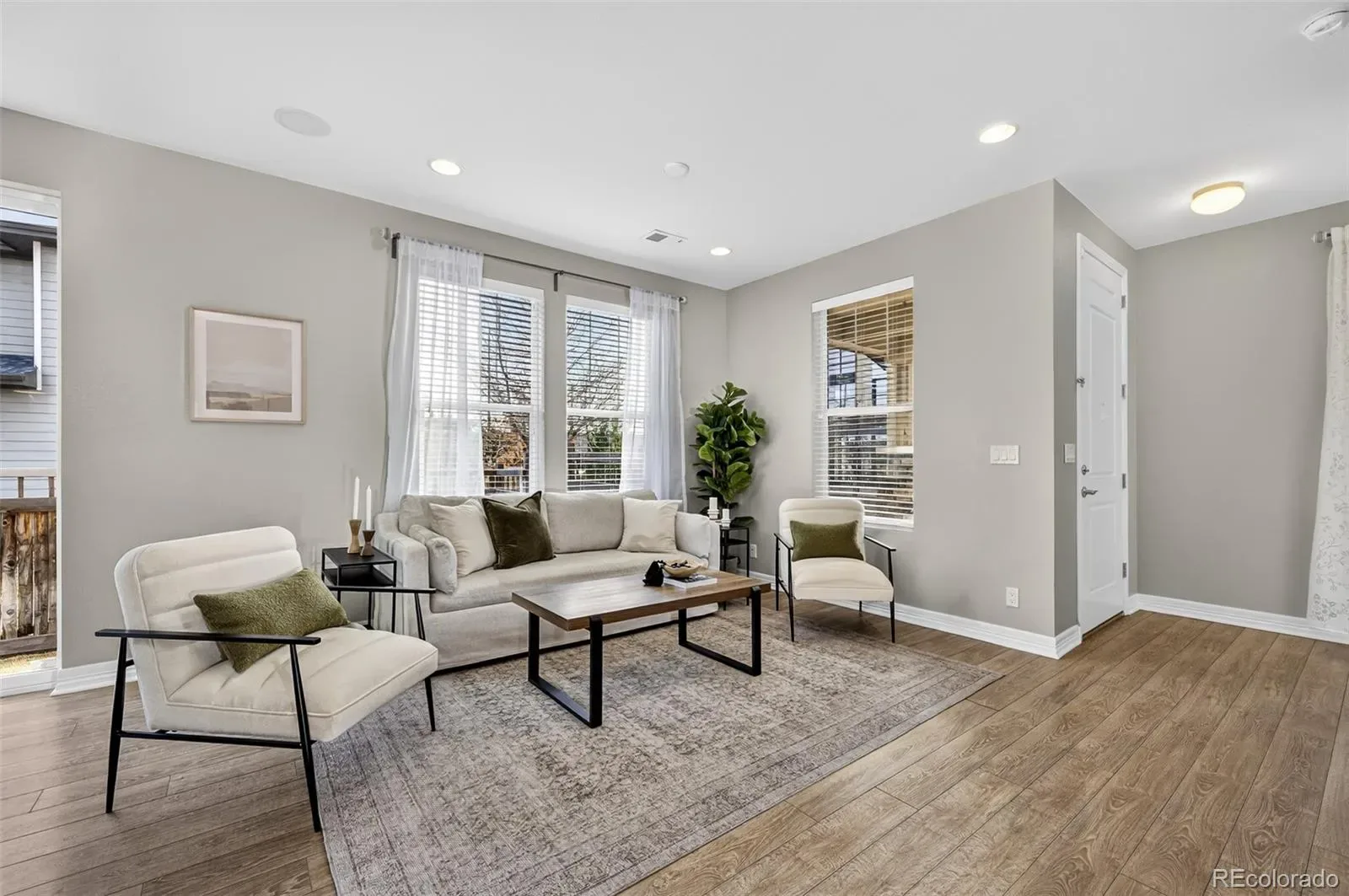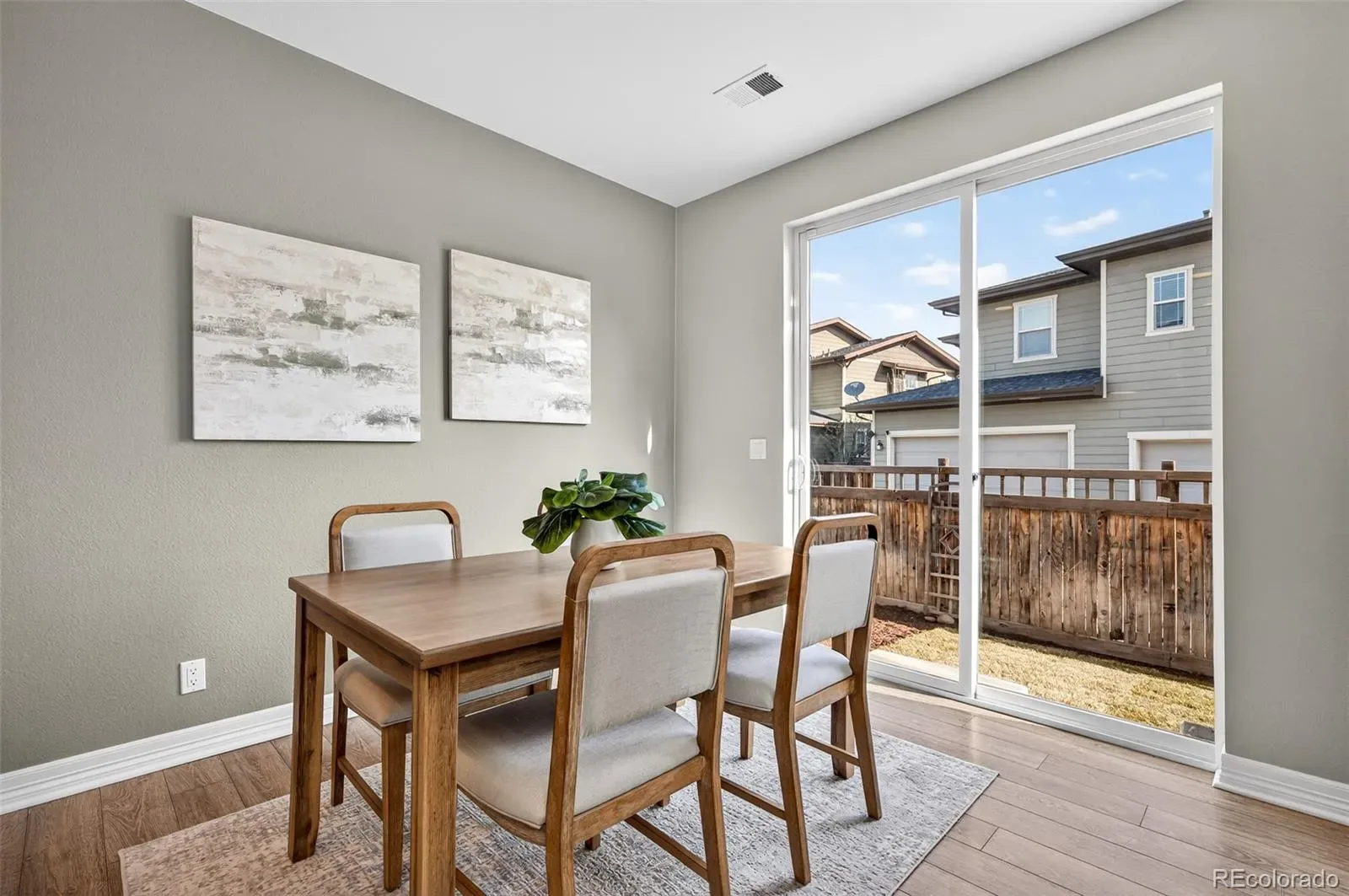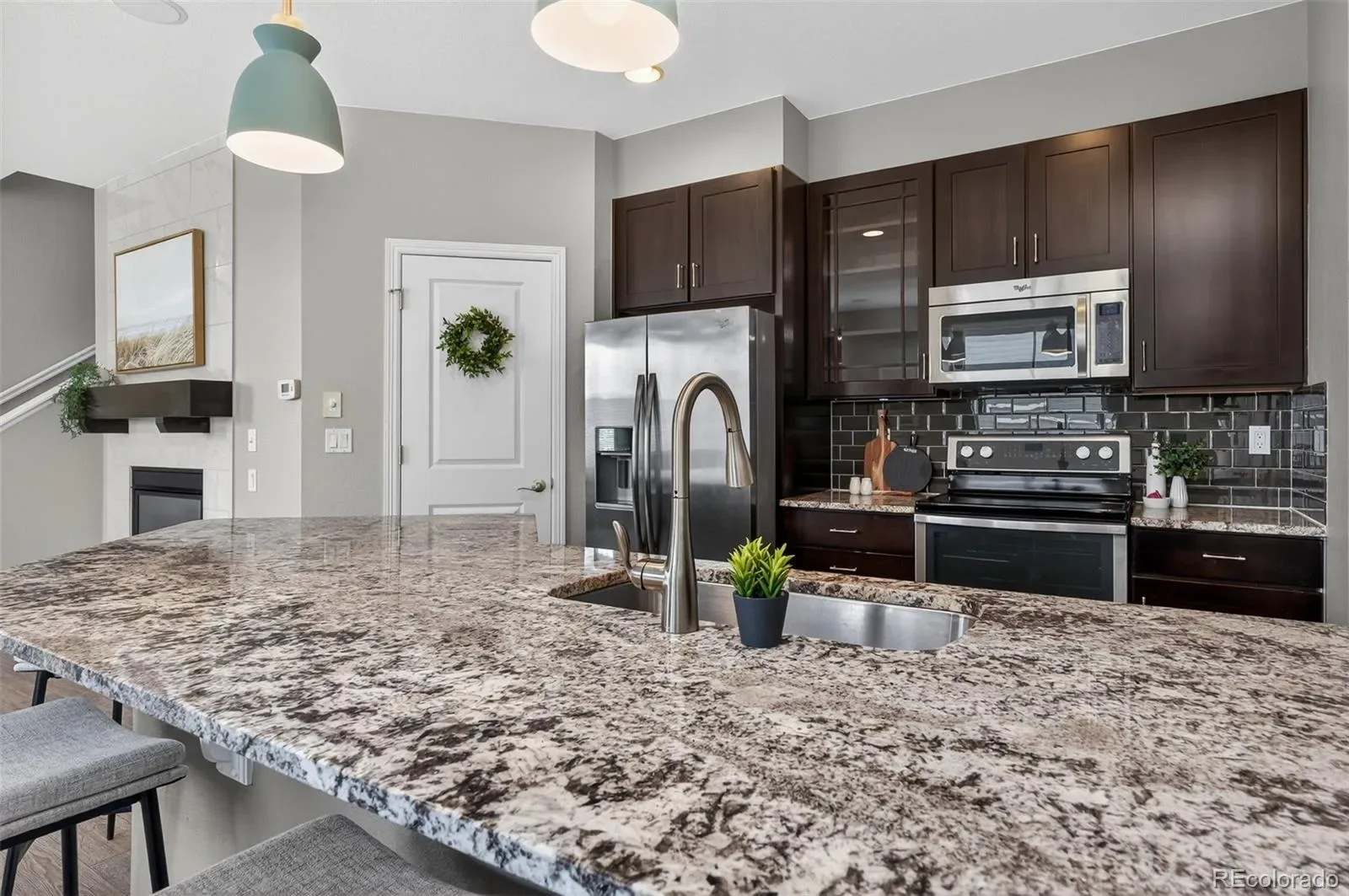 Rarely available Half Duplex in highly desired Central Park location! With open space behind the property and close proximity to parks, this home provides a serene retreat while keeping every urban amenity within easy reach. This home features 3 spacious bedrooms, a versatile loft, and 2 full bathrooms on the upper level, along with a convenient powder bathroom on the main floor. The open floor plan creates a bright and inviting atmosphere ideal for modern living. The living room, centered around a cozy gas fireplace, provides a warm retreat for relaxation. The adjacent dining area flows seamlessly into the fully fenced backyard—perfect for entertaining or enjoying quiet evenings outdoors. The kitchen is a true highlight, featuring granite countertops, espresso shaker cabinetry, SS appliances, a tiled backsplash, open shelving, and a walk-in pantry for ample storage. Elegant laminate flooring throughout the main level and second level hallway, adds warmth and sophistication to the space. Recent upgrades include a new water heater (January 2026), fresh paint throughout (walls, trim, and doors), and brand-new carpet. With a low HOA, this home offers exceptional value and peace of mind. Located in one of Denver’s most desirable neighborhoods, Central Park offers a vibrant lifestyle with easy access to restaurants, shops, parks, and trails. Enjoy the convenience of having “Mici” Italian restaurant right across the street, along with nearby schools, Starbucks, and quick access to I-70 and RTD. Experience the best of Central Park living—modern comfort, community charm, and unbeatable location—all in one beautiful home. Don’t miss this rare opportunity! PROPERTY VIDEO TOUR: https://www.youtube.com/watch?v=Z1d8F_kw6Q4
