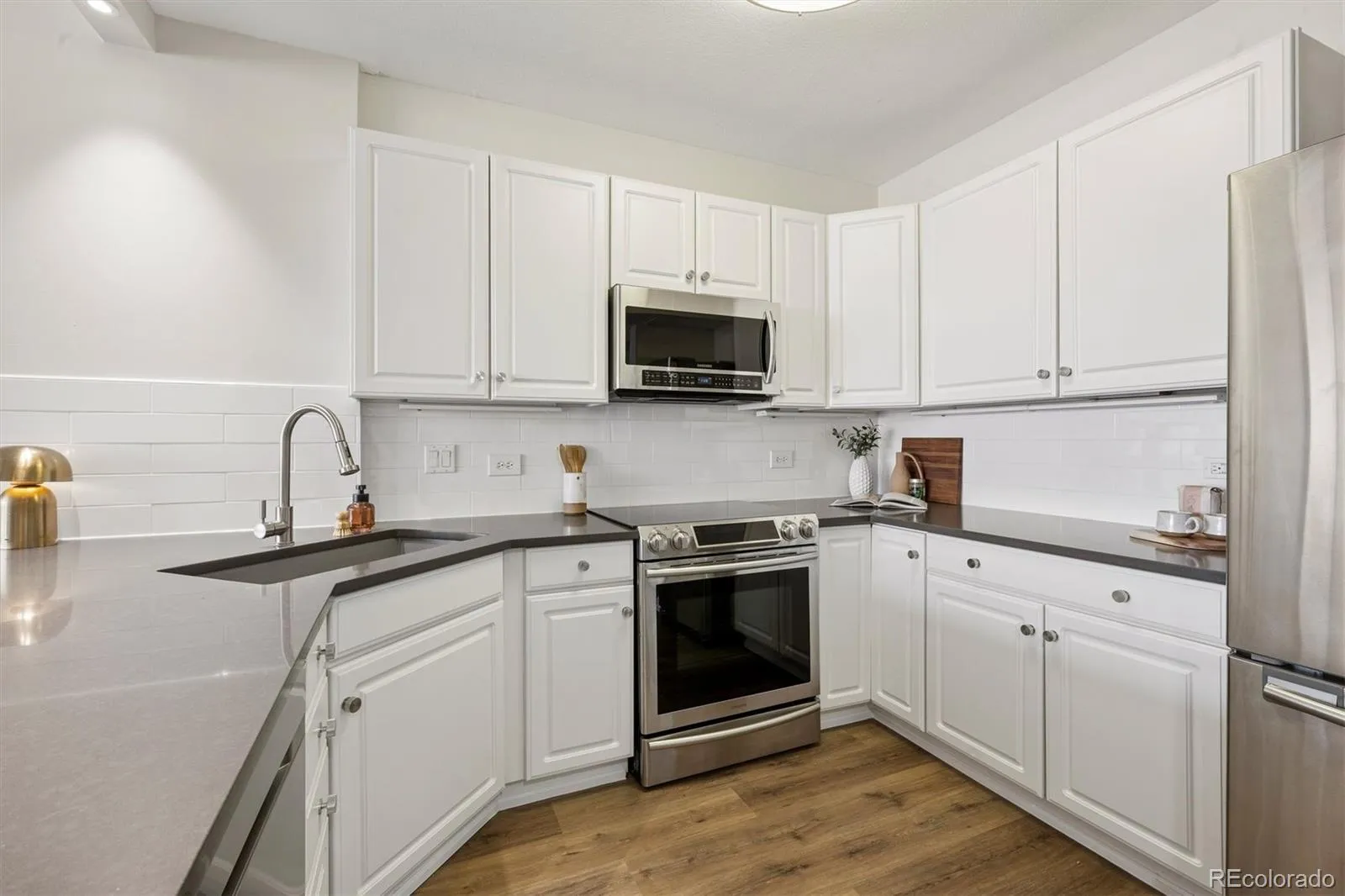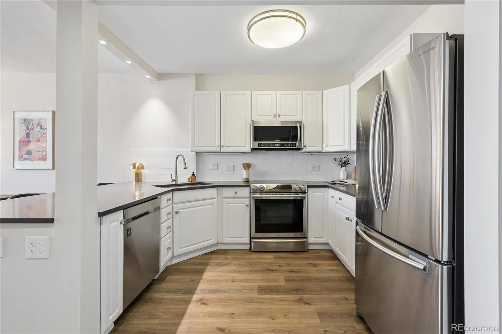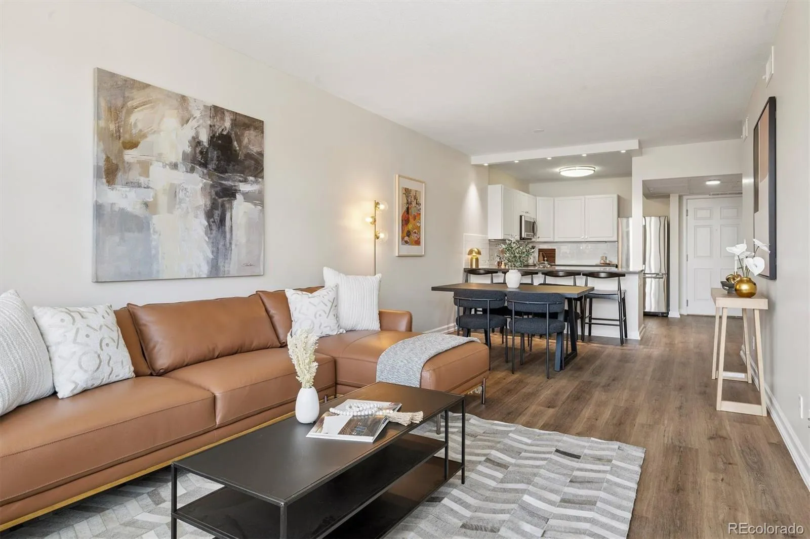 Experience refined living in the heart of Cherry Creek North—moments from the Cherry Creek Shopping District, acclaimed dining, boutiques, and galleries. This beautifully remodeled 2 Bedroom/2 Bathroom condo blends sophisticated style with everyday ease in one of Denver’s most walkable neighborhoods. At the center of the home, the kitchen is thoughtfully appointed with stainless steel appliances and quartz countertops—ideal for casual mornings or elegant entertaining. New LVP flooring and fresh paint adds warmth and continuity across the main living areas, while west-facing windows bathe the space in afternoon light and sunset glow. Two full bathrooms provide a spa-inspired feel, including a five-piece primary bath. Both bathrooms have quartz countertops for a crisp, modern finish. The property includes a lovely primary suite as well as a secondary bedroom. With urban contemporary, concrete construction, the residence enjoys a heightened sense of privacy and an exceptionally quiet interior. When you do need to drive, enjoy convenient in-and-out access and the ability to easily bypass Cherry Creek traffic—then return home to a serene retreat in the center of it all.