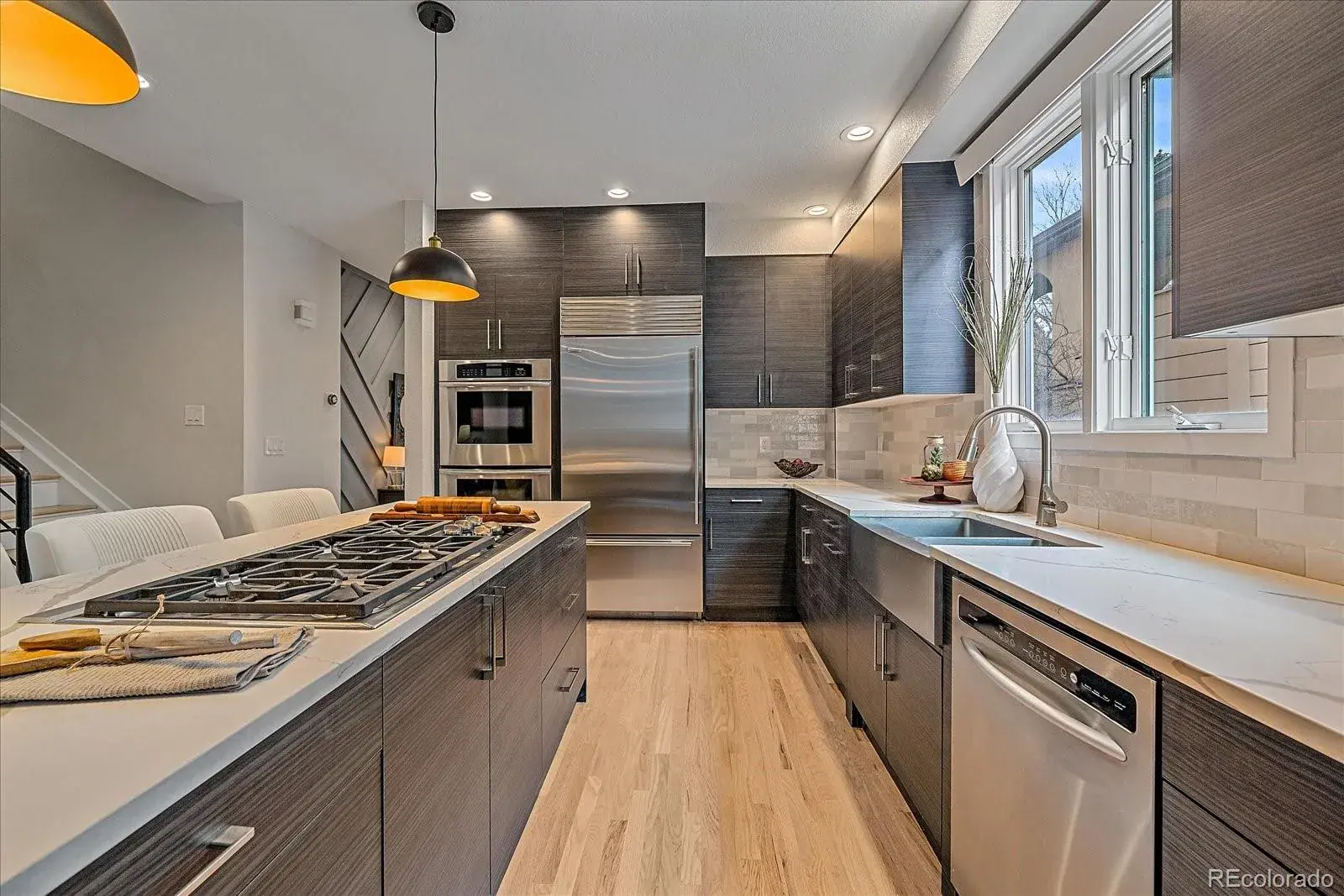 Experience the best of Cherry Creek living—without the premium price tag. This expansive 3,626 sq. ft. half-duplex offers luxury, space, and functionality in one of Denver’s most sought-after neighborhoods. Thoughtfully designed and beautifully remodeled, this home features four spacious bedrooms (one configured as a private office) and four bathrooms. A rare street-facing driveway and attached two-car garage set this property apart from the rest. Step inside to discover refinished hardwood floors, abundant natural light, and motorized blinds that create effortless ambiance throughout. The open and flexible floor plan offers multiple living areas ideal for a formal sitting room, media lounge, or work-from-home setup. The chef’s kitchen is the heart of the home, complete with stainless steel appliances, double ovens, a large island, and seamless flow into the dining and living areas. A cozy gas fireplace anchors the main living space, while two private patios on the main level create exceptional indoor-outdoor living. The fully finished basement provides incredible versatility, perfect for a game room, home gym, or entertainment retreat. A private guest suite with a full bedroom and bath makes hosting effortless. Upstairs, the primary suite is a true sanctuary, featuring its own gas fireplace, private balcony, and a luxurious five-piece bath with soaking tub, walk-in shower, and an large custom closet. For added convenience, the suite includes a built-in washer and dryer. And the showstopper? A rooftop deck your fourth private outdoor space ideal for entertaining, relaxing, or taking in Colorado’s beautiful weather. Located minutes from Cherry Creek’s premier shopping and dining and only two blocks from Trader Joe’s, this home delivers exceptional value, location, and lifestyle. Recent upgrades include a new roof, exterior stucco refinishing, refinished hardwood floors, and more. This is one of Cherry Creek’s best values don’t miss the opportunity to make it yours.