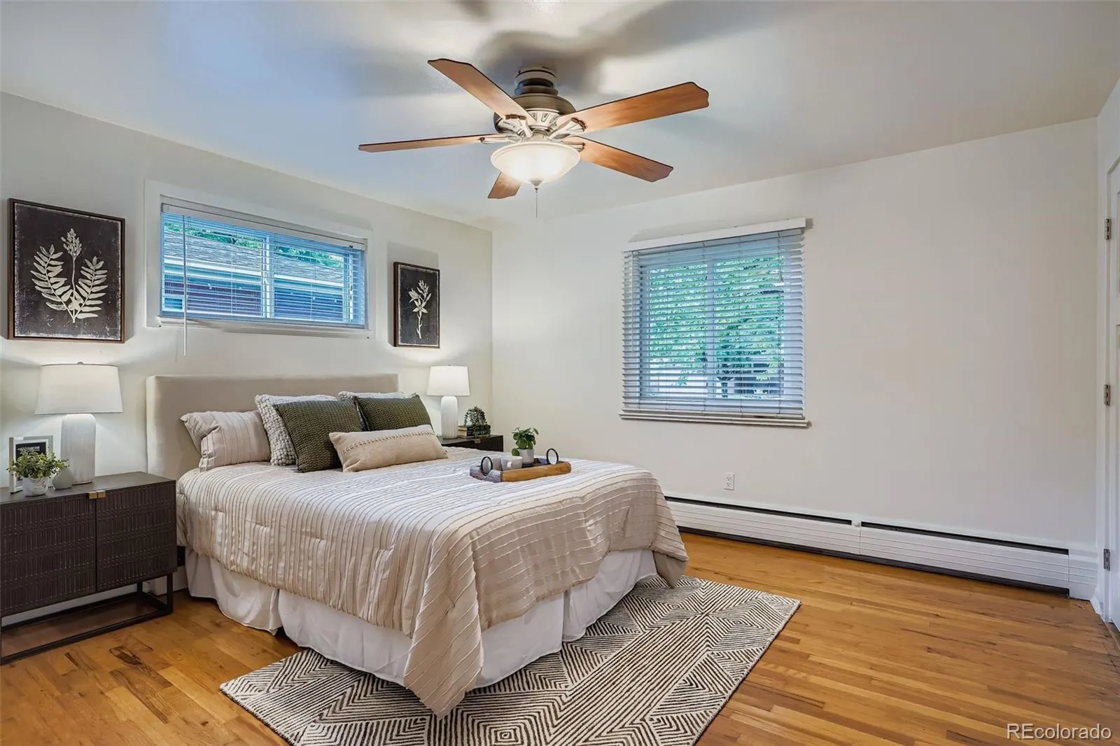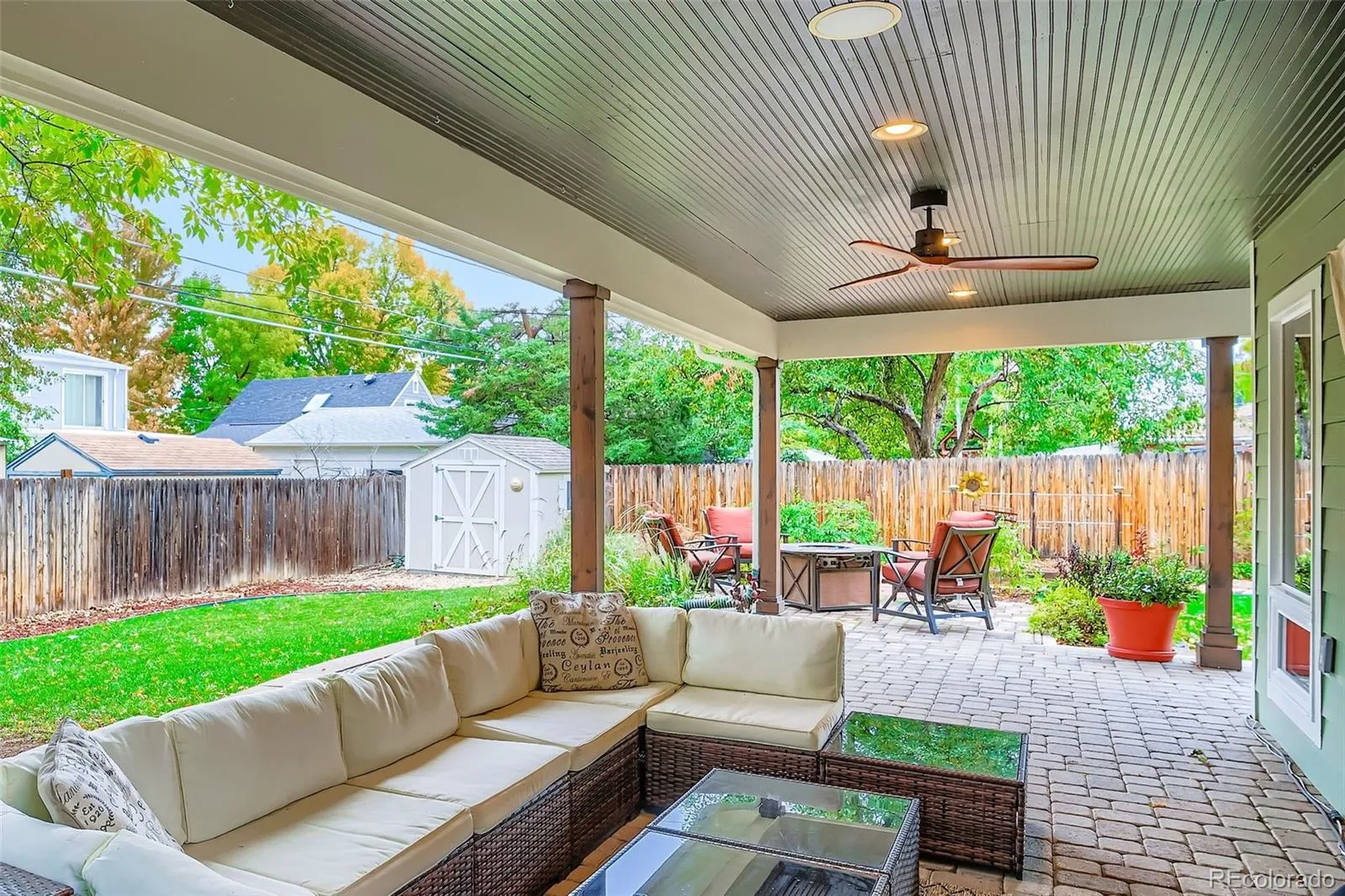 The main level features a bright kitchen and dining addition with open flow for entertaining, along with a cozy gas fireplace. Step outside to a spacious patio overlooking a thoughtfully landscaped backyard. A vintage 1959 camper, converted into a unique office or playhouse, adds a special touch to the outdoor retreat. The remodeled basement provides additional living space, while the 2-car garage offers ample storage. RECENT IMPROVEMENTS include new roof and certification on the addition, sewer line improvements, a new hot water heater, and refreshed landscaping. Energy-efficient solar panels, new gutter guards, and a new evaporative cooler also enhance comfort and efficiency. Ideally located in South Denver, just moments from neighborhood dining and conveniences, this home offers a rare combination of character, updates, and location.