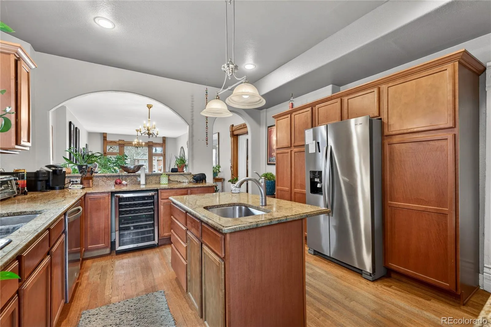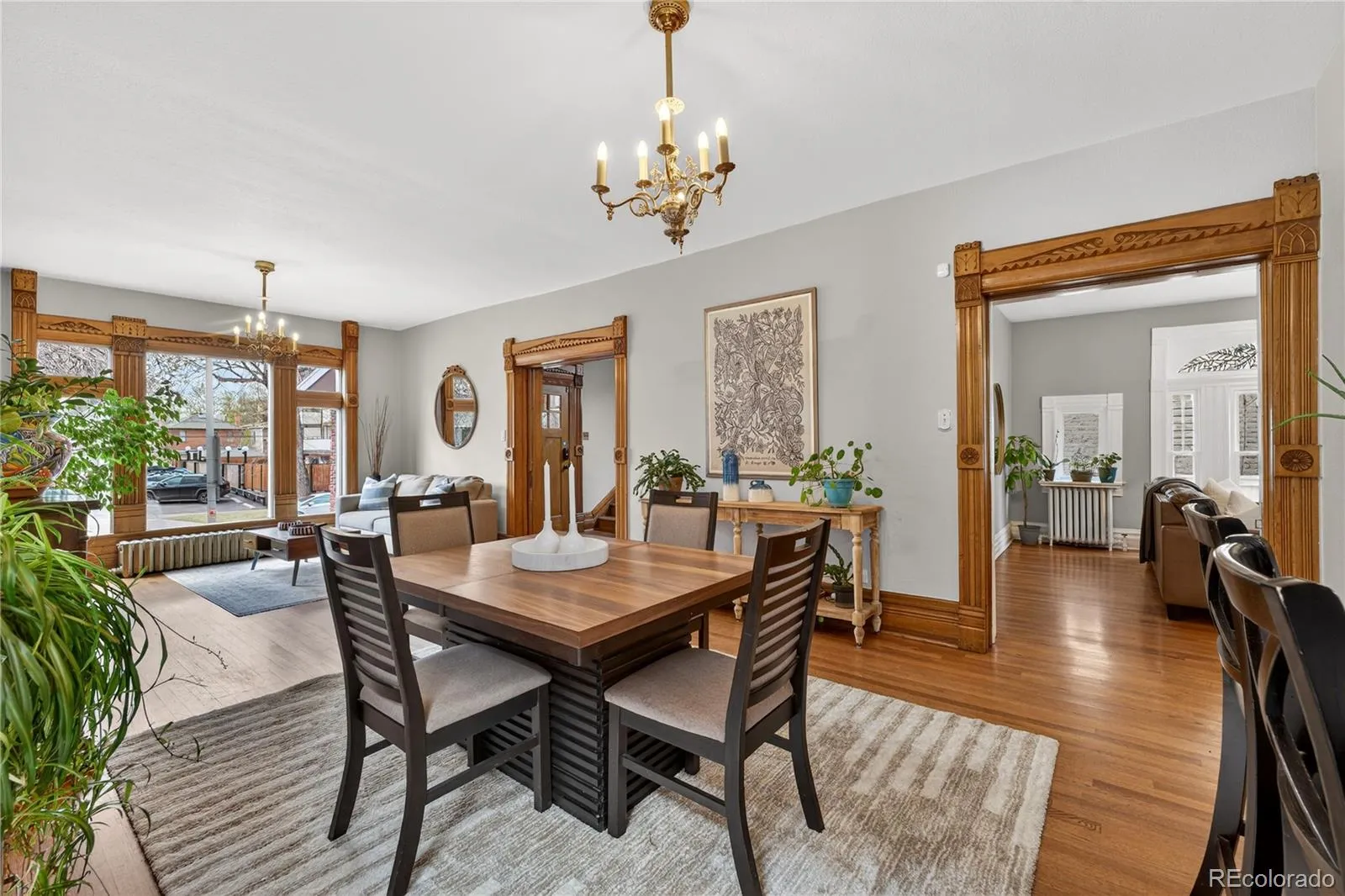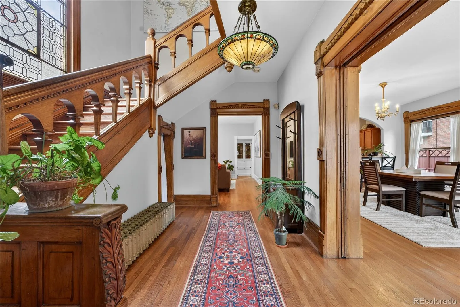 Step into timeless elegance with this stunning Victorian gem in the heart of Congress Park—where historic charm meets modern comfort in one of Denver’s most beloved neighborhoods. Rich with character, this home showcases beautiful original details including stained glass windows, intricate wood trim and molding, classic door hardware, a grand wood banister, and graceful arched entryways. The main level offers an inviting, open living and dining space—perfect for entertaining—alongside a cozy family room for everyday living. The thoughtfully updated chef’s kitchen blends style and function, featuring modern amenities while preserving the home’s historic appeal, including an original built-in china cabinet. Upstairs, you’ll find three spacious bedrooms, including a luxurious primary retreat with a connected flex space ideal for a sitting room or home office. The primary suite flows into a beautifully updated 5-piece bath. A secondary full bath opens to a large upper-level balcony—perfect for relaxing and taking in the views. The third floor is a hidden treasure, offering two additional bedrooms, a full bath, and a comfortable sitting area—ideal for guests, a teen retreat, or private living quarters. Outside, enjoy a private backyard oasis with a large patio and pergola, perfect for summer gatherings. A charming covered front porch with wood beam ceilings welcomes you home, while the two-car detached garage and additional off-street parking provide convenience in the city. Located just one block from the Denver Botanic Gardens and moments from Cheesman Park, this home offers walkability to some of Denver’s best outdoor spaces, dining, and local amenities—all set among picturesque tree-lined streets and a vibrant, tight-knit community. This is a rare opportunity to own a truly special piece of Denver history in Congress Park.