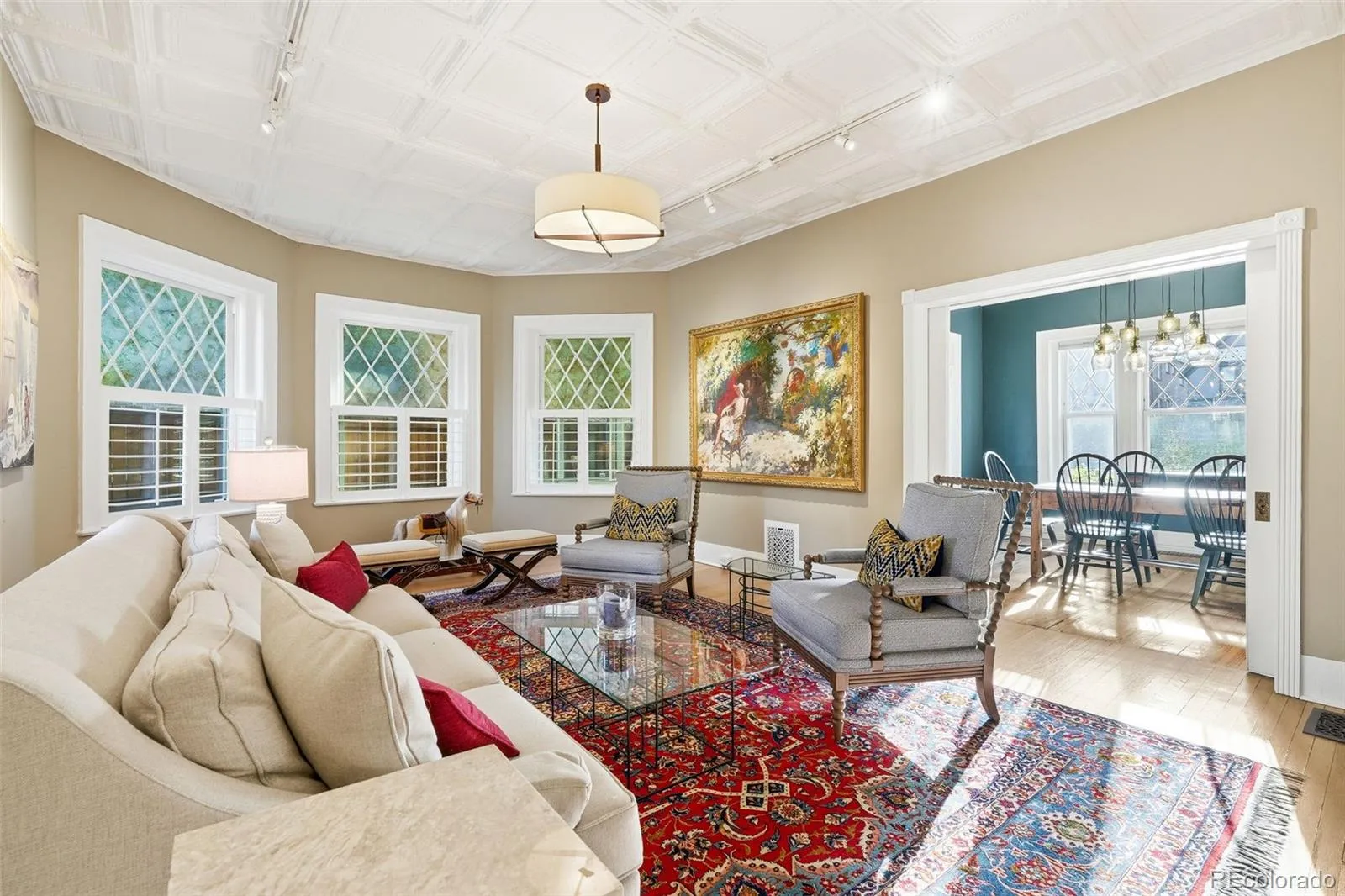 3-story Victorian with CARRIAGE HOUSE! Step back in time to 1898, when the historic John Jay Joslin II Mansion was first constructed. Period finishes with modern updates blend for the perfect balance of elegance and functionality. The welcoming front porch leads into the spacious entry foyer, flowing into the gorgeous living and dining areas. Original pocket doors, ceiling moldings, and bay windows are just some of the historic details throughout the home. Channel your inner Julia Child in the well-equipped kitchen–Chef will love the large pantry, endless storage, and plenty of prep space! Work from home? The main floor den/sun room offers a sunny place for work/play/relaxation. The second floor offers 3 secondary bedrooms and 2 baths (1 full, 1 3/4 with a steam shower), while the 3rd floor primary suite acts as a true owners’ retreat: a private sitting room, elegant bedroom with built-in cabinetry/drawers, a stunning 4 pc bath with exposed brick walls, THREE closets, oversized shower, and laundry. A second washer/dryer set is located in the basement, along with an additional powder room, wine cellar and mechanicals. Outdoors offers great spaces to entertain and enjoy the Colorado climate, with a built-in grill, hot tub, deck, and no-fuss lawn. The Carriage House is perfect for guests or short/long-term rentals: upstairs is an open floor plan with living/dining/kitchen, a separate bedroom, and 3/4 bath; plus a ground level studio–excellent for fitness/meditation/hobbies. Brand new Class 4 roof just installed, updated electrical, HVAC cleaned & serviced, sewer cleaned & scoped with no repairs needed. Enjoy the proximity to City Park, the rec center, summer farmers’ markets at East High, a wide variety of restaurants, shops, and more. Come see this amazing historic home!