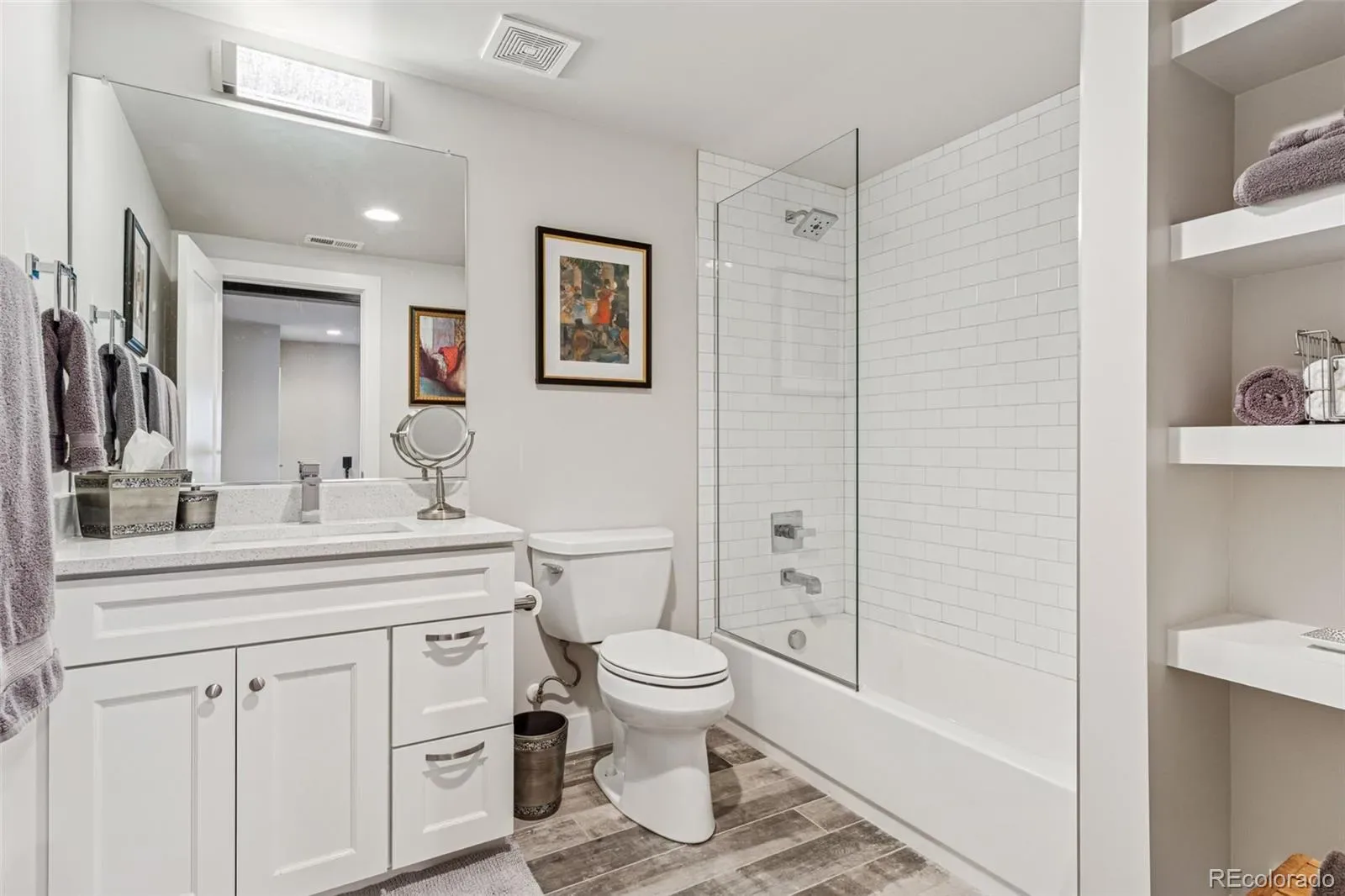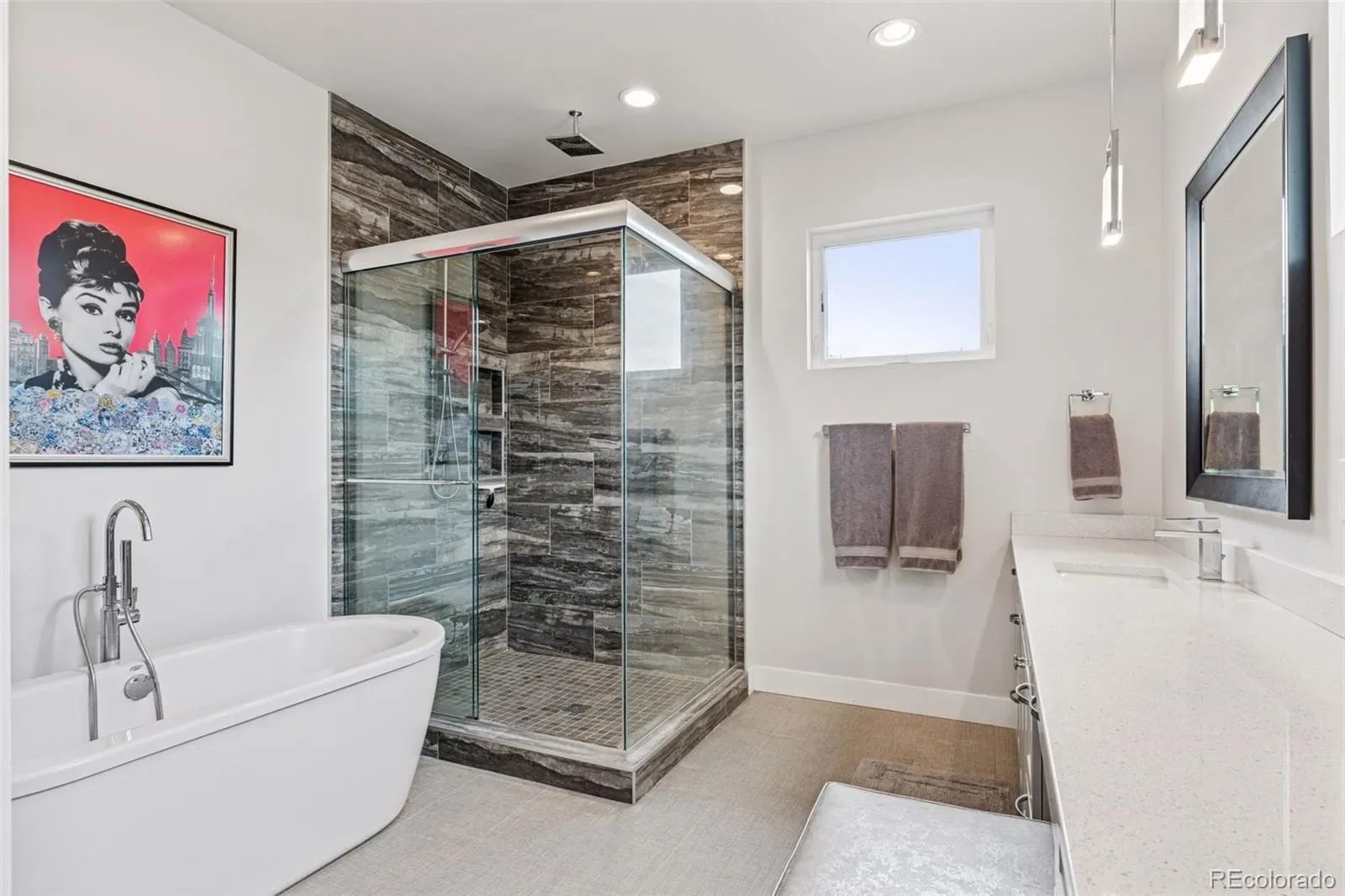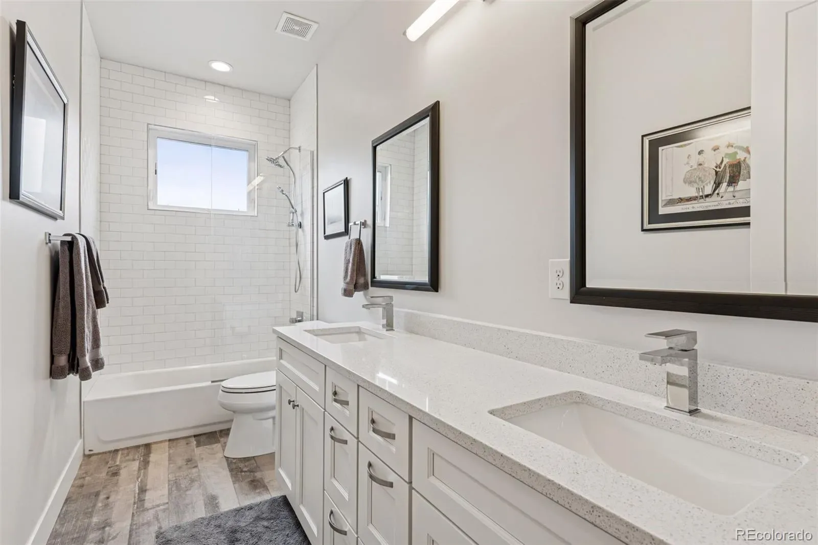 This well priced modern Denver Square in the Cory-Merrill neighborhood offers 3400 square feet of well-designed living space. Built in 2017, the home features thoughtful upgrades throughout. The main floor includes an office, dining area, and great room with a built-in gas fireplace. The kitchen is designed for both function and style, with modern white cabinetry, an expanded island, gas stove, side-by-side refrigerator and freezer, beverage/bar refrigerator, built-in microwave, and plenty of storage. Large windows throughout provide abundant natural light, and the layout flows easily from the house into the private backyard. Upstairs, you’ll find three bedrooms, including a spacious primary suite with a walk-in closet and a five-piece bath complete with a free-standing tub and oversized shower. The primary bedroom also features a custom paneled wall that adds a clean, modern accent. Two additional bedrooms, a full bath with double sinks, and upstairs laundry complete the second floor. The finished basement has high ceilings, a large bedroom, stylish bathroom, and a large family room that adds great flexibility for entertaining or relaxing. Additional highlights set this home apart with its cohesive blend of modern style and thoughtful craftsmanship. Wood floors run throughout the home, complementing the sleek quartz countertops and clean-lined modern fixtures. Custom tilework adds subtle personality to each bathroom and living space, while exposed steel architectural beams introduce a modern feel. Single-panel doors and glass shower enclosures contribute to the clean, streamlined aesthetic. The home is also equipped with a tankless water heater, built in speakers, and is finished in a neutral, contemporary palette that lets the quality finishes and design details take center stage. Located just a short walk from Cory Elementary and Merrill Middle, with easy access to Washington Park, and Bonnie Brae.
