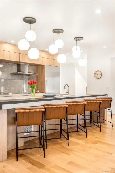 Striking architecture, outdoor living, and an income-generating apartment shape this modern take on luxury living in Cory Merrill. Expert mechanical quality coalesces with luxury details, with features such as integrated lighting, white oak flooring, and a thoughtfully designed floorplan. A handmade alder wood entry door opens into a bright and airy main floor, anchored by a true chef’s kitchen with a 12’ Italian marble island, luxe appliances, caterer’s pantry, and a dual dishwasher. Multiple living spaces, a formal dining room, and flex areas round out the main floor. Discover the pinnacle of rejuvenation in a stunning primary suite with private access to a cladded terrace and a tranquil en-suite bathroom with dual vanities, quad shower heads, a freestanding tub, and dual closets. Equipped with a separate entrance, the attached lower-level apartment is not your typical in-law suite — in fact, a kitchen, 1 bed/2 bath layout, private outdoor space, and washer/dryer merge to create a Denver escape fit for visiting guests and income-generating stays alike. When Denver’s enviable climate calls, find solitude in one of the home’s many outdoor retreats, including a chic rooftop deck appointed for entertaining.