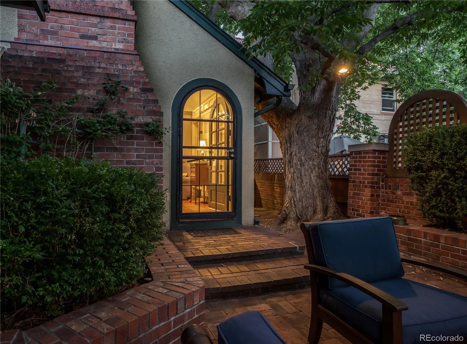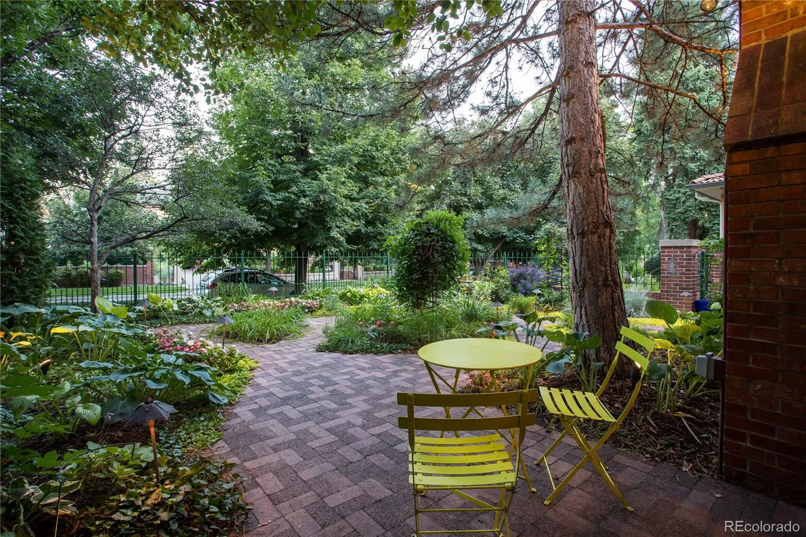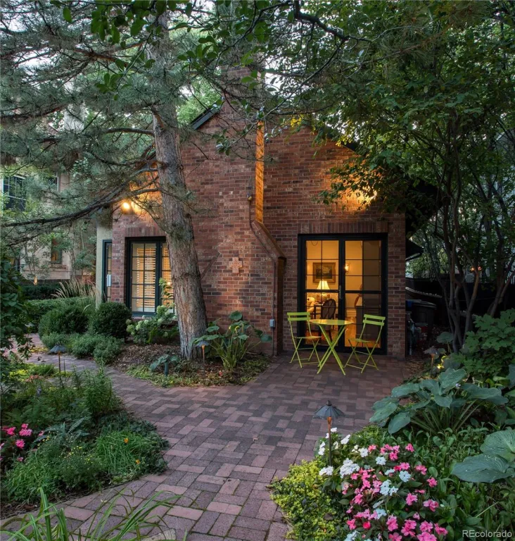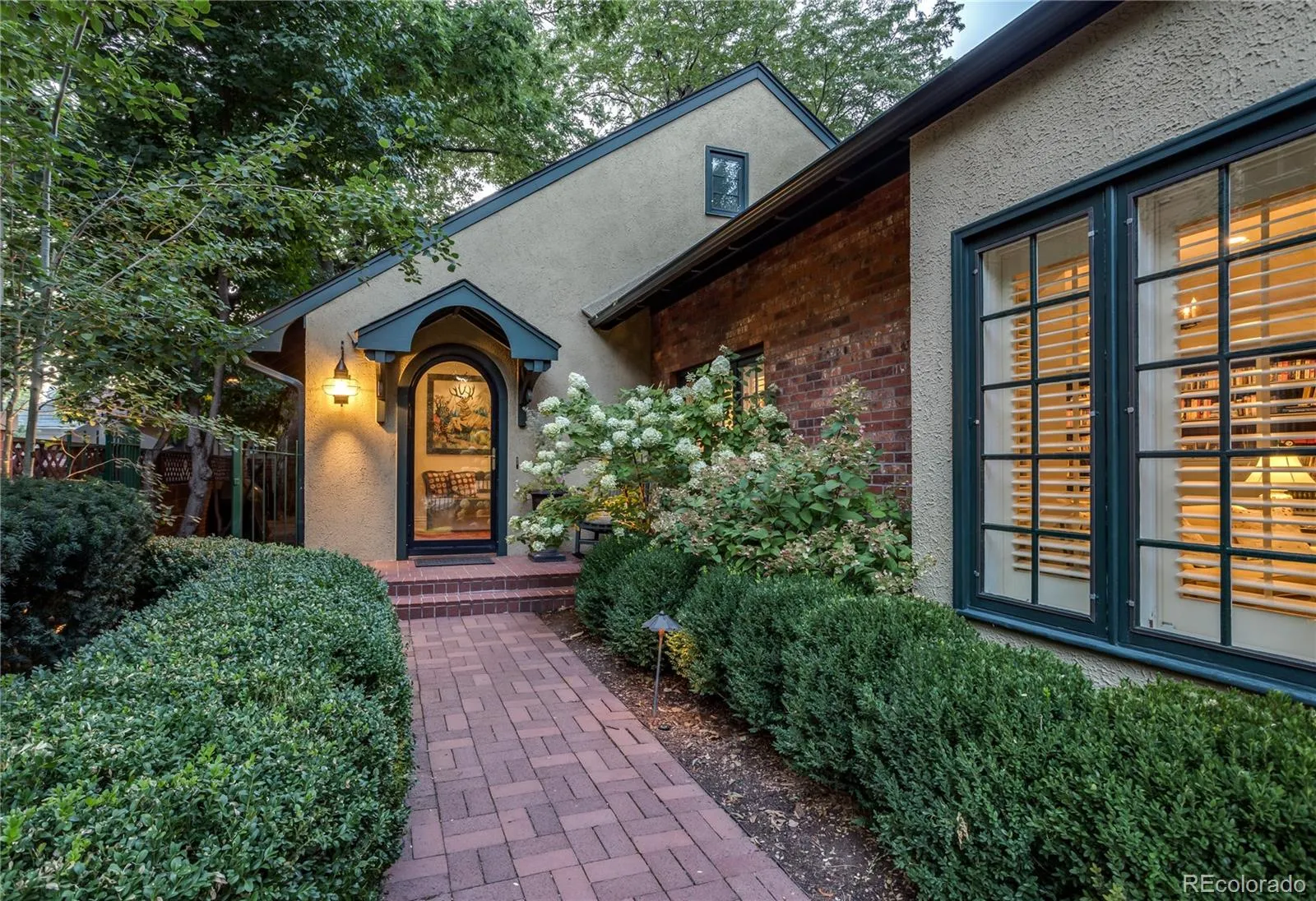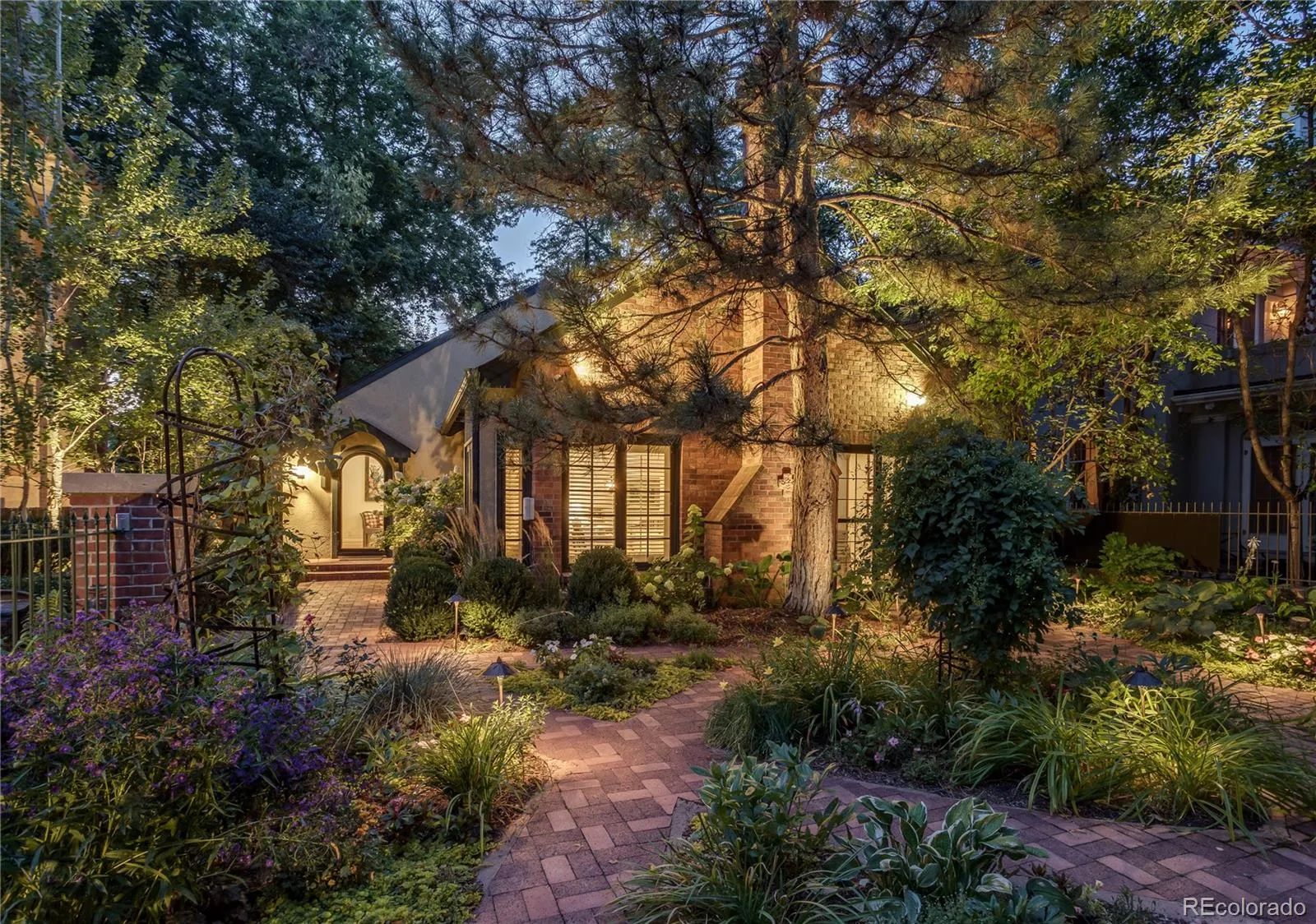 Perfectly combining the character of historic Denver with modern amenities and convenience, this one-of-a-kind residence offers indoor/outdoor Colorado living at its finest. Exquisite gardens surround this classic Country Club North home, with multiple sets of French doors to allow easy access, and the entire property is fully fenced for privacy. The entry hall welcomes you with a charming curved front door, floor-to-ceiling windows & skylight, and Saltillo floor tile. Hardwood flooring, plantation shutters & handsome fireplace adorn the sunny living room. The chef’s kitchen is highlighted by a walnut-topped island, soapstone perimeter countertops + Sub-Zero & Wolf appliances. Sky-lit, spacious dining room with gas fireplace + incredible millwork & moulding. Main floor bedroom/den includes wool carpeting, 2 closets, plantation shutters, en suite bath with skylight & walk-in closet + access to the powder room. The loft features wool carpeting, skylight & built-ins- a great space for office or den. In the primary bedroom, new hardwood floors extend into the walk-in closet, built-in storage on the west wall, and plantation shutters + skylight enhance the space. Marble en suite bath offers walk-in shower & heated floor. Saltillo floor tile is found throughout the lower level, featuring plantation shutters, laundry room, bedroom with en suite bath, spacious entertainment room & office/den with a curved single French door. Retreat and relax in the back garden, which includes an in-ground sprinkler system, updated landscape lighting, and elevated garden with mature trees and bushes that provide shade for 3 seasons. Enjoy al fresco dining on the brick patio, a beautiful space that is sheltered, private, and quiet. Heated 2-car garage offers built-in storage & direct access from the house, and the roof was replaced in 2015. This enchanting residence is a timeless classic, poised in a prime location, just moments to Cheesman Park, Botanic Gardens, Cherry Creek & Downtown.