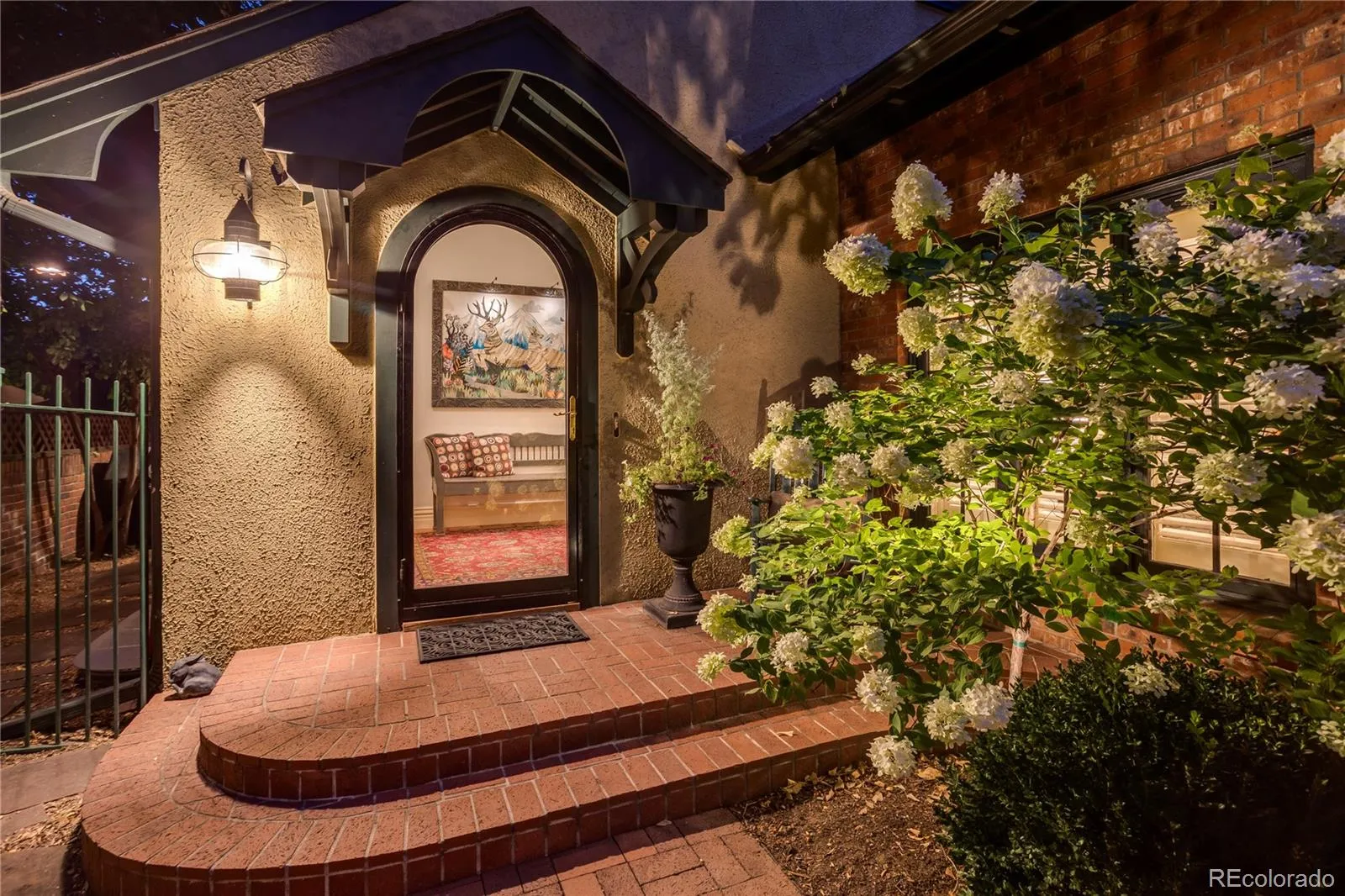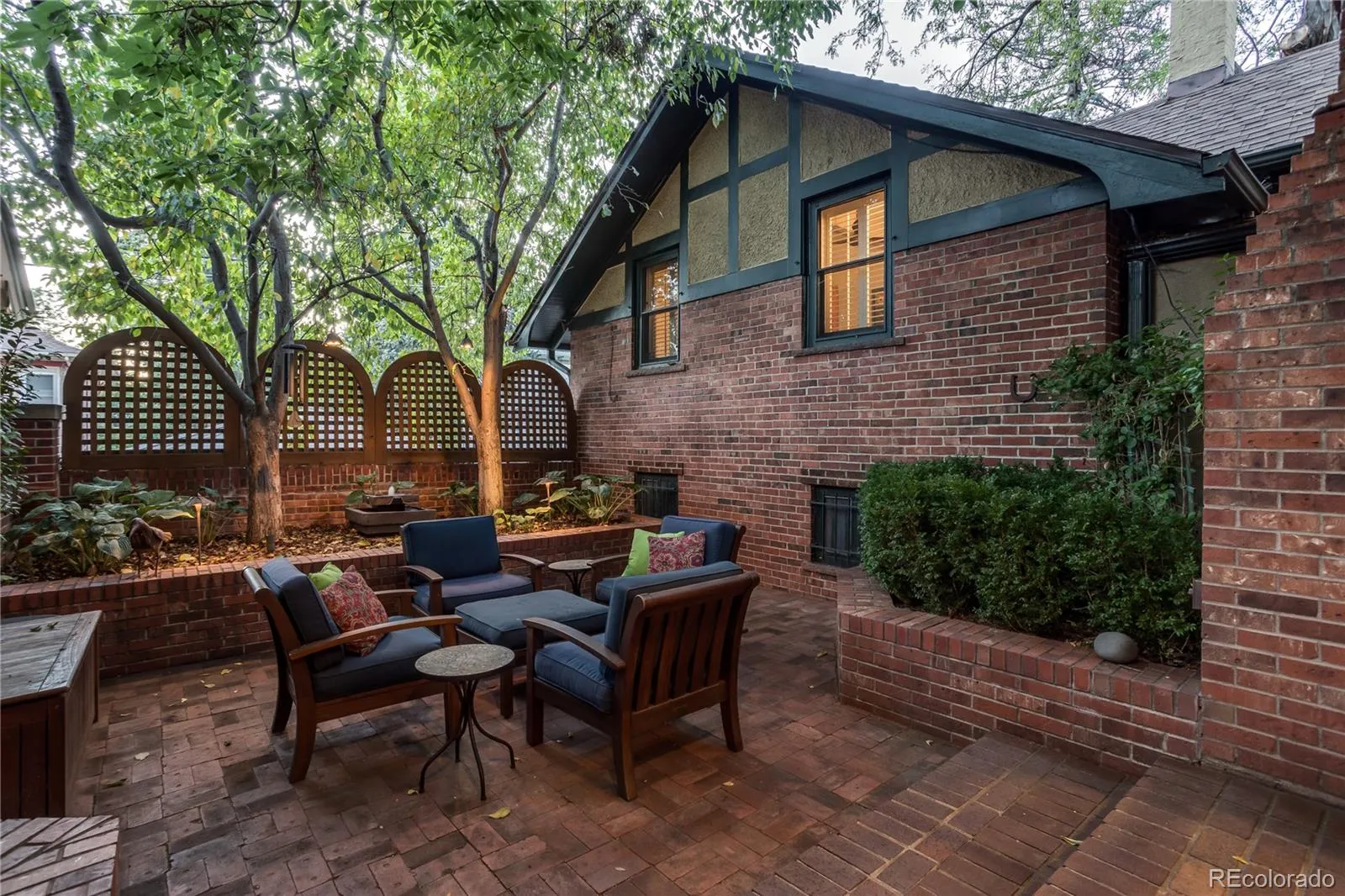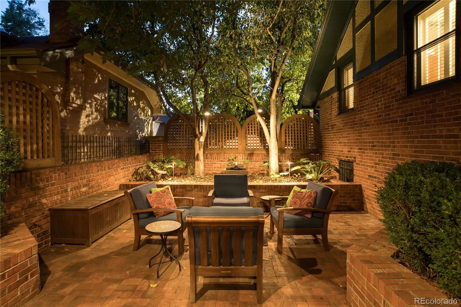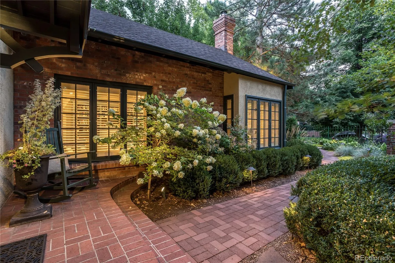 Perfectly combining the character of historic Denver with modern amenities and convenience, this one-of-a-kind residence offers indoor/outdoor Colorado living at its finest. Exquisite gardens surround this classic Country Club North home, with multiple sets of French doors to allow easy access, and the entire property is fully fenced for privacy. The entry hall welcomes you with a charming curved front door, floor-to-ceiling windows & skylight, and Saltillo floor tile. Hardwood flooring, plantation shutters & handsome fireplace adorn the sunny living room. The chef’s kitchen is highlighted by a walnut-topped island, soapstone perimeter countertops + Sub-Zero & Wolf appliances. Sky-lit, spacious dining room with gas fireplace + incredible millwork & moulding. Main floor bedroom/den includes wool carpeting, 2 closets, plantation shutters, en suite bath with skylight & walk-in closet + access to the powder room. The loft features wool carpeting, skylight & built-ins- a great space for office or den. In the primary bedroom, new hardwood floors extend into the walk-in closet, built-in storage on the west wall, and plantation shutters + skylight enhance the space. Marble en suite bath offers walk-in shower & heated floor. Saltillo floor tile is found throughout the lower level, featuring plantation shutters, laundry room, bedroom with en suite bath, spacious entertainment room & office/den with a curved single French door. Retreat and relax in the back garden, which includes an in-ground sprinkler system, updated landscape lighting, and elevated garden with mature trees and bushes that provide shade for 3 seasons. Enjoy al fresco dining on the brick patio, a beautiful space that is sheltered, private, and quiet. Heated 2-car garage offers built-in storage & direct access from the house, and the roof was replaced in 2015. This enchanting residence is a timeless classic, poised in a prime location, just moments to Cheesman Park, Botanic Gardens, Cherry Creek & Downtown.