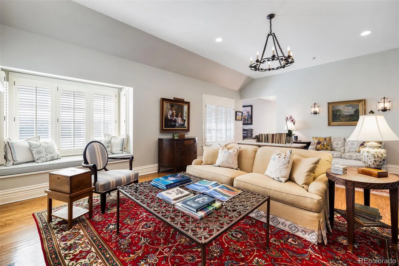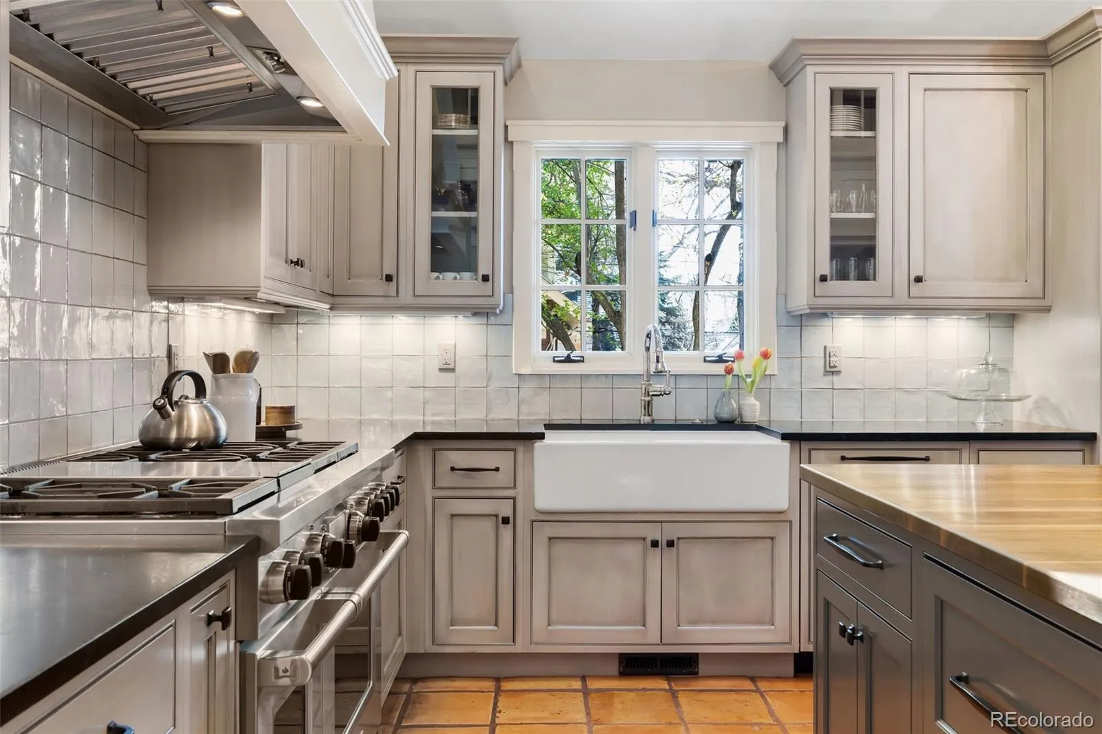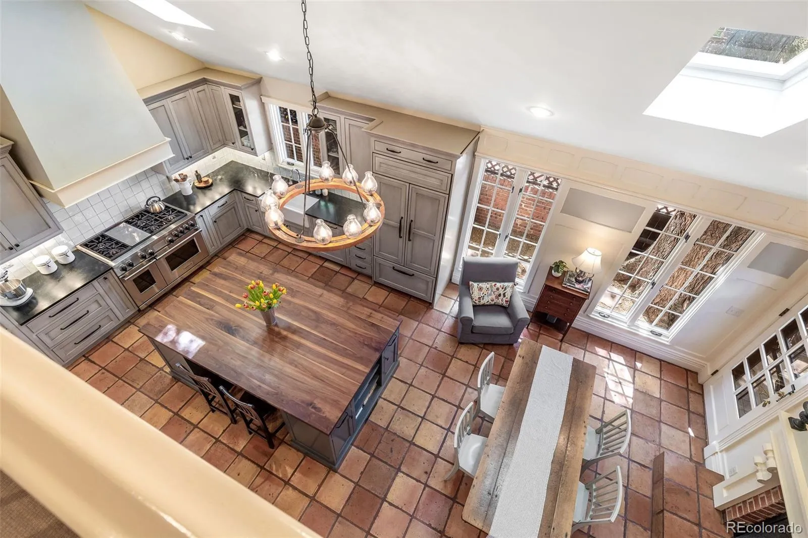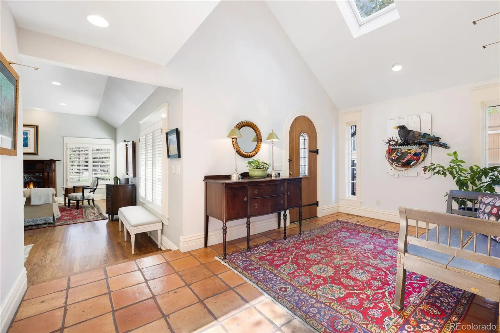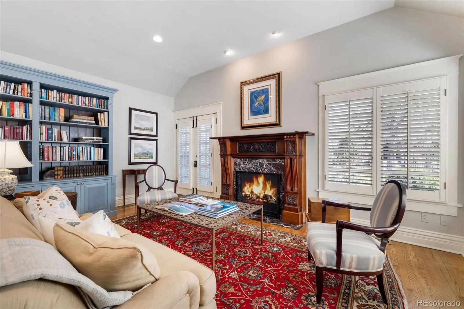 Perfectly combining the character of historic Denver with modern amenities and convenience, this one-of-a-kind residence offers indoor/outdoor Colorado living at its finest. Exquisite gardens surround this classic Country Club North home, with multiple sets of French doors to allow easy access, and the entire property is fully fenced for privacy. The entry hall welcomes you with a charming curved front door, floor-to-ceiling windows & skylight, and Saltillo floor tile. Hardwood flooring, plantation shutters & handsome fireplace adorn the sunny living room. The chef’s kitchen is highlighted by a walnut-topped island, soapstone perimeter countertops + Sub-Zero & Wolf appliances. Sky-lit, spacious dining room with gas fireplace + incredible millwork & moulding. Main floor bedroom/den includes wool carpeting, 2 closets, plantation shutters, en suite bath with skylight & walk-in closet + access to the powder room. The loft features wool carpeting, skylight & built-ins- a great space for office or den. In the primary bedroom, new hardwood floors extend into the walk-in closet, built-in storage on the west wall, and plantation shutters + skylight enhance the space. Marble en suite bath offers walk-in shower & heated floor. Saltillo floor tile is found throughout the lower level, featuring plantation shutters, laundry room, bedroom with en suite bath, spacious entertainment room & office/den with a curved single French door. Retreat and relax in the back garden, which includes an in-ground sprinkler system, updated landscape lighting, and elevated garden with mature trees and bushes that provide shade for 3 seasons. Enjoy al fresco dining on the brick patio, a beautiful space that is sheltered, private, and quiet. Heated 2-car garage offers built-in storage & direct access from the house, and the roof was replaced in 2015. This enchanting residence is a timeless classic, poised in a prime location, just moments to Cheesman Park, Botanic Gardens, Cherry Creek & Downtown.